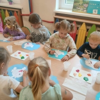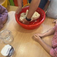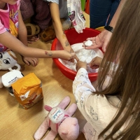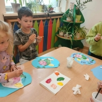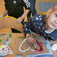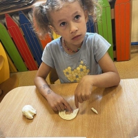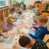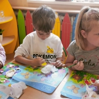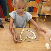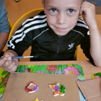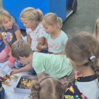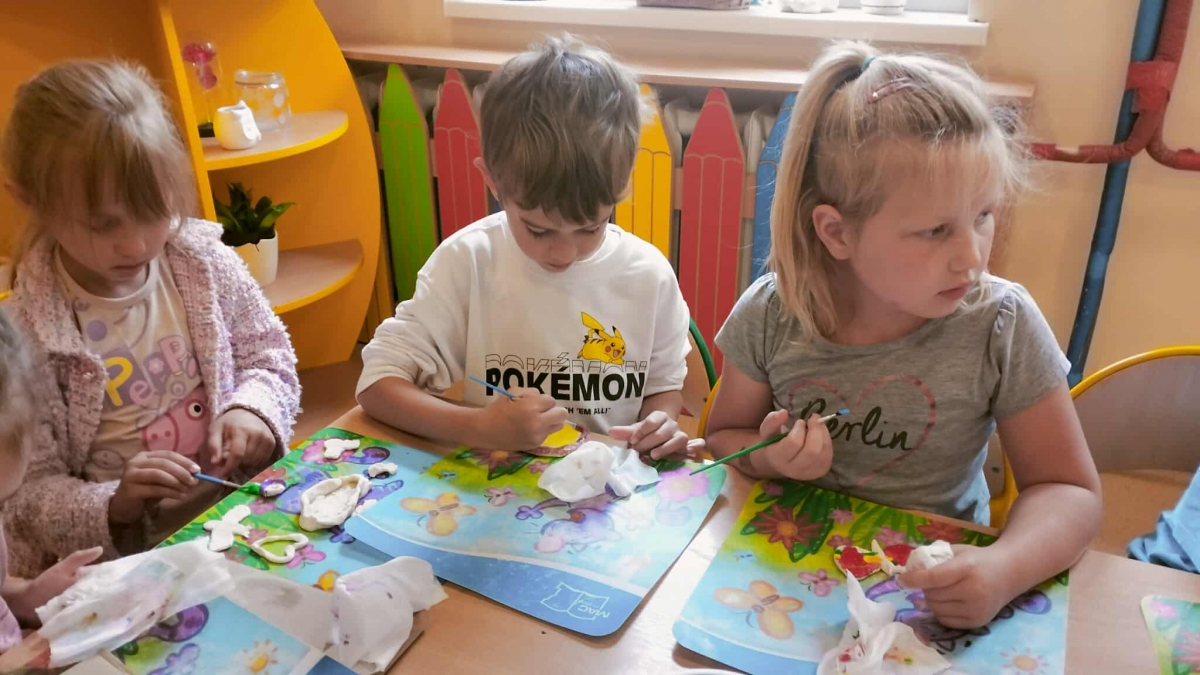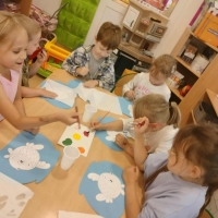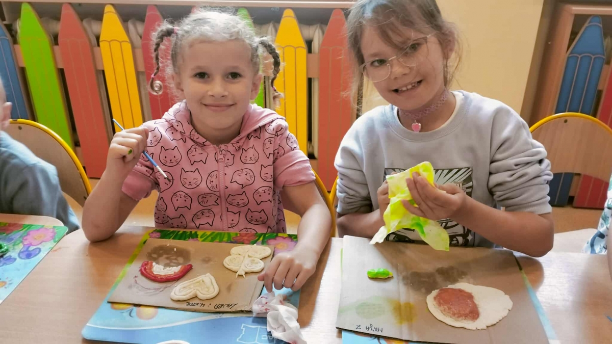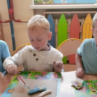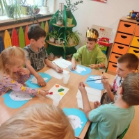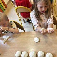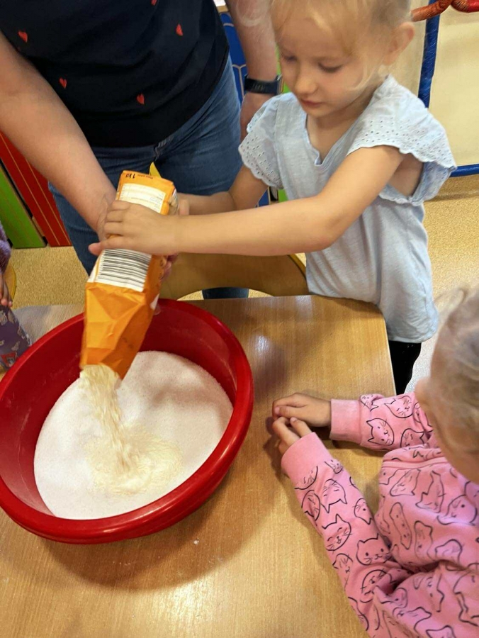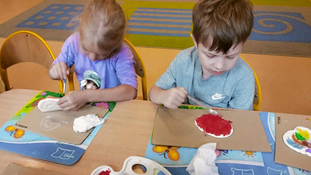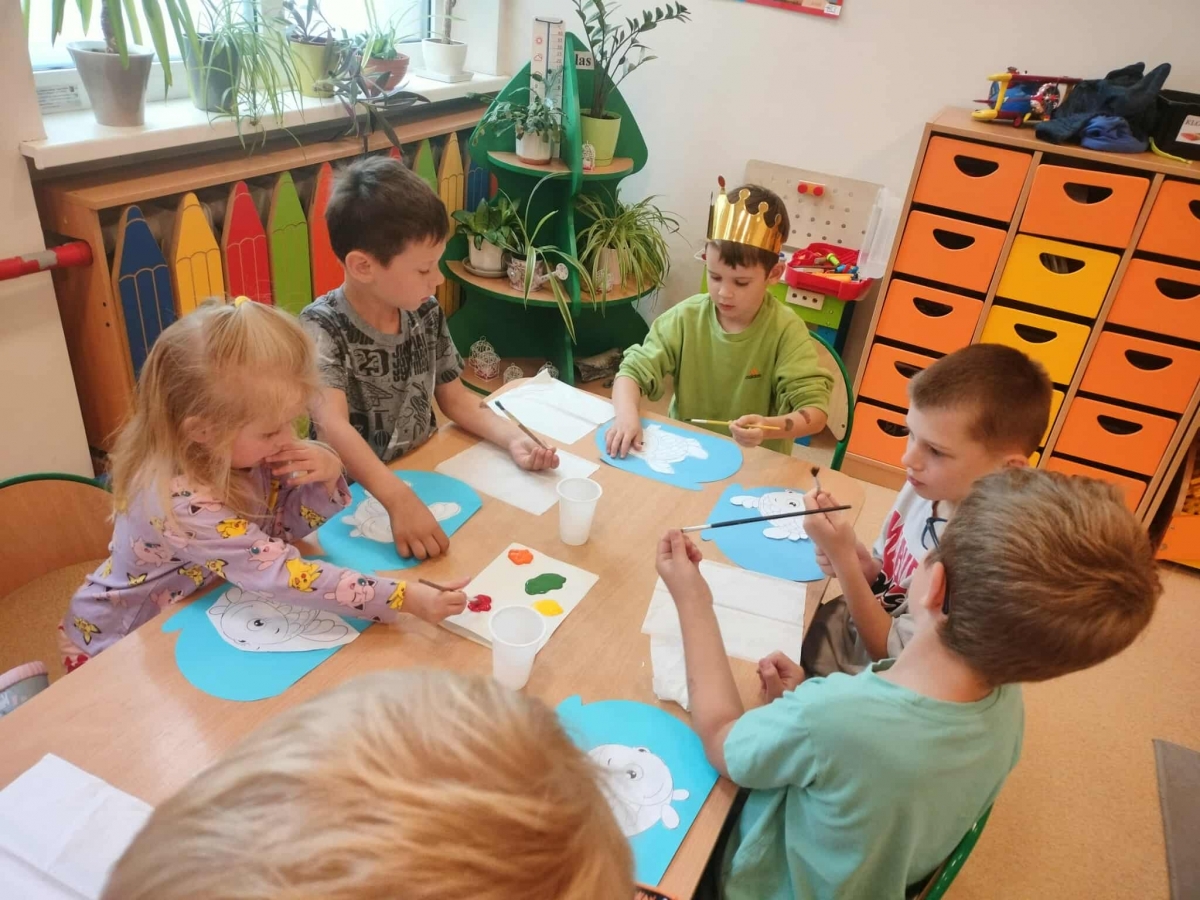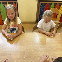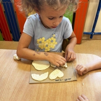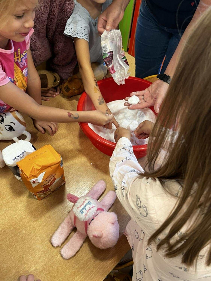 Podczas wakacyjnego dyżuru w przedszkolu dzieci uczestniczyły w kreatywnych zajęciach z masą solną. Lepiły z niej różnorodne figurki – od zwierzątek po wakacyjne ozdoby. Zabawa rozwijała sprawność manualną, wyobraźnię oraz przyniosła wiele radości. Gotowe prace zostały pomalowane i zabrane do domu jako pamiątka.