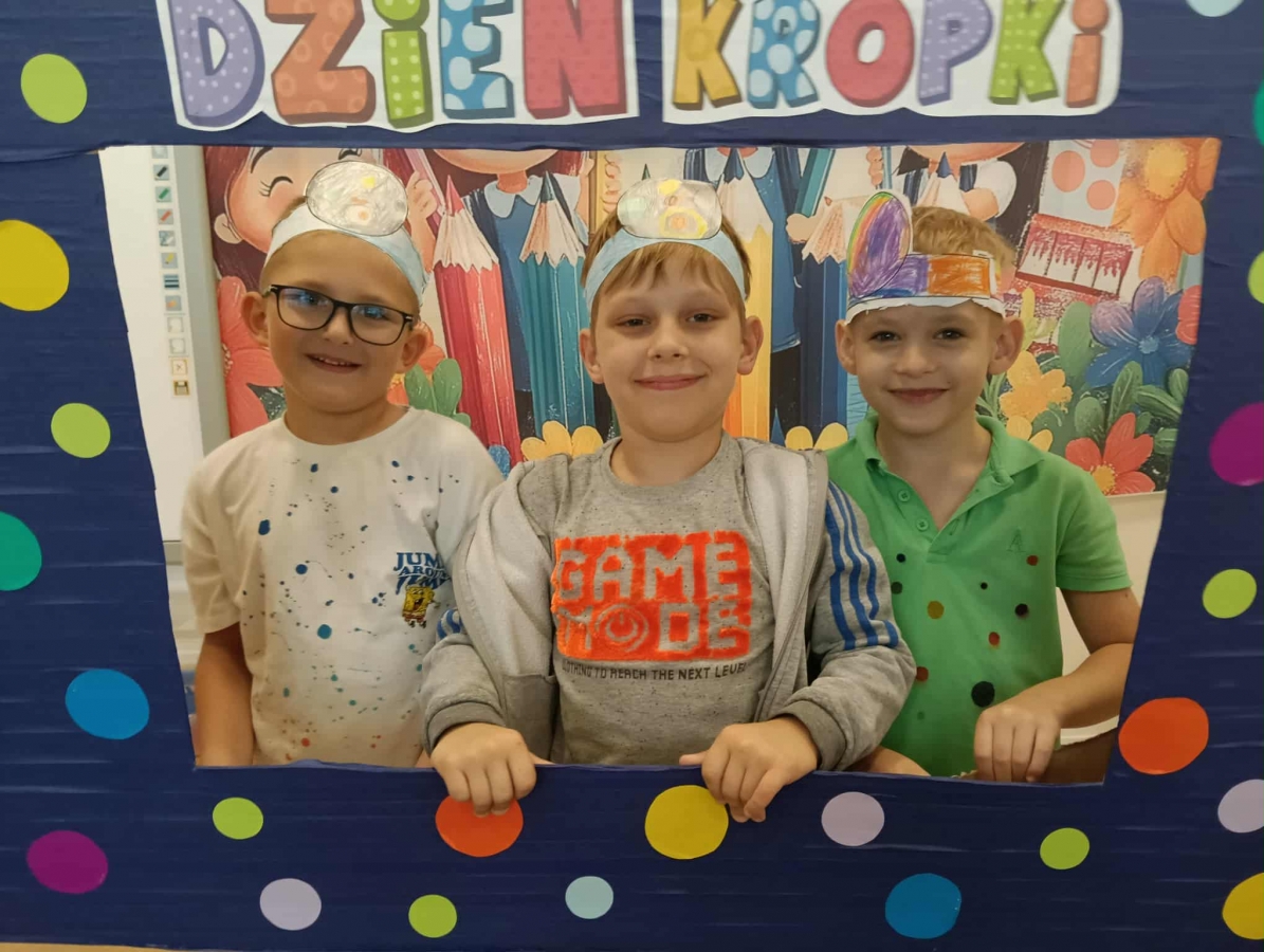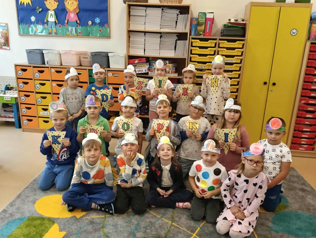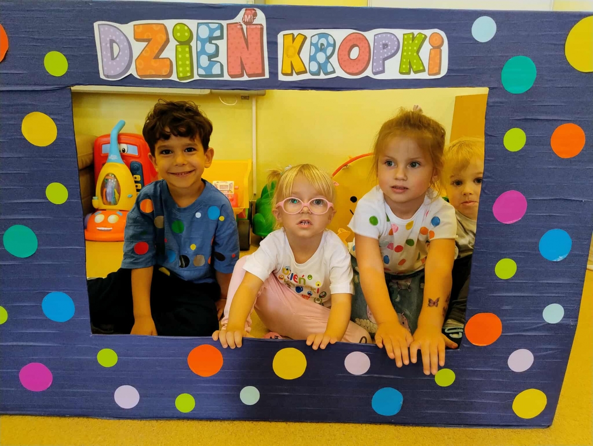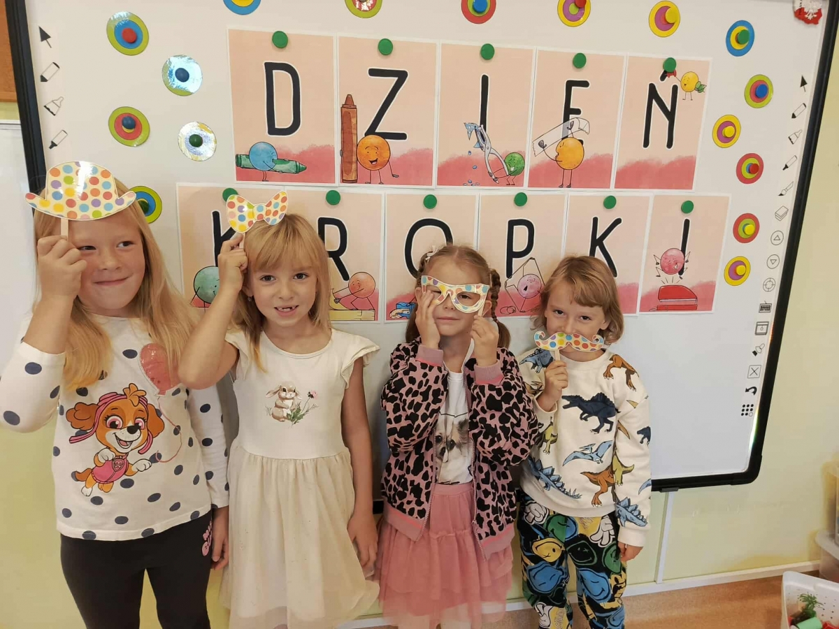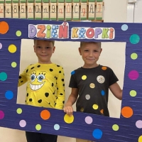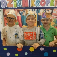 Tego dnia również dostrzegaliśmy kropki tam, gdzie wcześniej nikt na nie nie zwracał uwagi. Okazało się, że kropki towarzyszą nam w naszym codziennym życiu: są w kropkach biedronki, z kropki można utworzyć słońce, bombkę choinkową, kolorową kulę, czy piłkę.