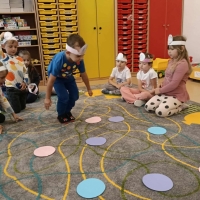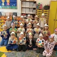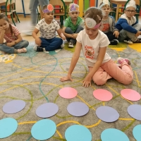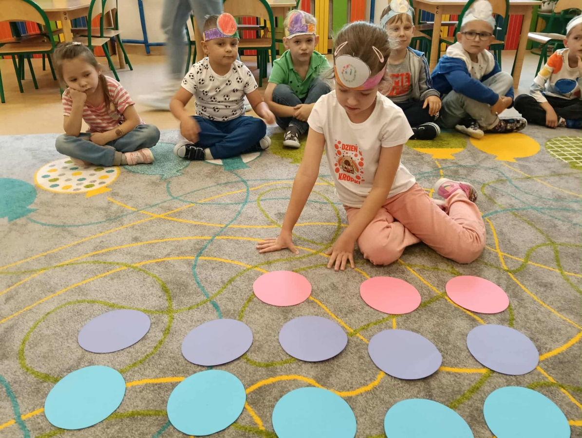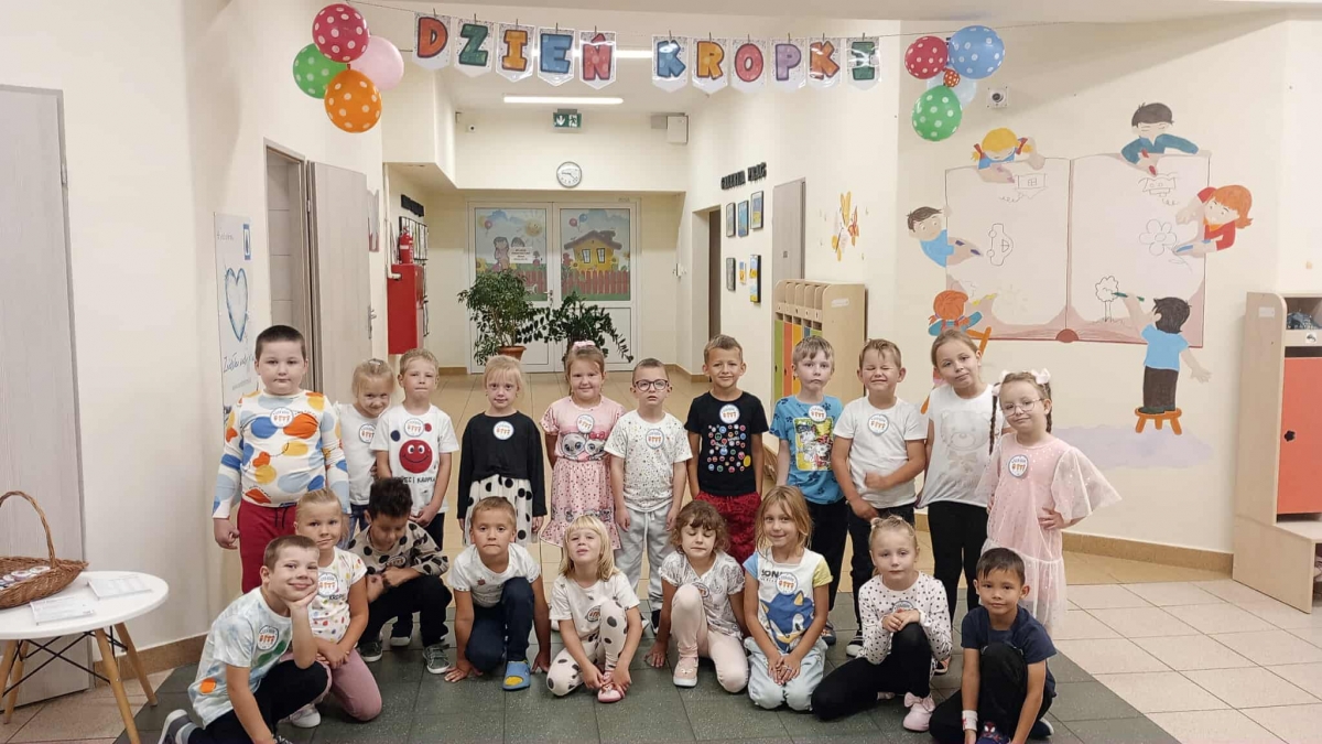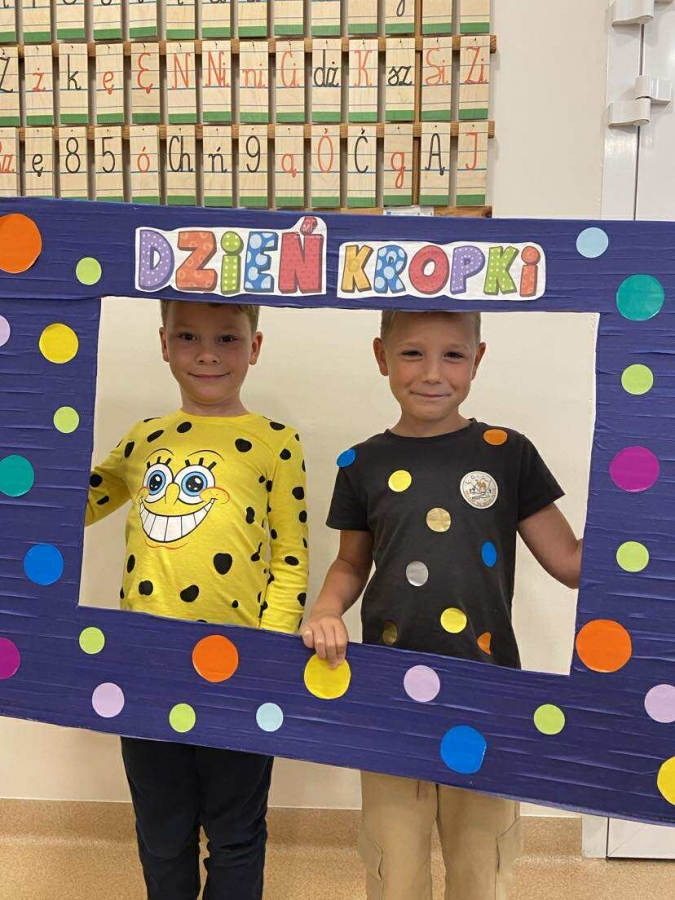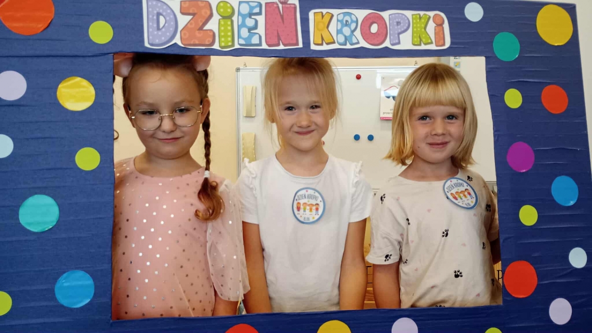 Tego dnia również dostrzegaliśmy kropki tam, gdzie wcześniej nikt na nie nie zwracał uwagi. Okazało się, że kropki towarzyszą nam w naszym codziennym życiu: są w kropkach biedronki, z kropki można utworzyć słońce, bombkę choinkową, kolorową kulę, czy piłkę.