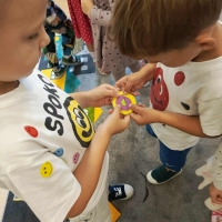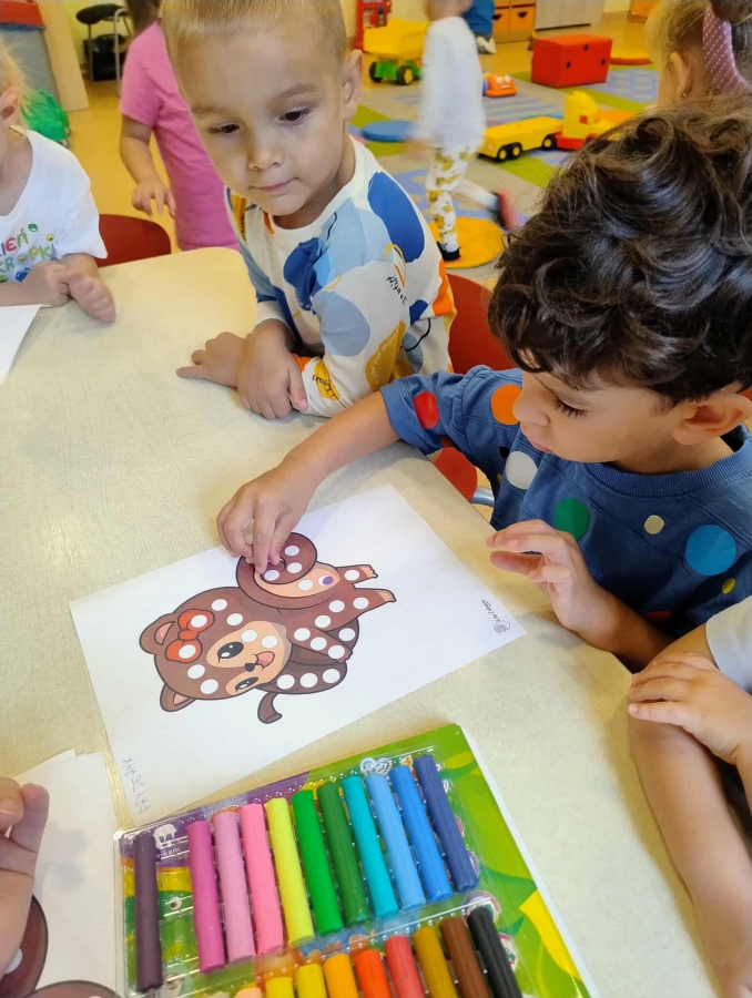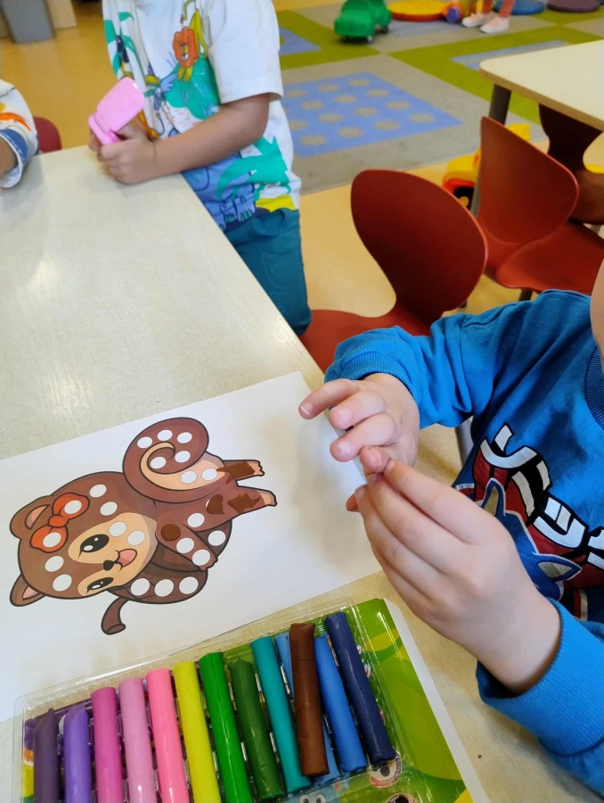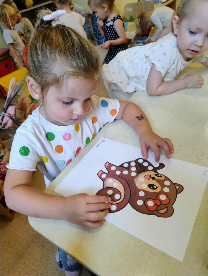 Na zajęciach dzieci poznały genezę tego święta, uważnie wysłuchały opowiadania, jak to zwyczajna kropka zmieniła świat małej dziewczynki o imieniu Vashti. Historia ta uświadomiła przedszkolakom, że każdy z nas ma jakieś ukryte zdolności, TALENT.