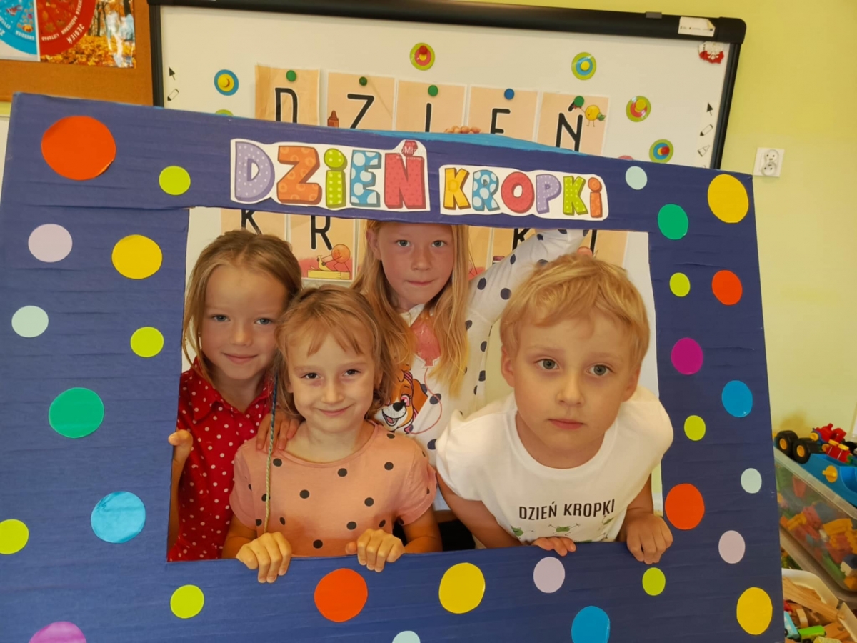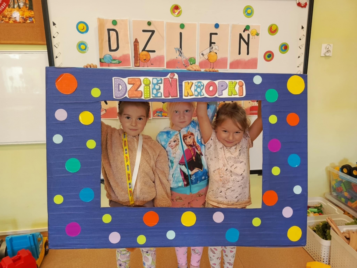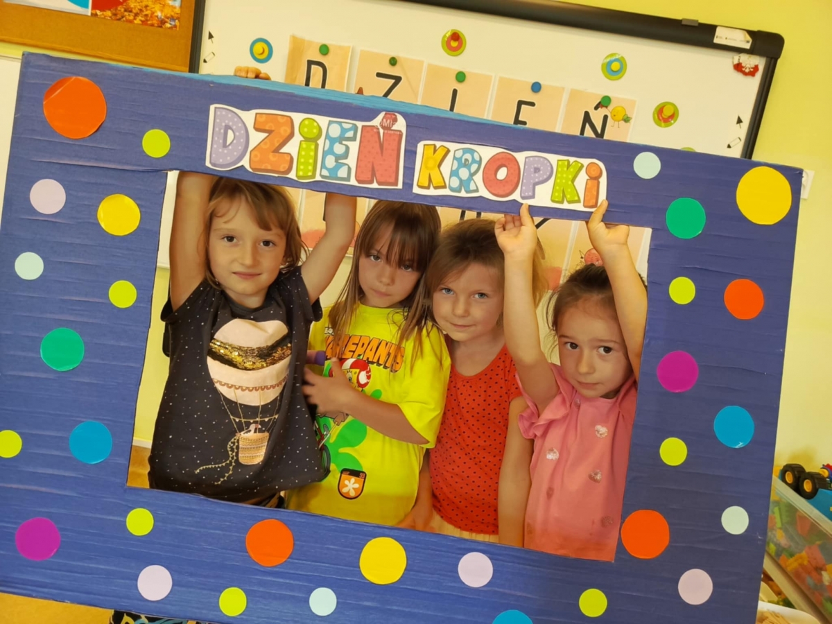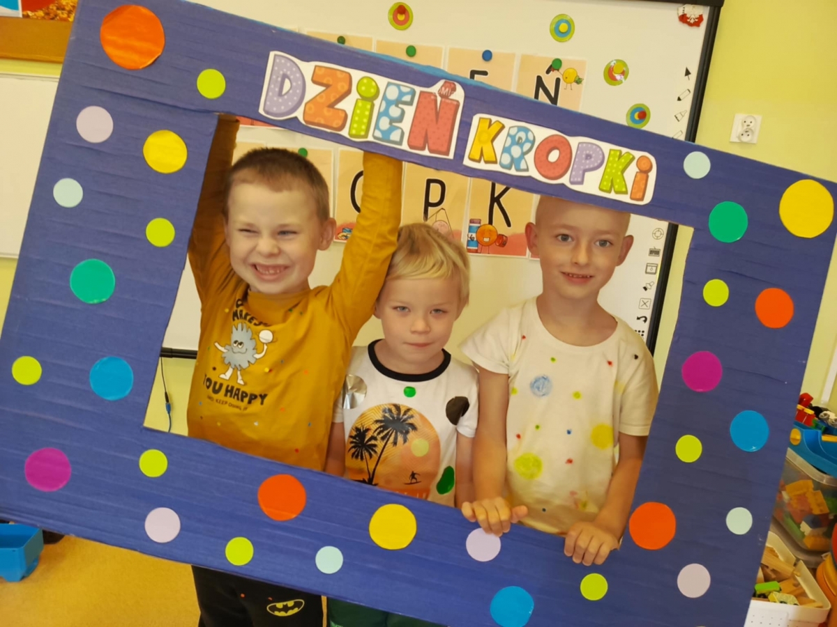 Dzień Kropki to dzień, kiedy inspirujemy dzieci do odkrywania swoich talentów, odwagi i kreatywności. Poznalismy historię dziewczynki Vashti, która uważała, że nie potrafi rysować. Wykonaliśmy drzewo techniką stemplowania. Śpiewaliśmy piosenkę "Podajemy kropki" oraz wykonywaliśmy różne ćwiczenia ruchowe inspirowane kolorowymi kropkami.