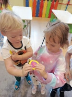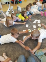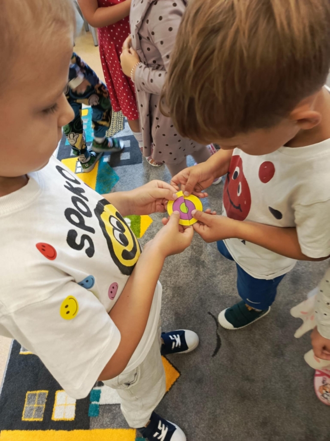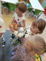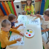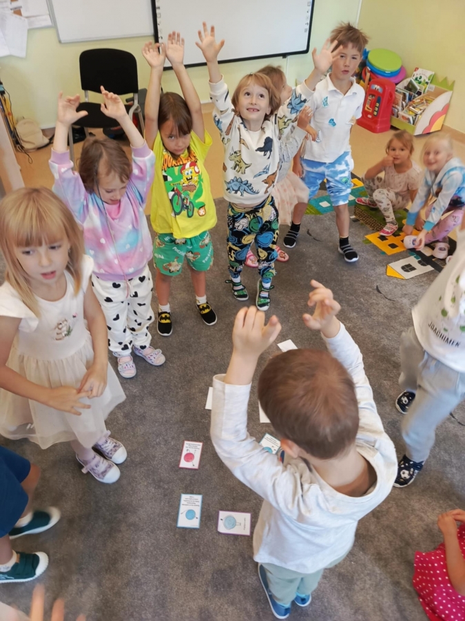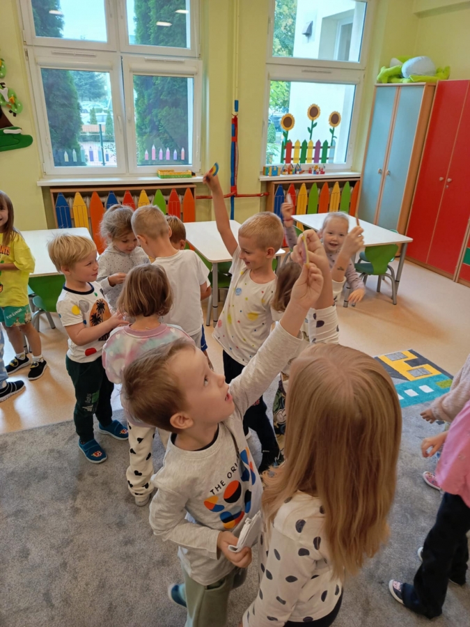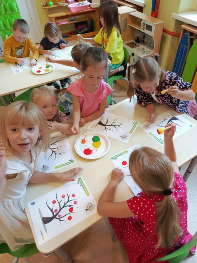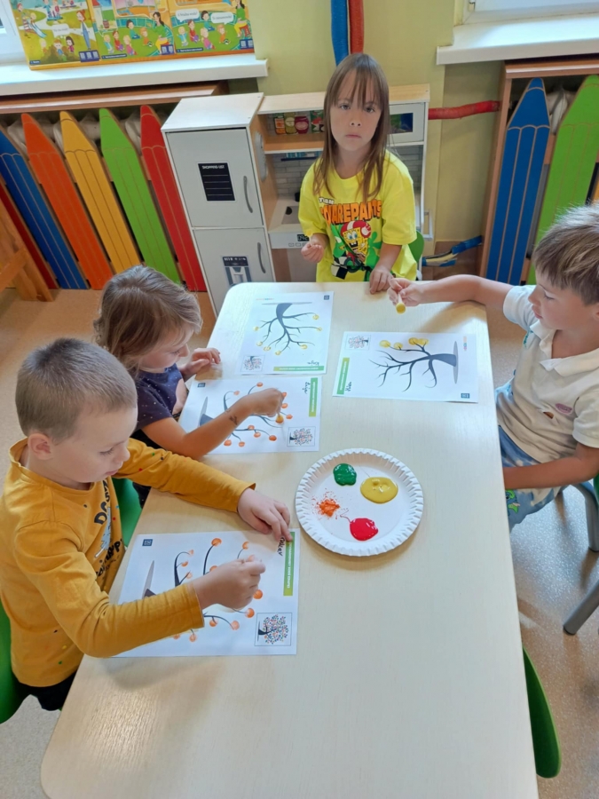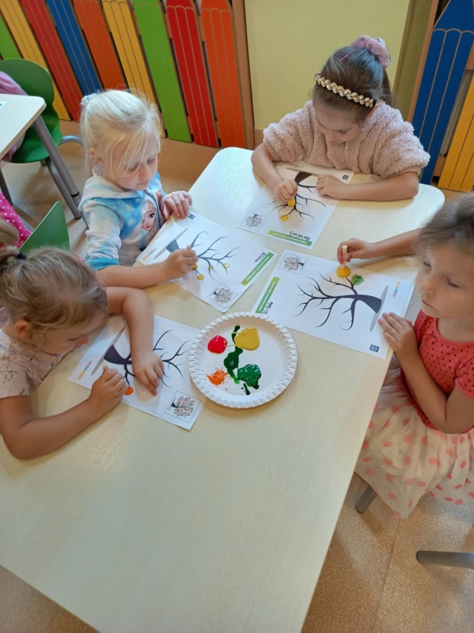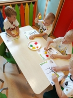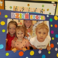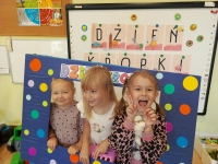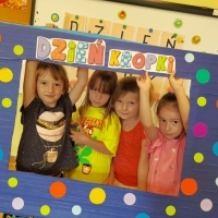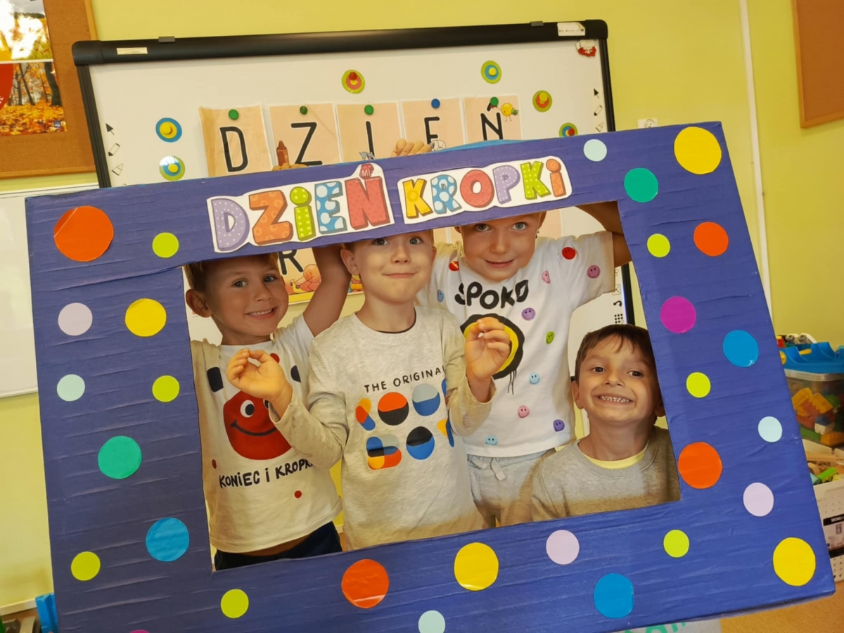 Dzień Kropki to dzień, kiedy inspirujemy dzieci do odkrywania swoich talentów, odwagi i kreatywności. Poznalismy historię dziewczynki Vashti, która uważała, że nie potrafi rysować. Wykonaliśmy drzewo techniką stemplowania. Śpiewaliśmy piosenkę "Podajemy kropki" oraz wykonywaliśmy różne ćwiczenia ruchowe inspirowane kolorowymi kropkami.