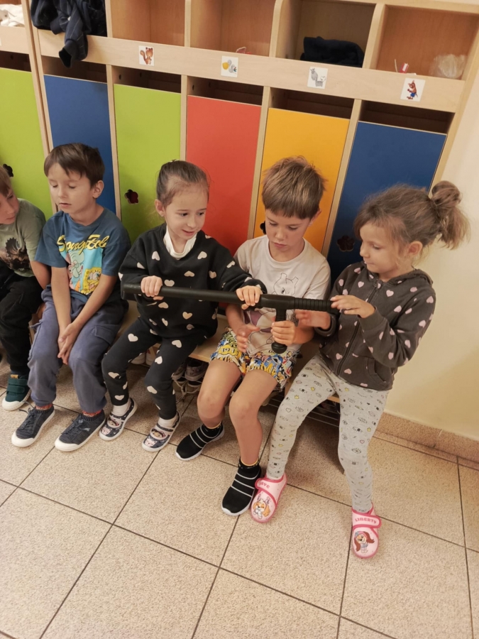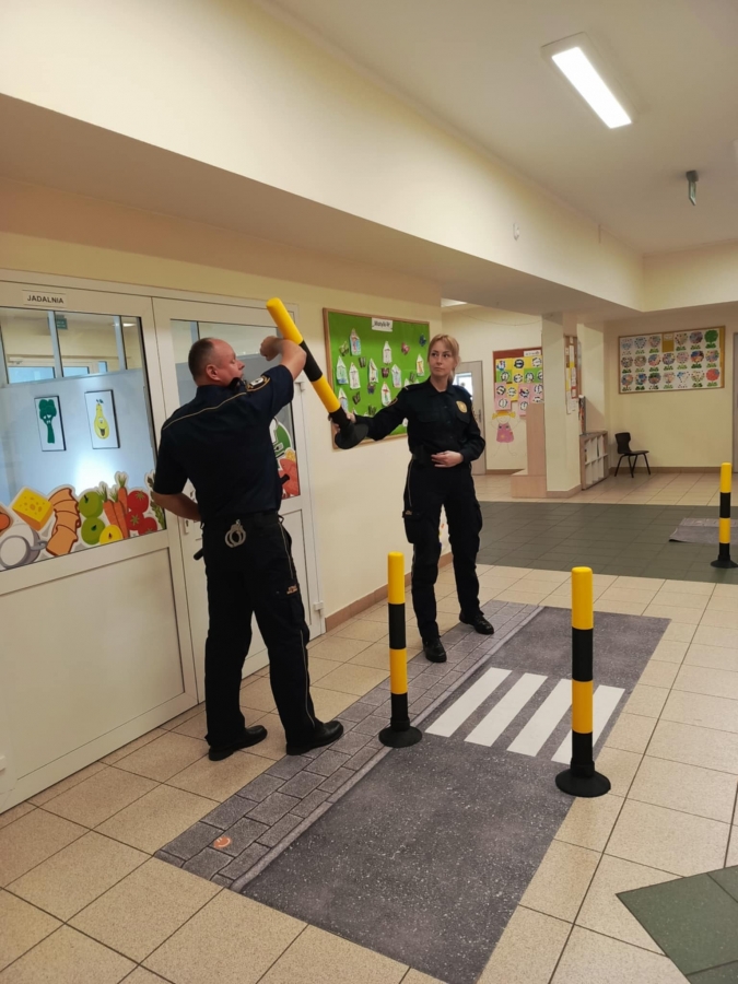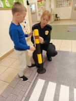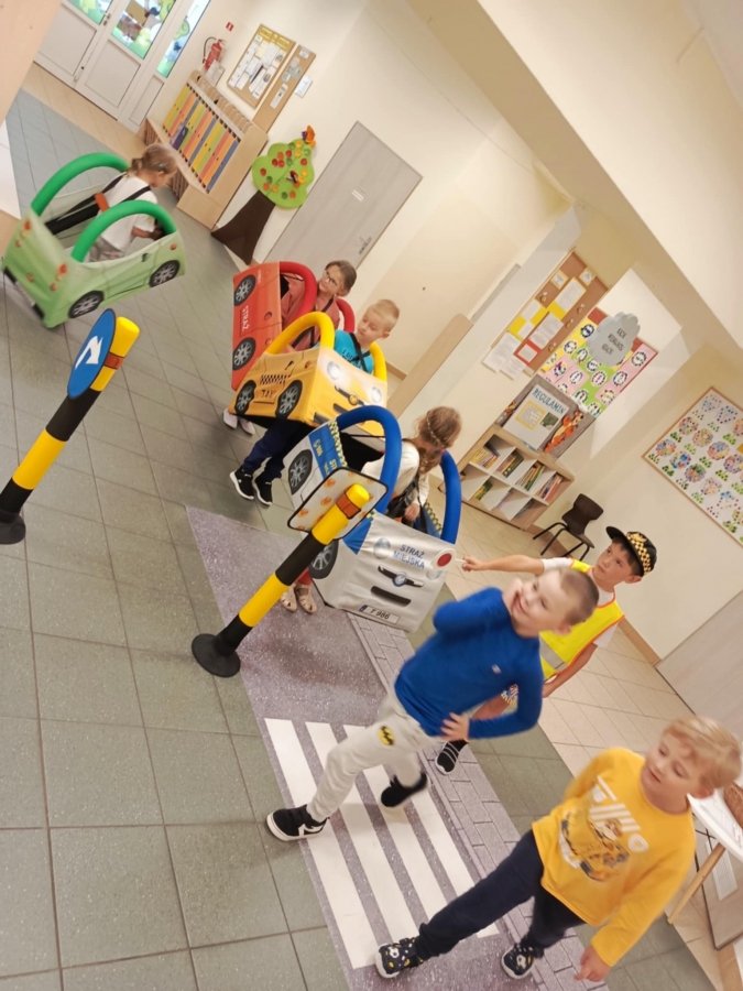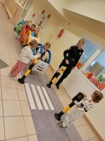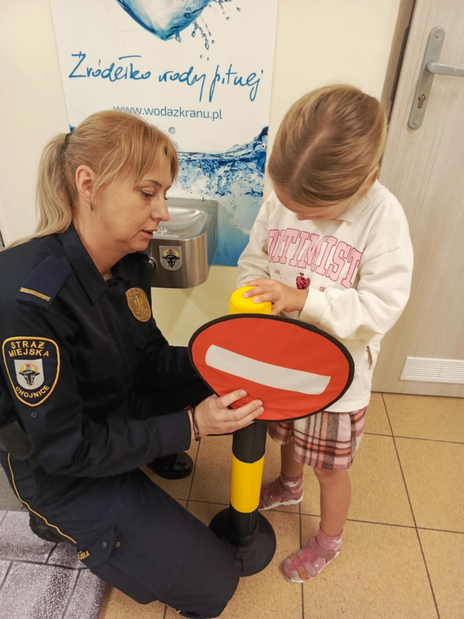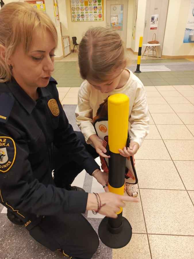 Nasze przedszkole odwiedzili pracownicy straży miejskiej. Przeprowadzili krótką pogadankę na temat bezpiecznego poruszania się po drodze. Pokazali elementy umundurowania i wyposażenia strażnika. Dzieci wzięły również udział w ćwiczeniach praktycznych ucząc się przechodzenia przez przejście dla pieszych oraz kierując autami.