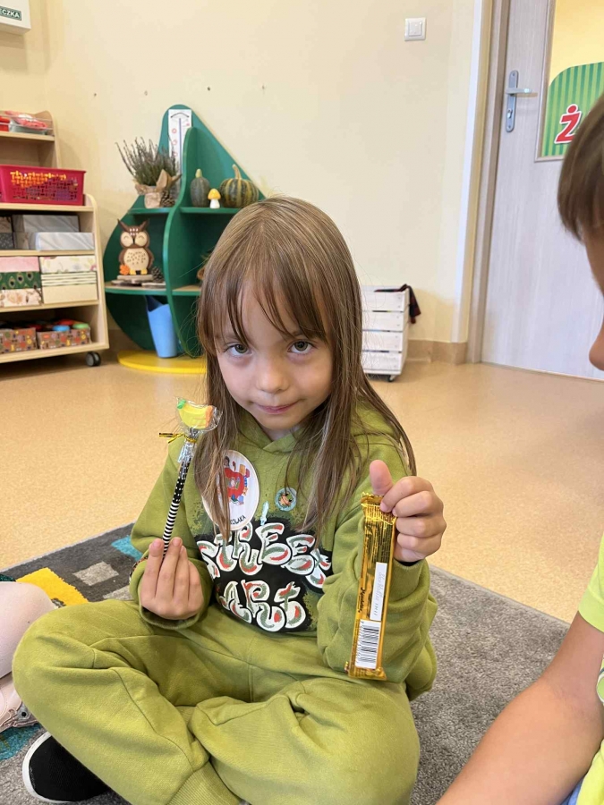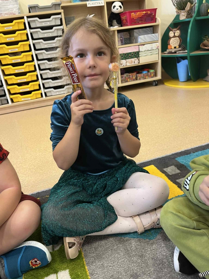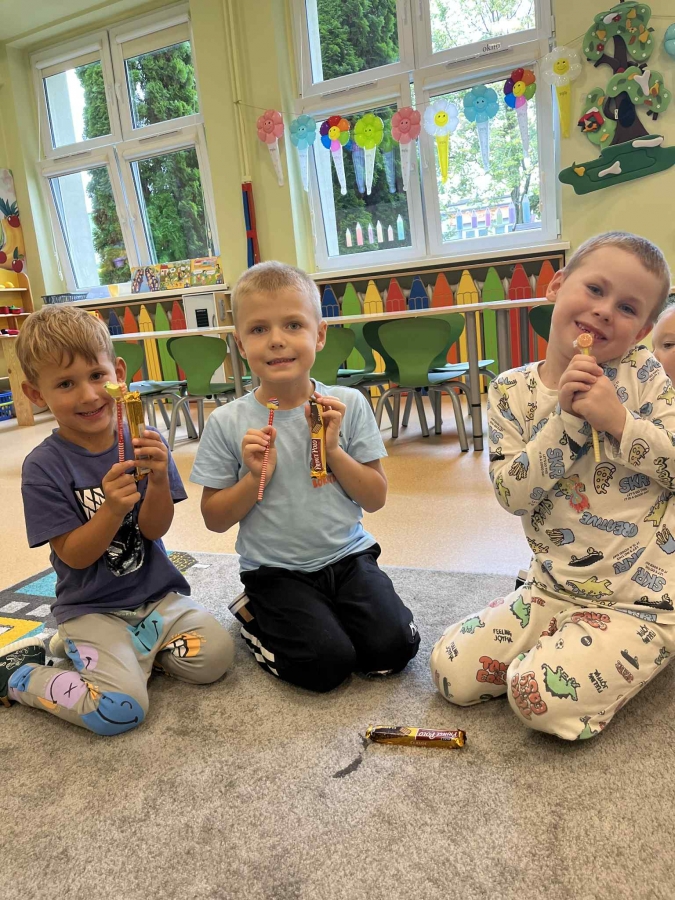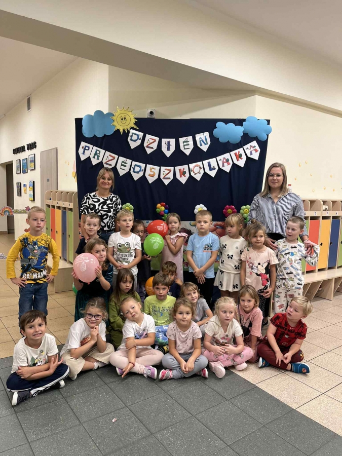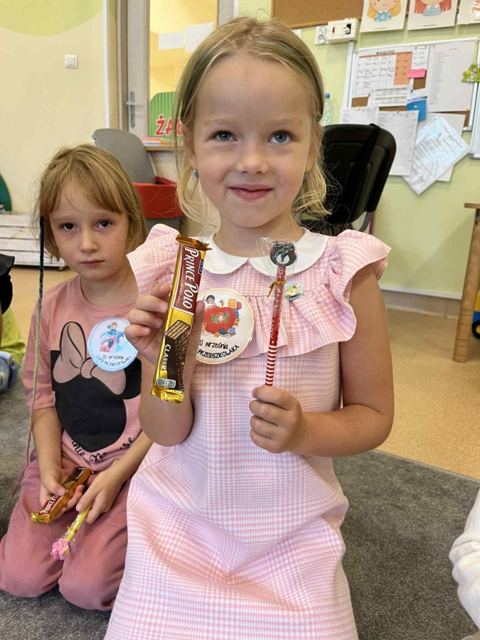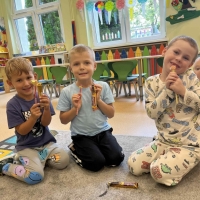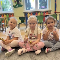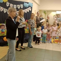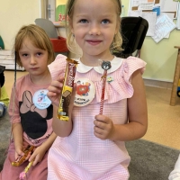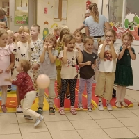 Dzisiejszy dzień był wyjątkowy, ponieważ obchodziliśmy święto wszystkich przedszkolakow. Na dzieci czekało wiele atrakcji. Na holu został odśpiewany Hymn Przedszkolaka, a następnie uczestniczyliśmy w zabawach ruchowych, tanecznych oraz odpowiadaliśmy na zagadki bajkowe. W sali również nie zabrakło dobrej zabawy. Puszczaliśmy bańki mydlane, tańczyliśmy, robiliśmy zdjęcia w fotoramce. Nie zabrakło również slodkiego poczęstunku oraz drobnych upominków. Dzieci otrzymały balonowe kwiatki, ołówki oraz wafelki.