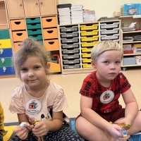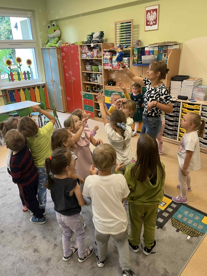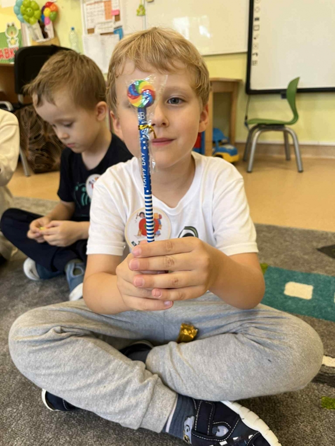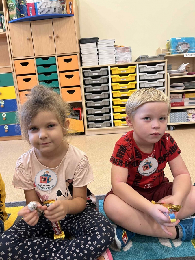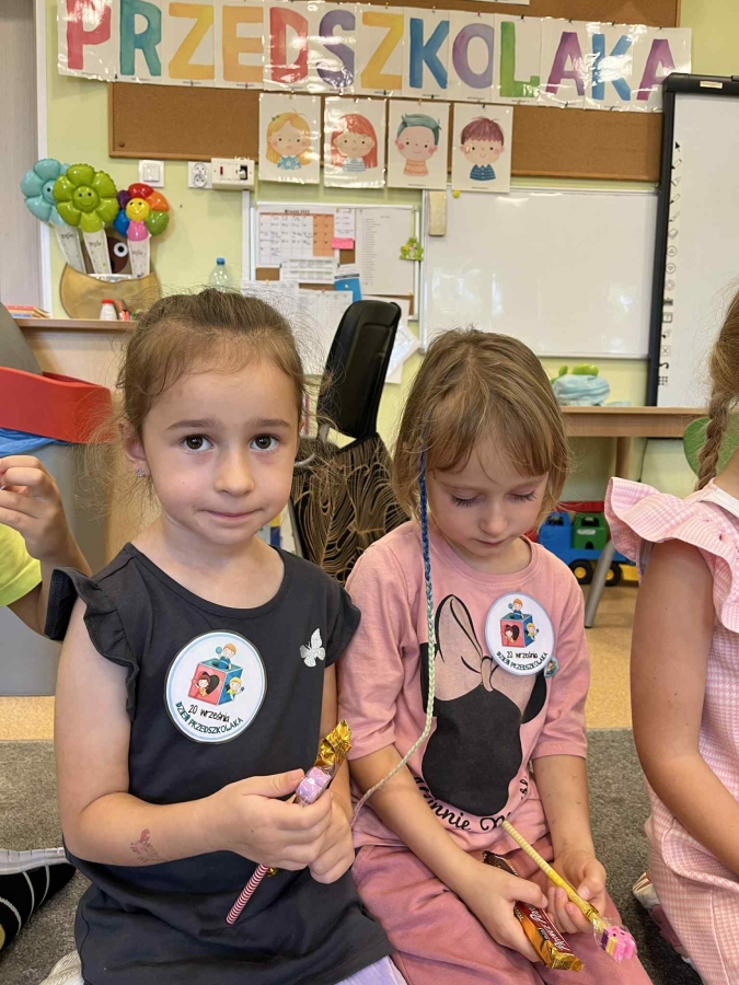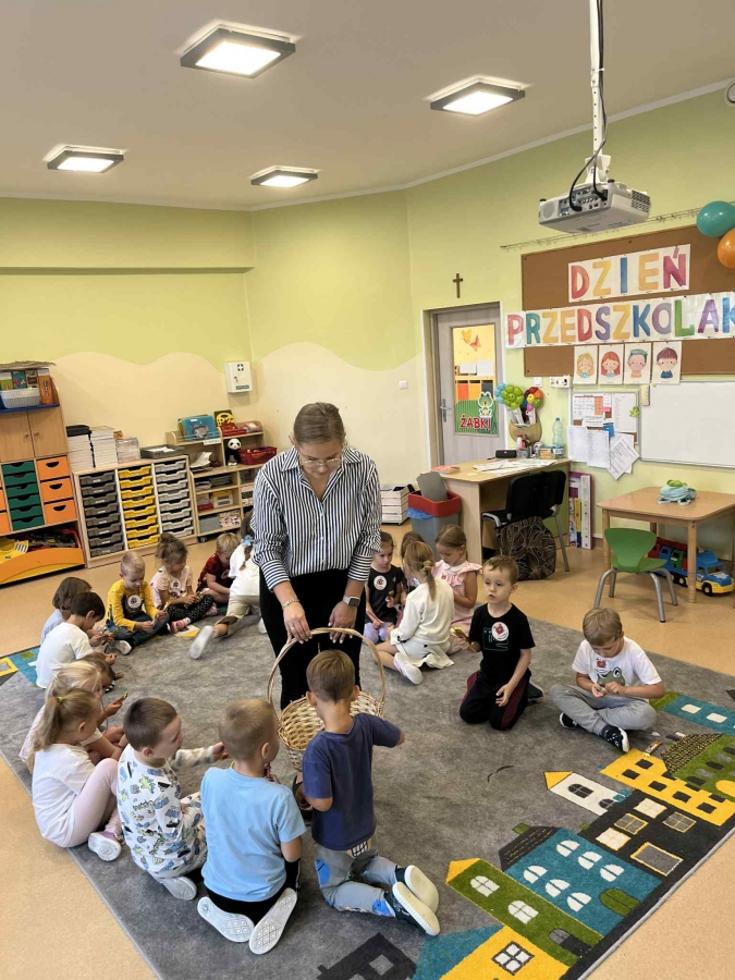 Dzisiejszy dzień był wyjątkowy, ponieważ obchodziliśmy święto wszystkich przedszkolakow. Na dzieci czekało wiele atrakcji. Na holu został odśpiewany Hymn Przedszkolaka, a następnie uczestniczyliśmy w zabawach ruchowych, tanecznych oraz odpowiadaliśmy na zagadki bajkowe. W sali również nie zabrakło dobrej zabawy. Puszczaliśmy bańki mydlane, tańczyliśmy, robiliśmy zdjęcia w fotoramce. Nie zabrakło również slodkiego poczęstunku oraz drobnych upominków. Dzieci otrzymały balonowe kwiatki, ołówki oraz wafelki.