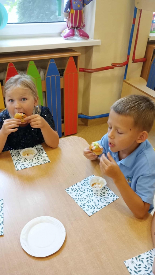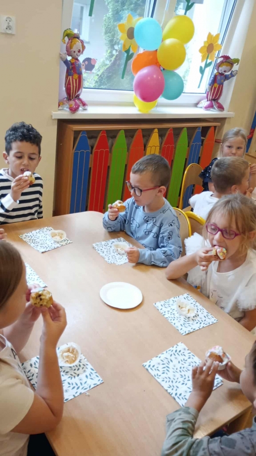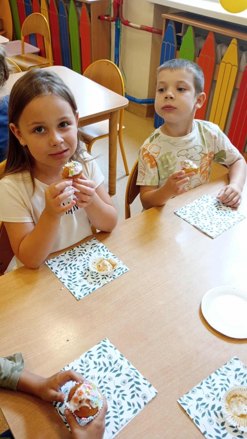 Dzień Przedszkolaka W piątek w naszym przedszkolu obchodziliśmy Dzień Przedszkolaka. Było dużo śpiewu, radosnych zabaw z naszą panią oraz wesołych aktywności w sali z robotem. Nasza grupa piekła pyszne babeczki, które później pięknie ozdabialiśmy. Robiliśmy też zabawne zdjęcia w fotobudce i otrzymaliśmy super prezenty. To był naprawdę zaczarowany dzień, pełen uśmiechu i wspaniałych wrażeń!