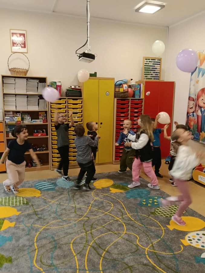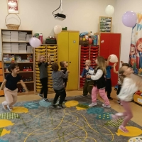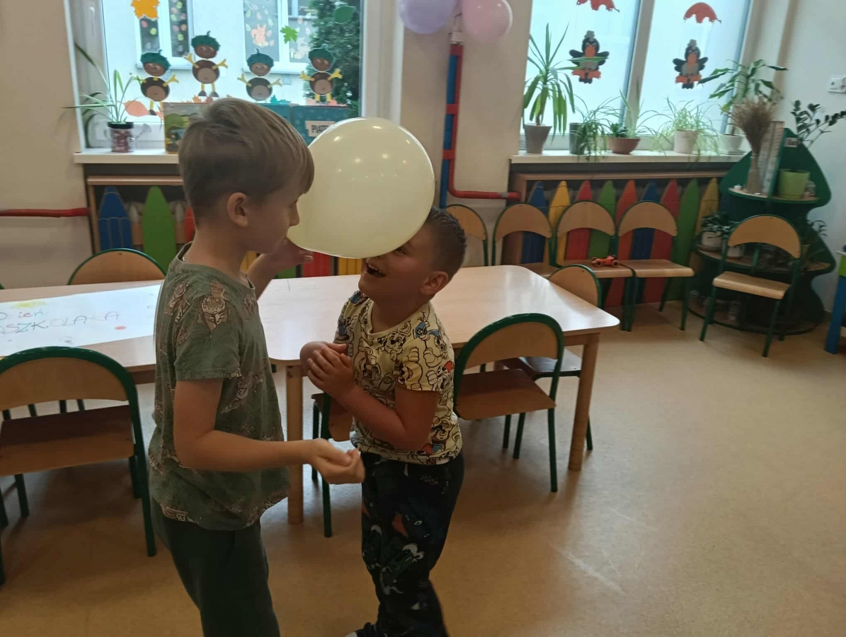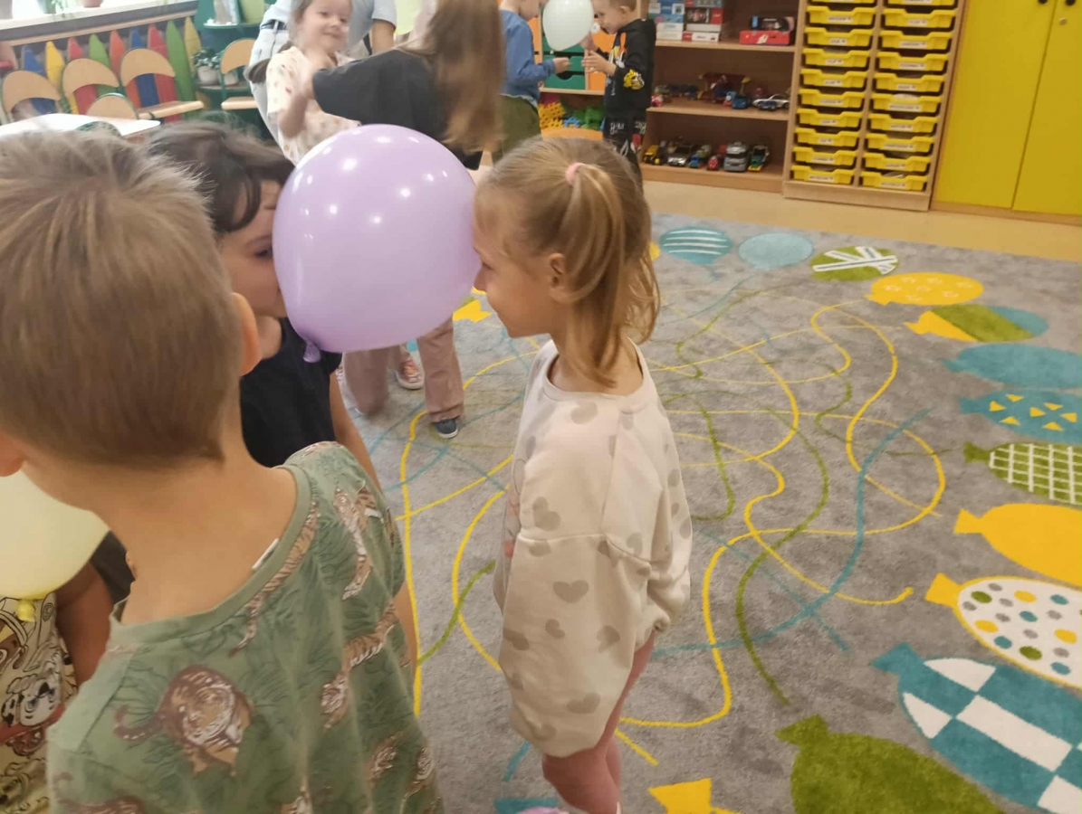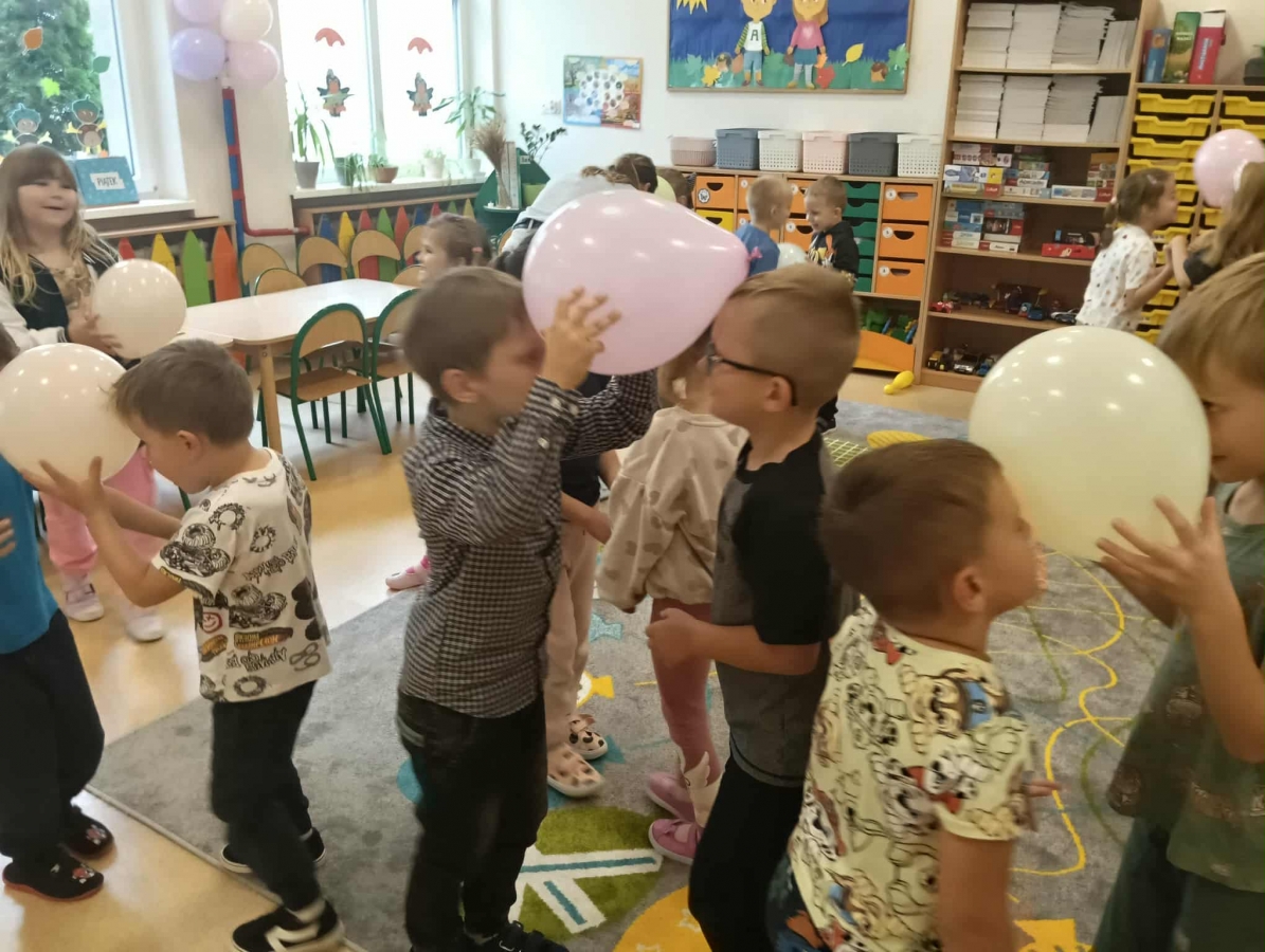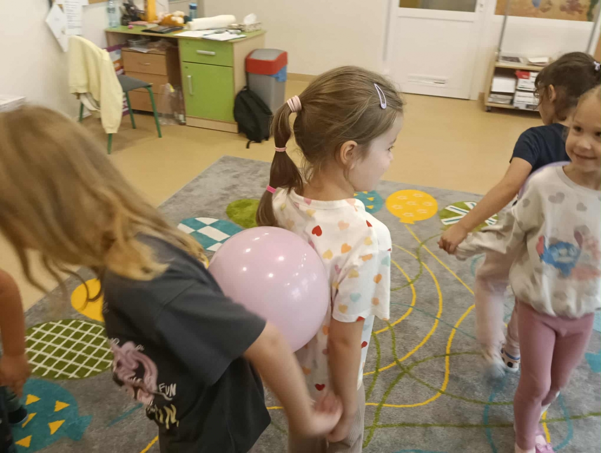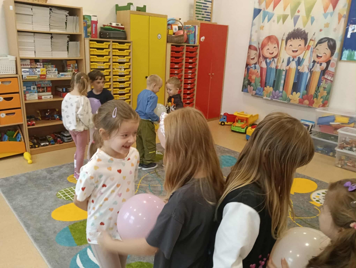 Z tej okazji dzieci brały udział we wspólnych zabawach, które sprzyjały integracji, radości i budowaniu przedszkolnych przyjaźni. Było dużo uśmiechu, tańców i wesołej atmosfery! Dzieci miały okazję zrobić sobie pamiątkowe zdjęcie w specjalnie przygotowanej fotoramce. Nie zabrakło także drobnych upominków, które sprawiły naszym przedszkolakom wiele radości.