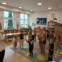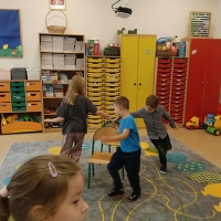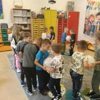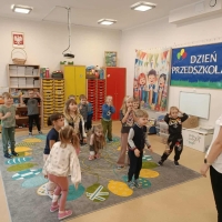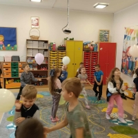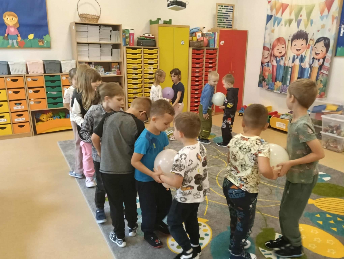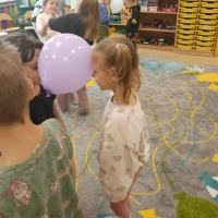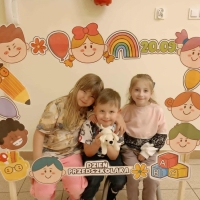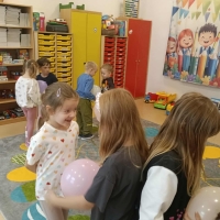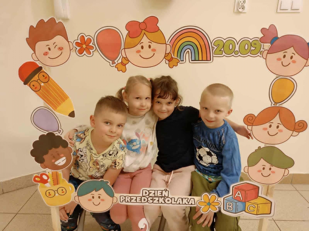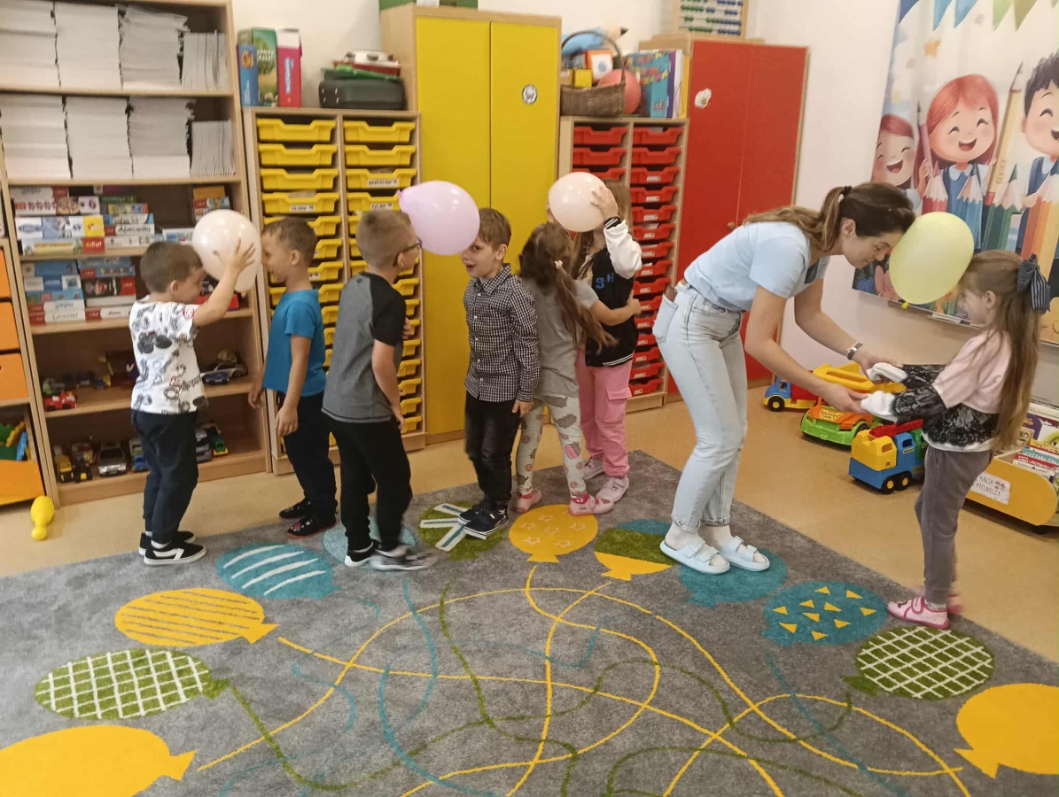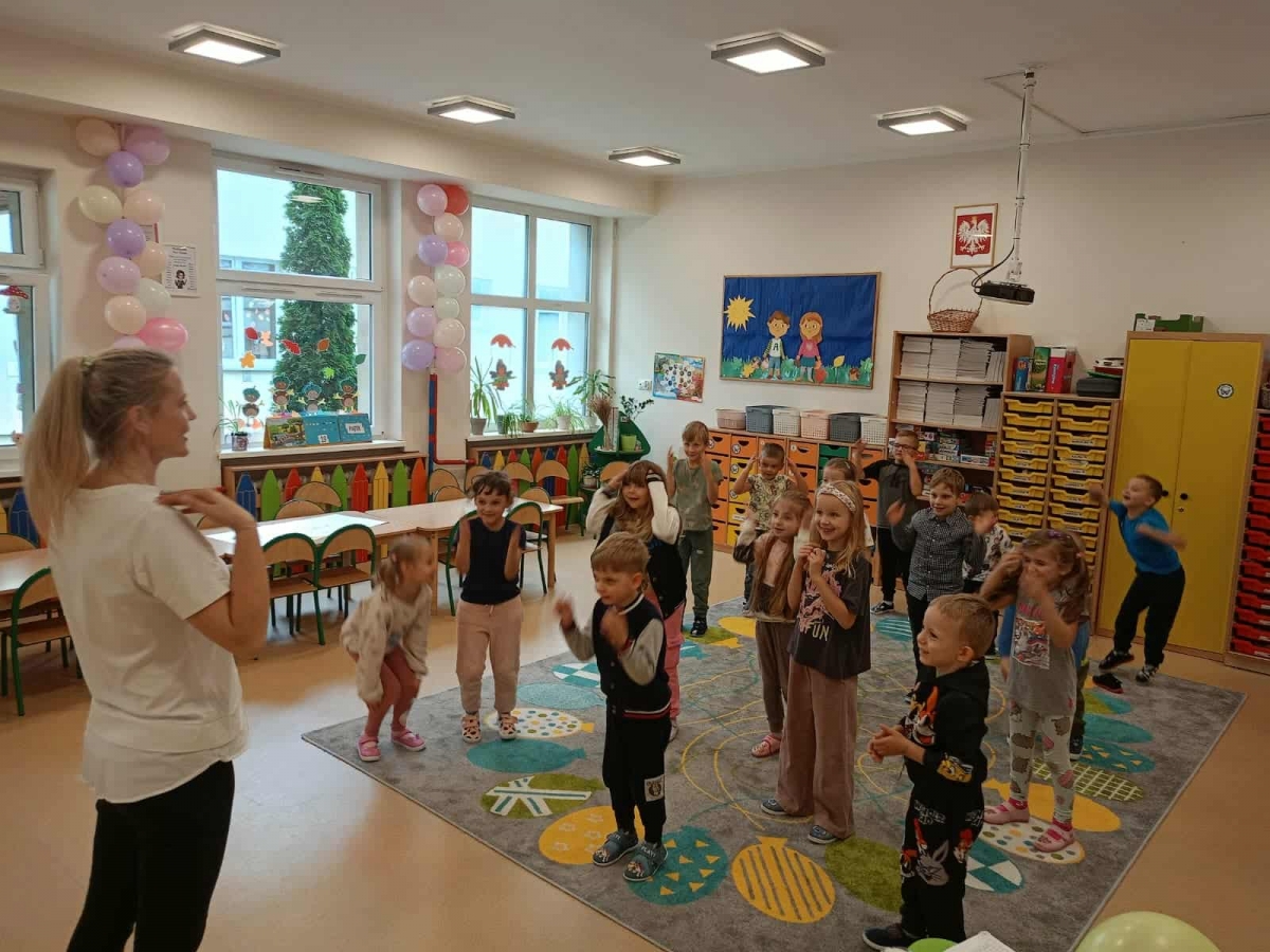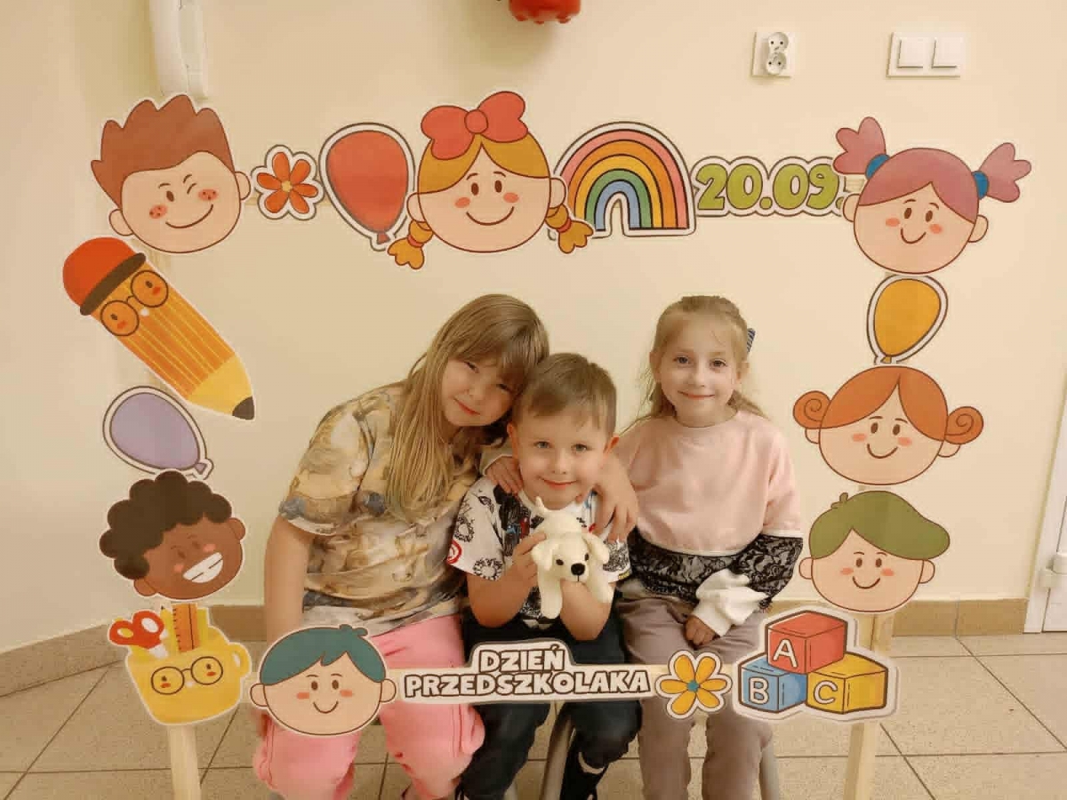 Z tej okazji dzieci brały udział we wspólnych zabawach, które sprzyjały integracji, radości i budowaniu przedszkolnych przyjaźni. Było dużo uśmiechu, tańców i wesołej atmosfery! Dzieci miały okazję zrobić sobie pamiątkowe zdjęcie w specjalnie przygotowanej fotoramce. Nie zabrakło także drobnych upominków, które sprawiły naszym przedszkolakom wiele radości.