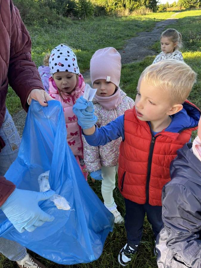 Nasze przedszkolaki z zaangażowaniem włączyły się w akcję Sprzątanie Świata. Dzieci uczyły się, jak ważna jest troska o przyrodę. Wspólnie zbieraliśmy śmieci na placu przedszkolnym i jego okolicy. To była cenna lekcja ekologii połączona z dobrą zabawą.