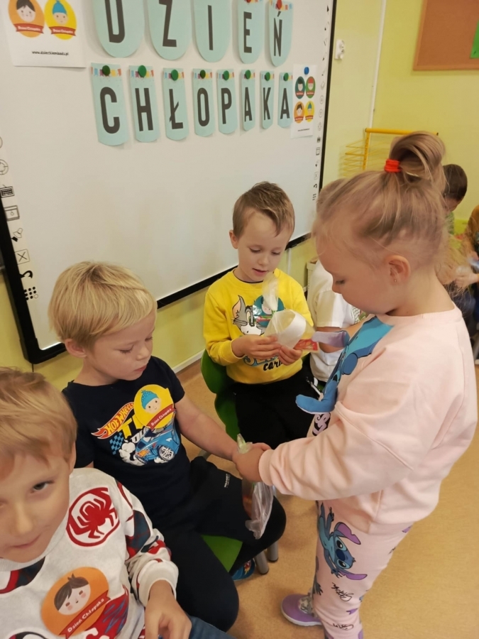 Z tej okazji dziewczynki przygotowały dla swoich kolegów niezwykle miłe niespodzianki. Od samego rana w przedszkolu panowała radosna atmosfera, a dzieci z podekscytowaniem czekały na wspólne świętowanie.