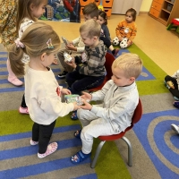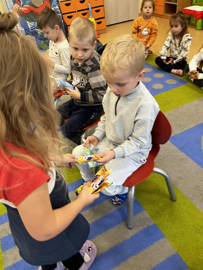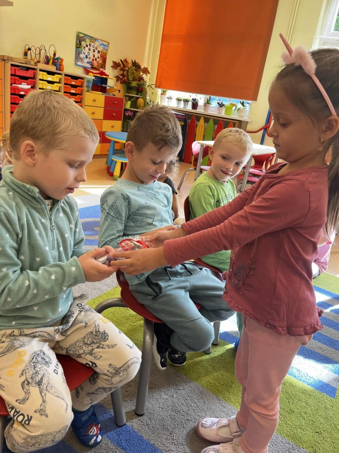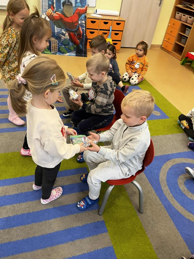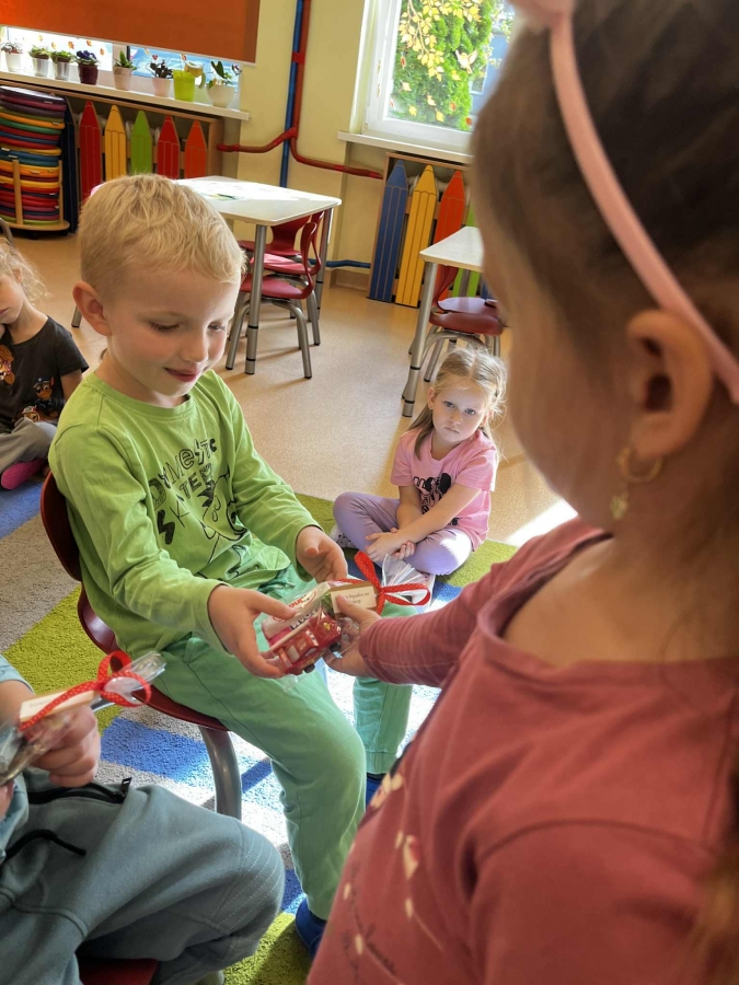 Nie zabrakło wspólnych tańców, konkursów i serdecznych życzeń. Na zakończenie uroczystości chłopcy otrzymali upominki, a dodatkową niespodzianką były prezenty przygotowane przez dwie koleżanki z grupy. To był wyjątkowy dzień pełen radości, przyjaźni i uśmiechu.