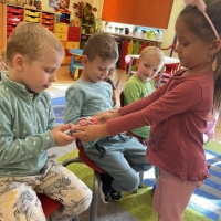 Dzień Chłopaka w naszej grupie był pełen radości, uśmiechów i świetnej zabawy! Chłopcy zamienili się w prawdziwych superbohaterów, gotowych do pomocy i przygód. Dziewczynki również postanowiły dołączyć do zabawy i z ogromnym entuzjazmem wcieliły się w bohaterki dnia – wspólnie tworząc wspaniałą, zgraną drużynę!