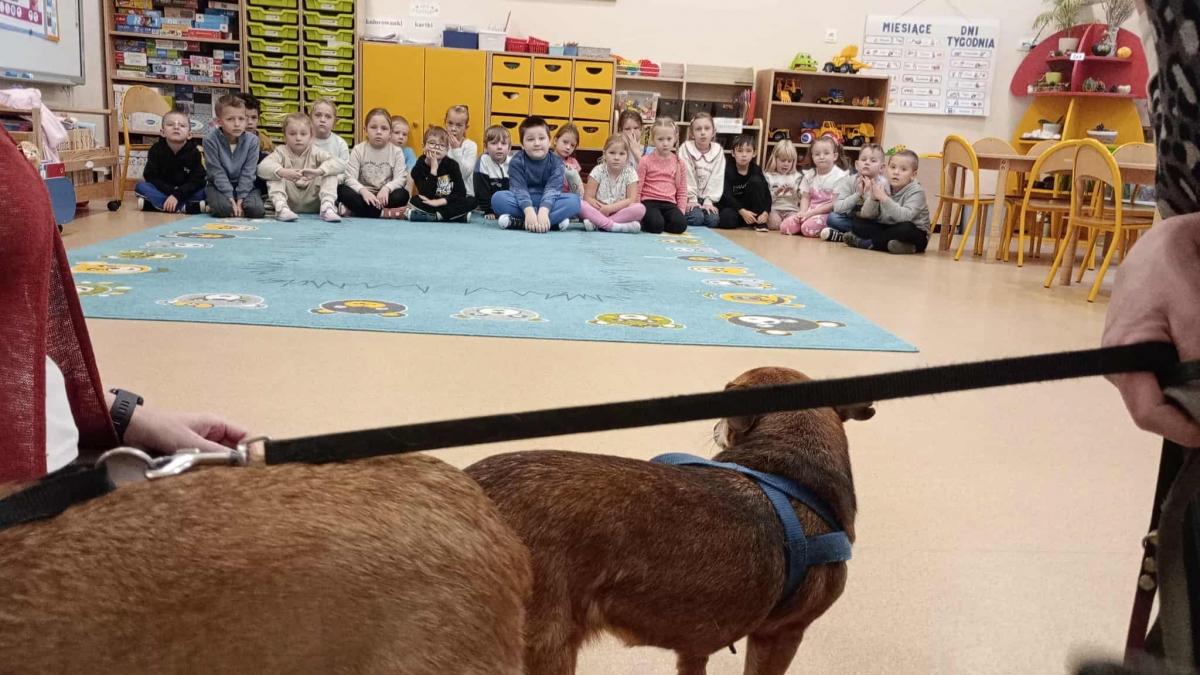 Podczas spotkania dzieci dowiedziały się, jak wygląda codzienna opieka nad zwierzętami przebywającymi w schronisku oraz jak ważne jest pomaganie bezdomnym czworonogom. Przedszkolaki z dużym zainteresowaniem słuchały opiekunów, zadawały pytania i dzieliły się swoimi doświadczeniami związanymi ze zwierzętami.