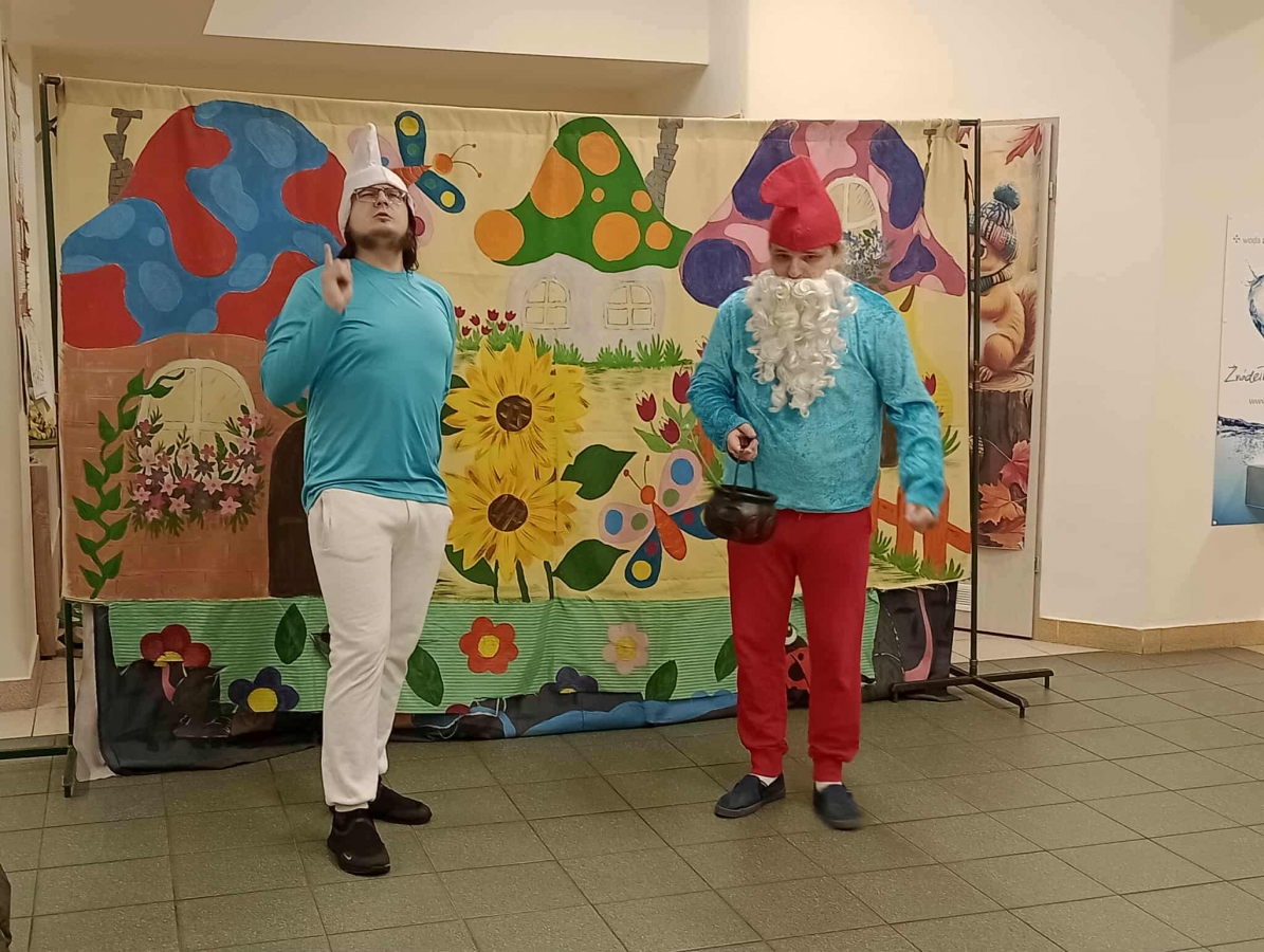Spektakl opowiadał o przygodach dobrze znanych dzieciom i dorosłym bohaterów. Był pełen energii, humoru i zabawnych sytuacji, a najmłodsi widzowie mogli aktywnie uczestniczyć w wydarzeniach rozgrywających się w wiosce i lesie. Na bohaterów czekało wiele niebezpieczeństw — największym z nich był Gargamel, który wraz ze swoim kotem Klakierem tropił mieszkańców lasu.