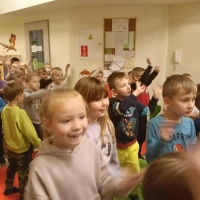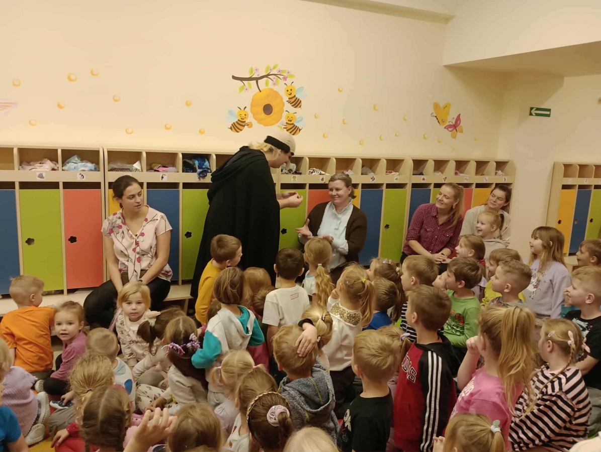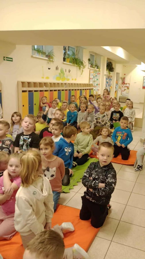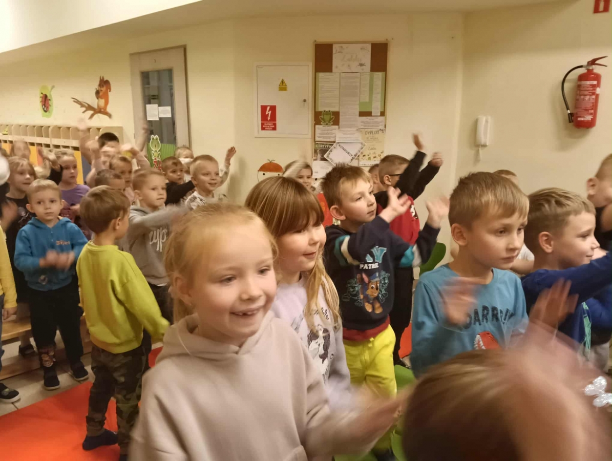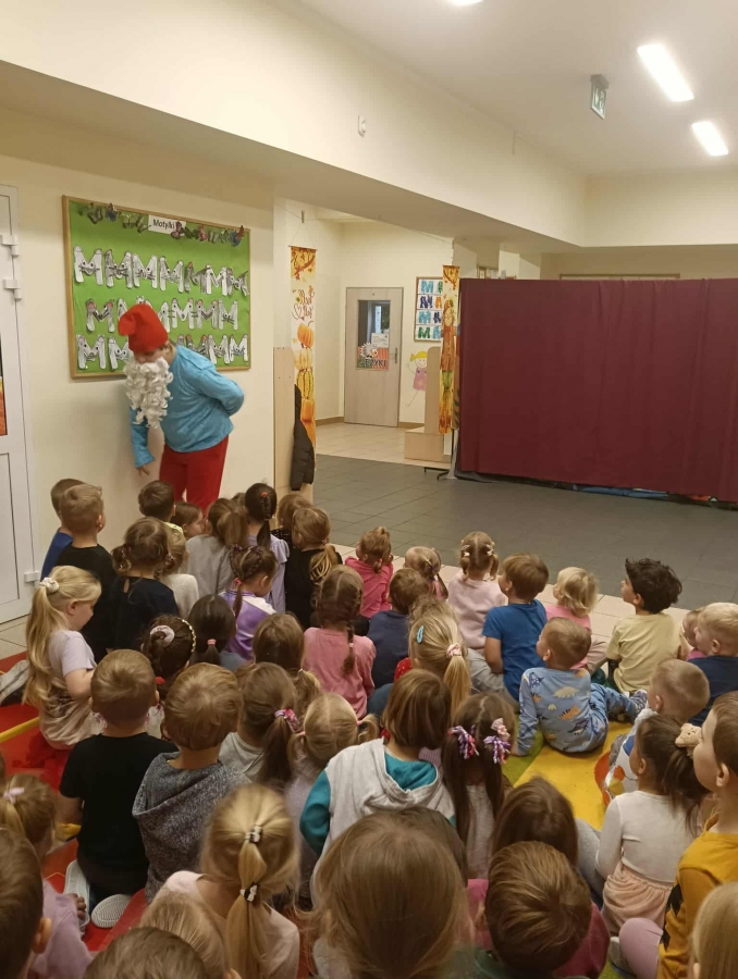 Przedszkolaki z dużym zainteresowaniem oglądały przedstawienie i z radością brały w nim udział.