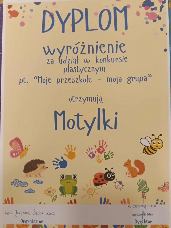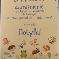 Praca łączy w sobie elementy przyrody i sztuki, a także odzwierciedla nazwę naszej grupy. Wspólne tworzenie motyli sprawiło dzieciom wiele radości i pozwoliło im poczuć dumę z efektu wspólnej pracy.