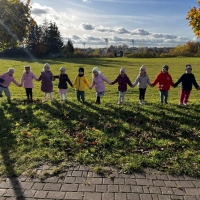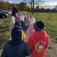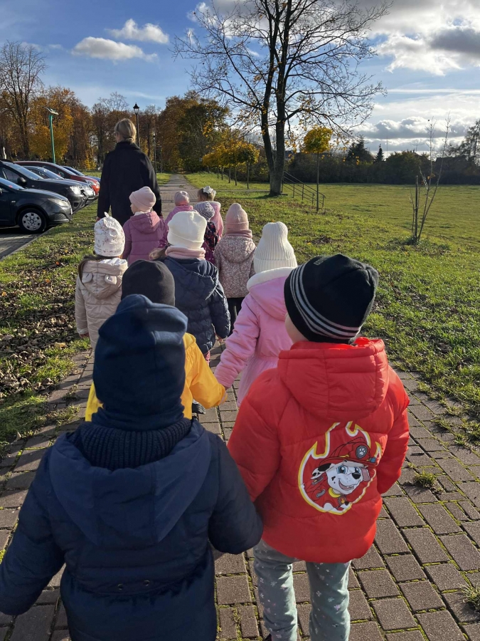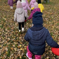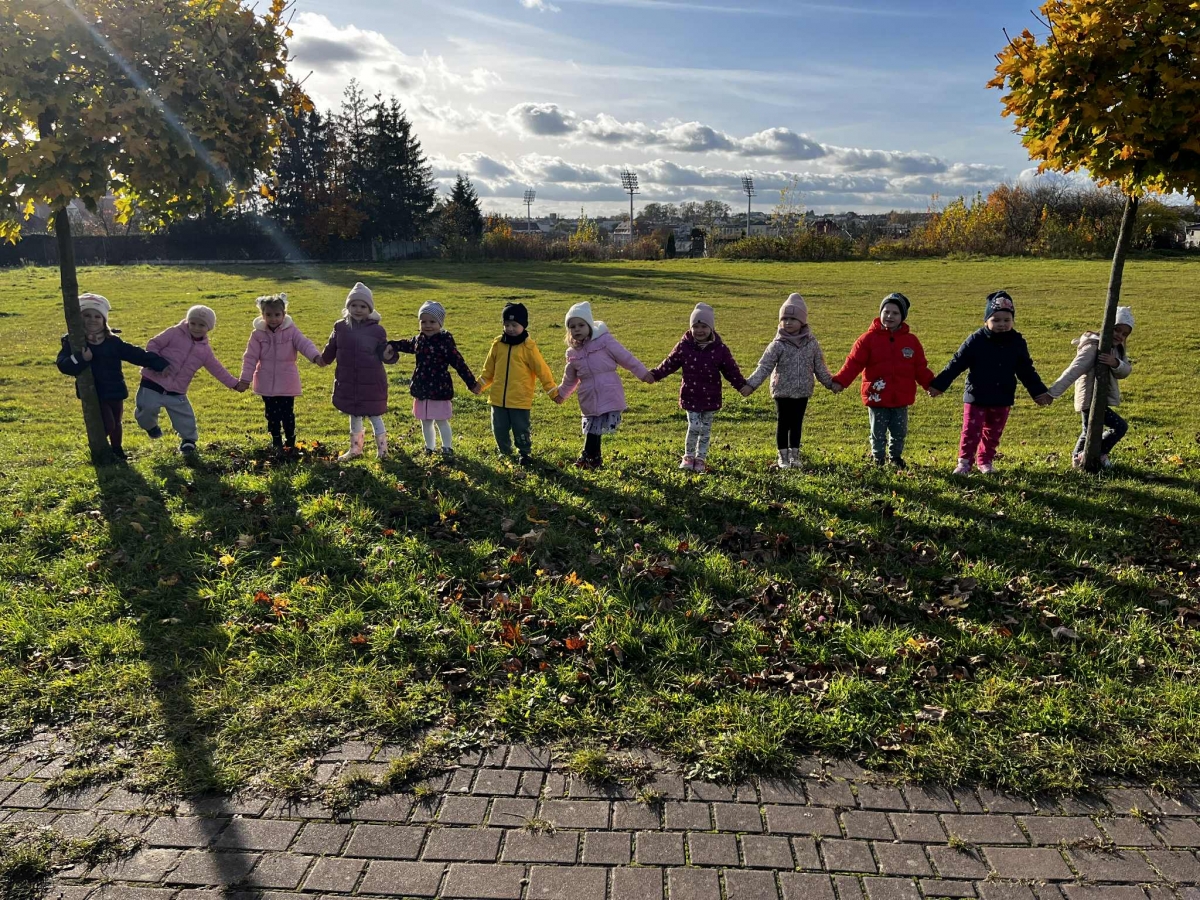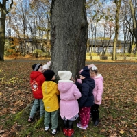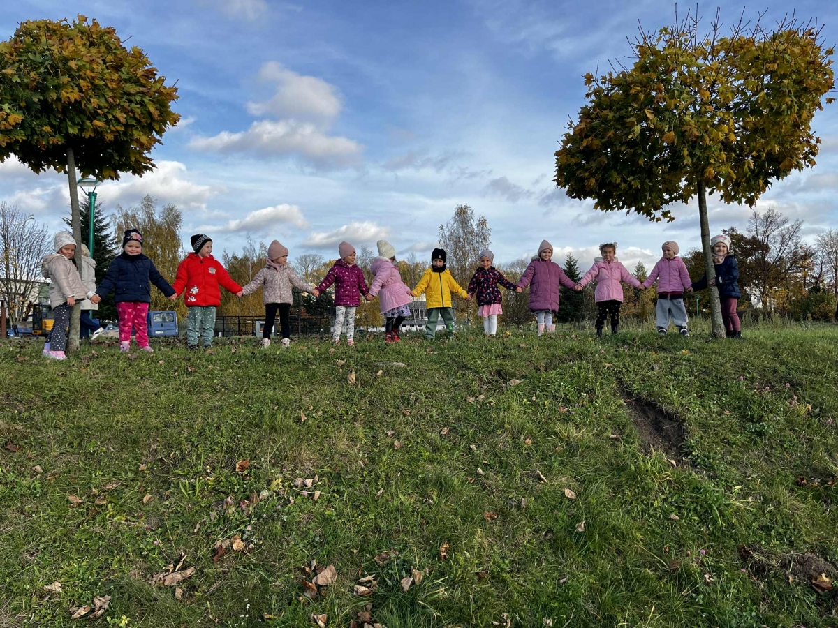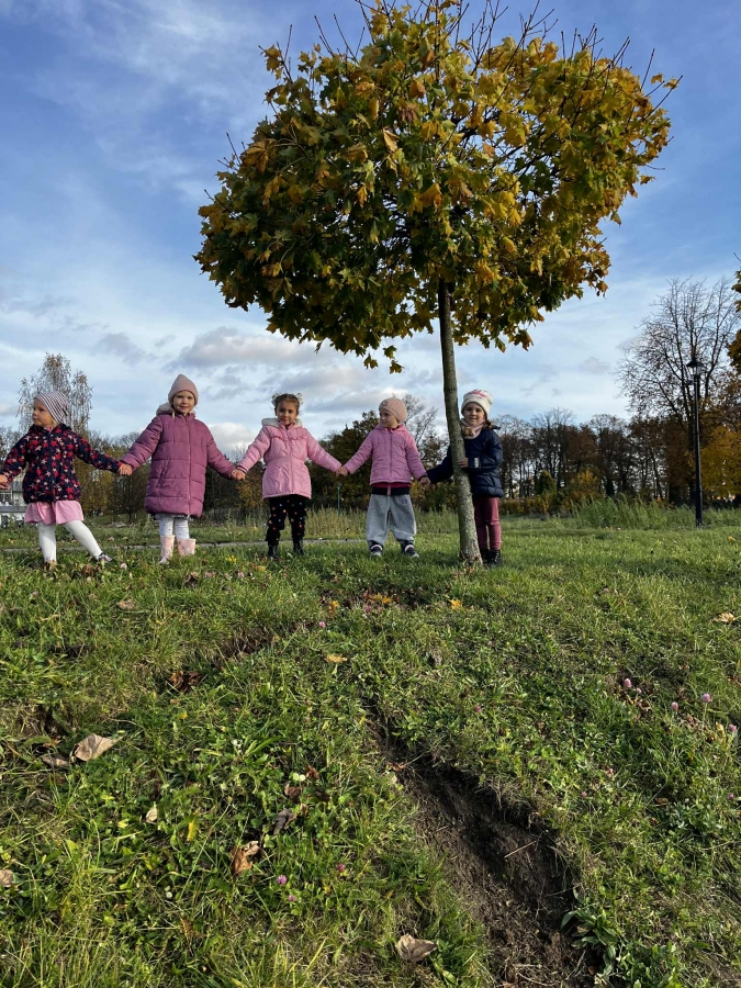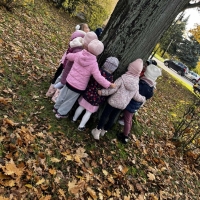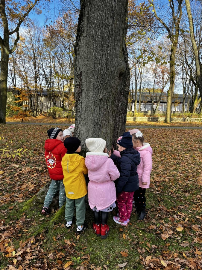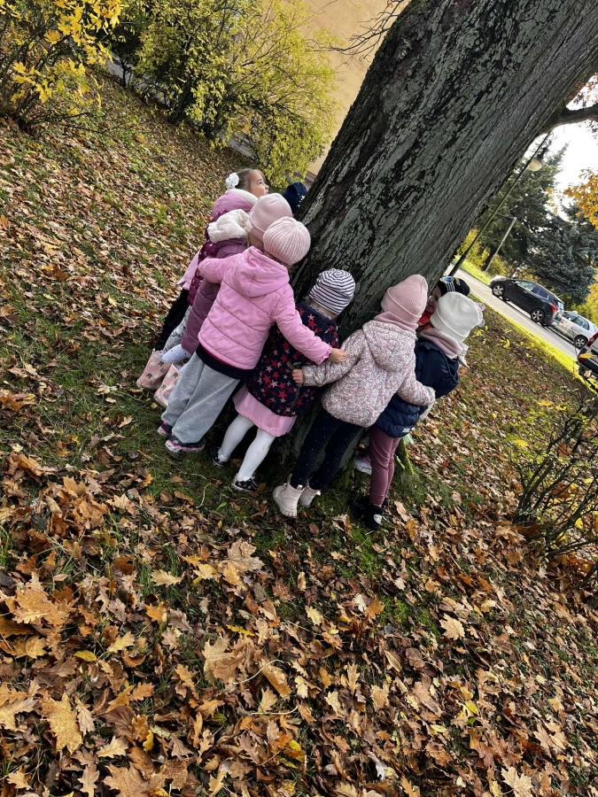Dzieci wybrały się dziś na jesienny spacer, podczas którego podziwiały zmieniającą się przyrodę i kolorowe liście spadające z drzew. Podczas spaceru przedszkolaki miały także okazję do wyjątkowego doświadczenia – przytulenia drzewa, by poczuć jego siłę i bliskość natury. To był pełen radości i spokoju dzień, który pozwolił dzieciom lepiej poznać uroki jesieni i rozwijać wrażliwość na piękno przyrody.