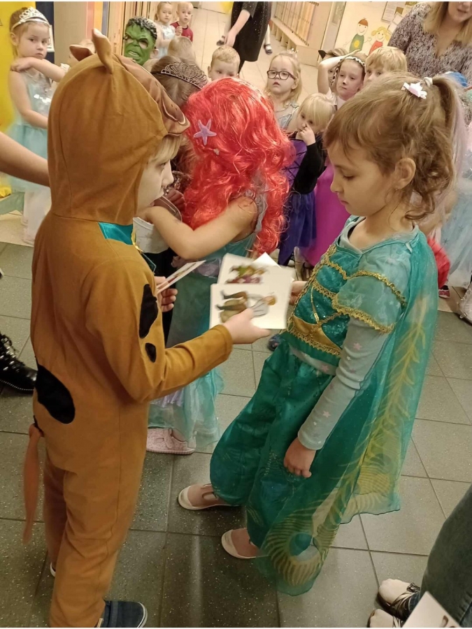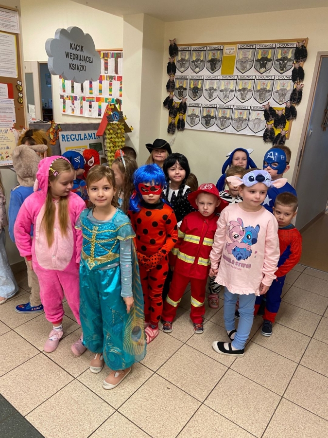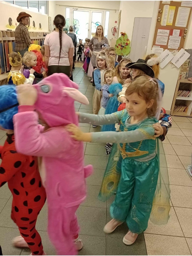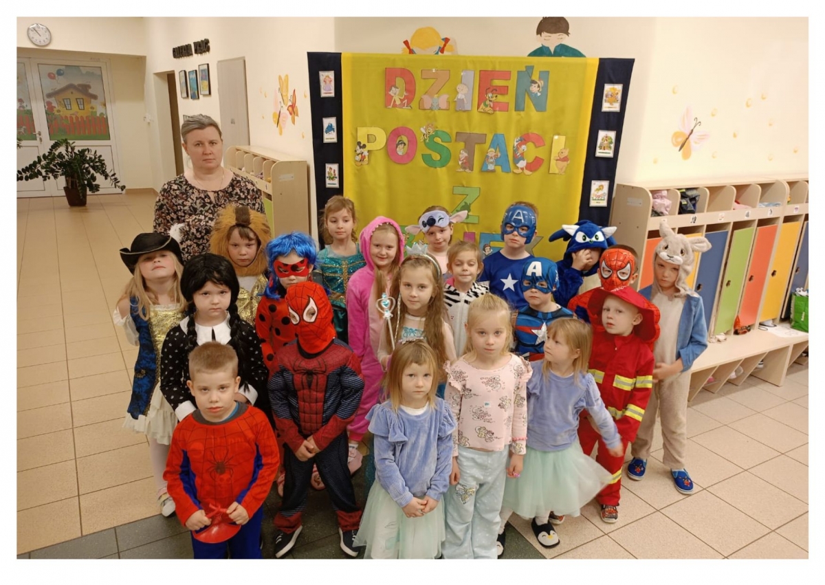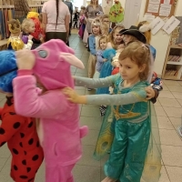 5 listopada to Międzynarodowy Dzień Postaci z Bajek. Wybrana data nie jest przypadkowa – jest to dzień urodzin jednego z największych twórców bajek – Walta Disney’a. Ten dzień jest okazją, aby przypomnieć sobie naszych ulubionych bajkowych bohaterów, którzy są nieodzownym elementem dzieciństwa. Bawią, uczą, pomagają poznać prawdę o świecie i życiu, oswajają dziecięce lęki. Czasem stanowią wzór do naśladowania, a czasem pomagają dzieciom rozpoznać zło Z tej okazji nasze przedszkolaki wyruszyły w podróż do krainy bajek. Był to dzień kolorowy i wesoły! Dzieci przebierały się w bajkowe stroje, uczestniczyły w konkursach i quizach. Bajkowe przedpołudnie dało przedszkolakom wiele optymizmu i radości, a uśmiech na ich twarzach był najlepszym tego dowodem.