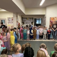 Dzisiaj w naszym przedszkolu obchodziliśmy Dzień Postaci z Bajek – święto pełne uśmiechu, kolorów i dobrej zabawy! Tego dnia dzieci przyszły przebrane za swoich ulubionych bohaterów z bajek. Wspólnie przypominaliśmy sobie znane i lubiane opowieści, rozwiązywaliśmy bajkowe zagadki, śpiewaliśmy piosenki oraz uczestniczyliśmy w wesołych zabawach ruchowych.