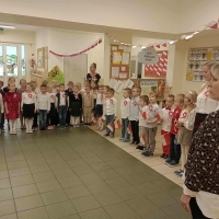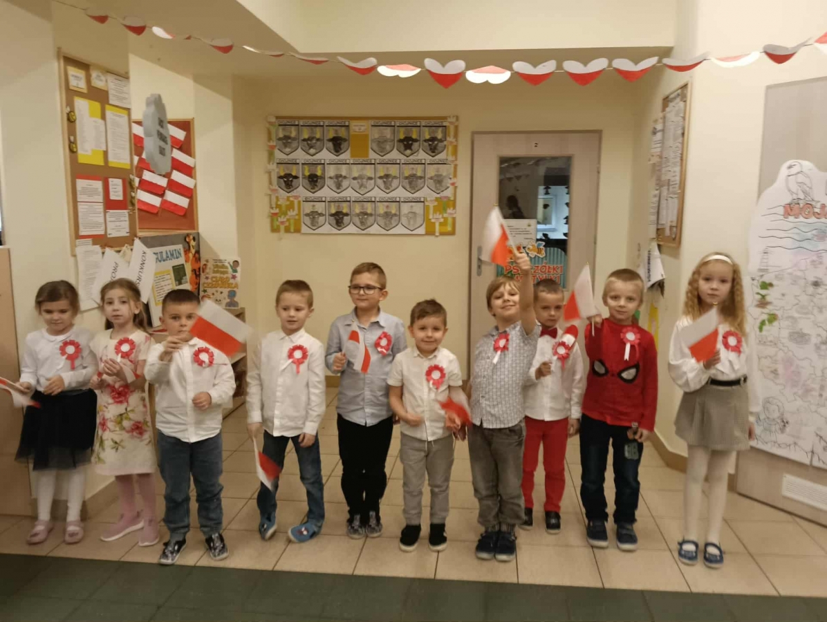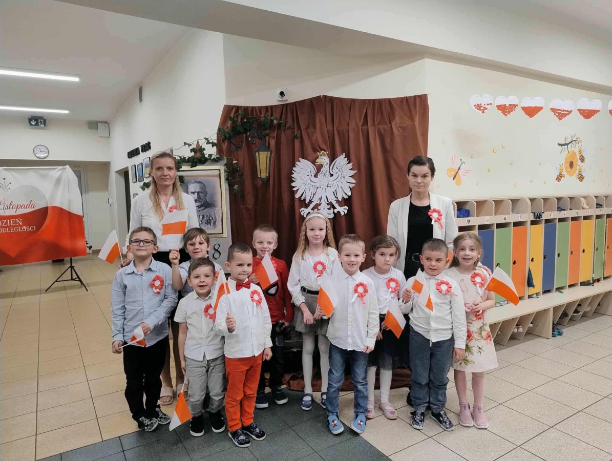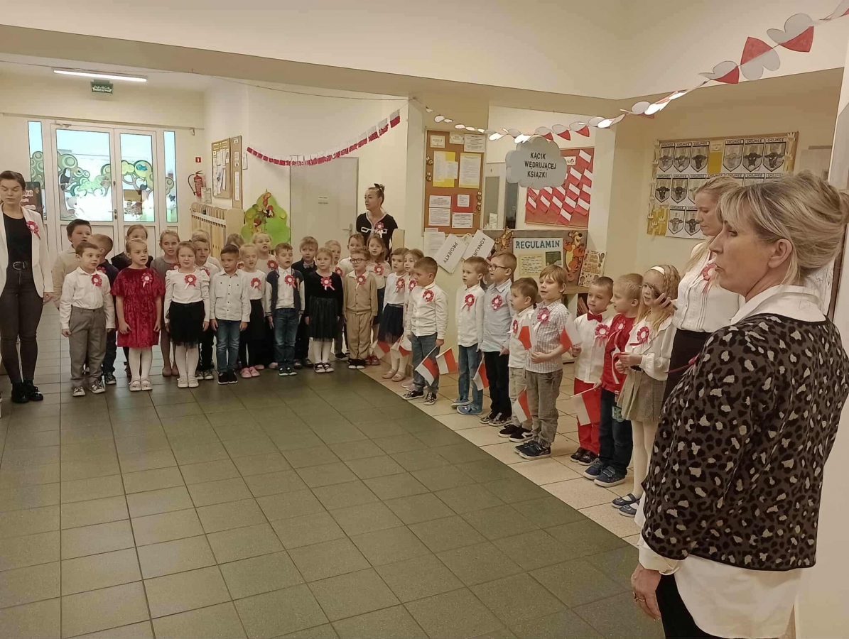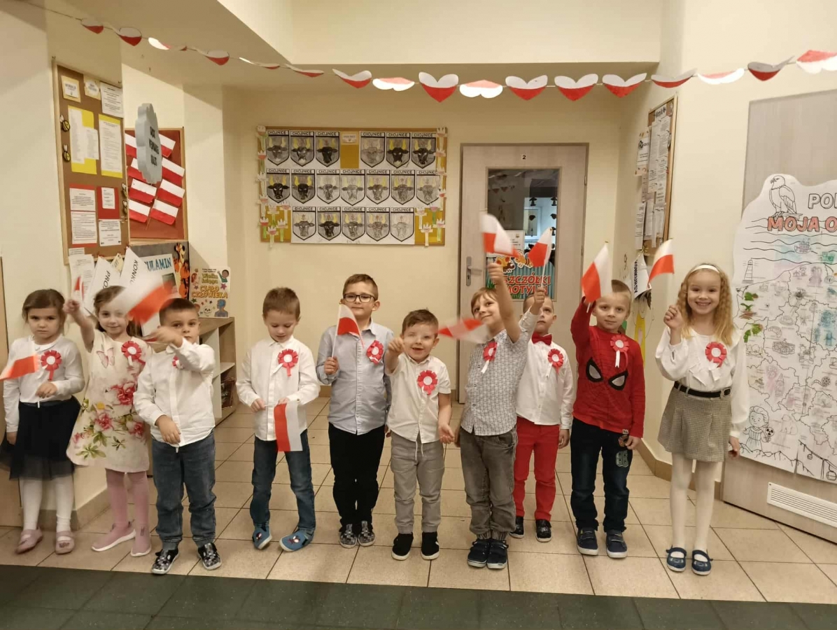 Z okazji zbliżającego się Narodowego Święta Niepodległości w naszym przedszkolu odbyły się uroczyste obchody tego wyjątkowego dnia. O godzinie 11:11 wspólnie odśpiewaliśmy hymn narodowy – „Mazurek Dąbrowskiego”, włączając się w ogólnopolską akcję „Szkoła do hymnu”