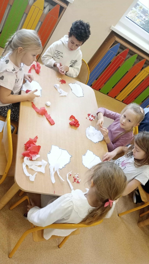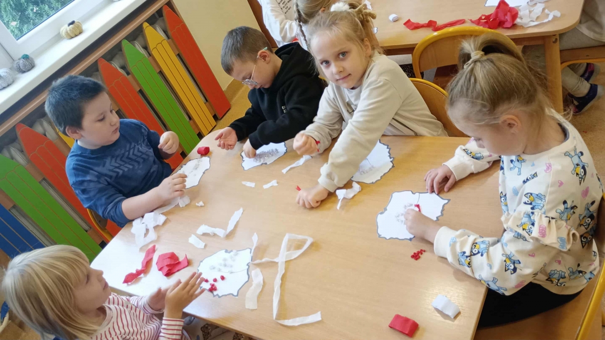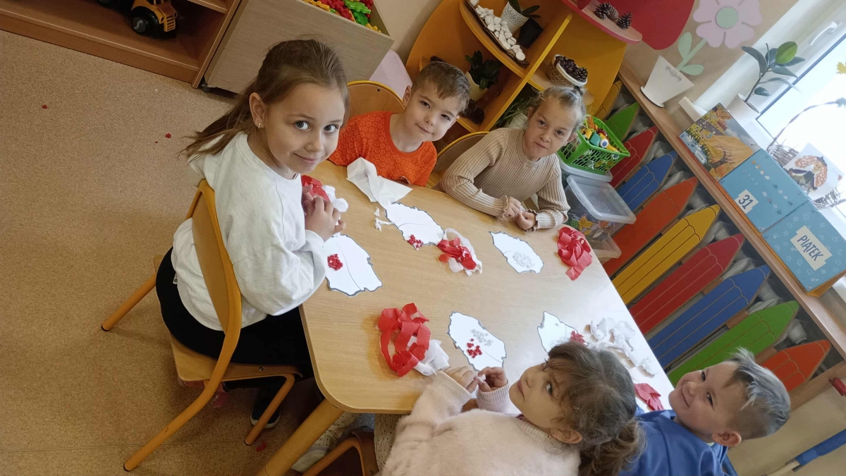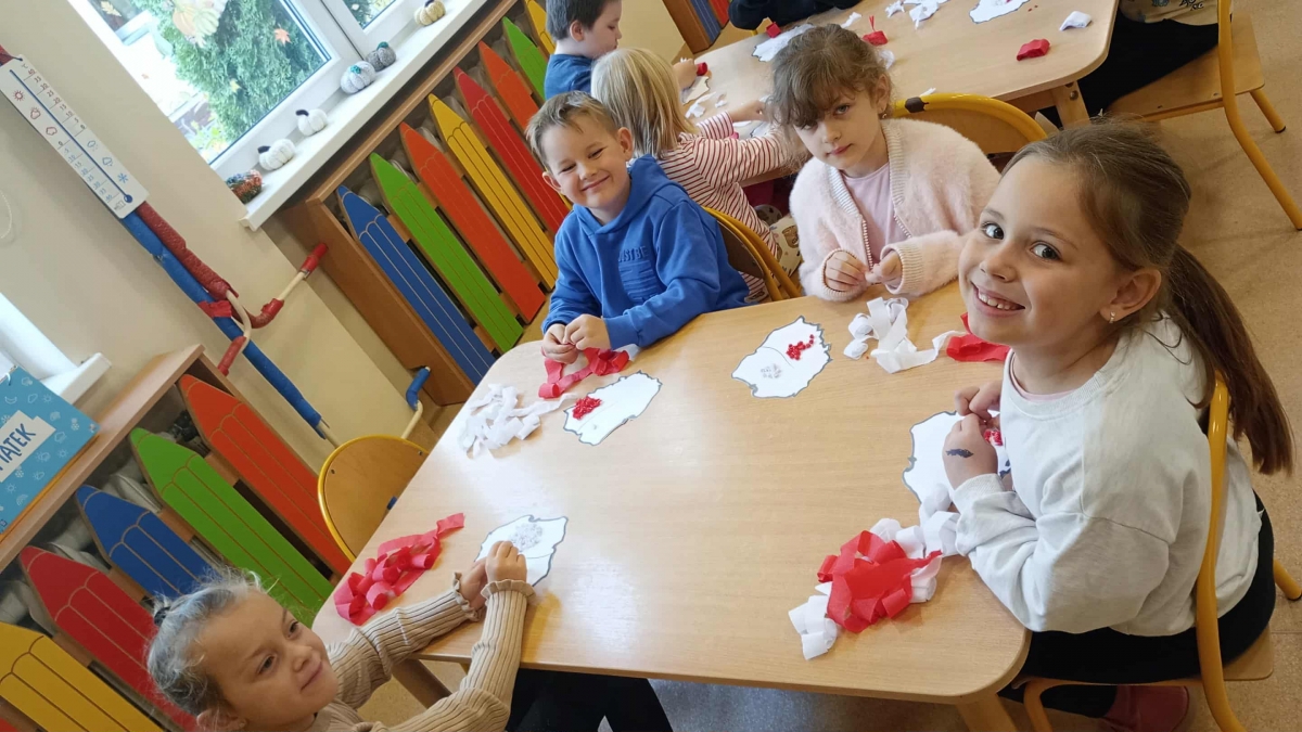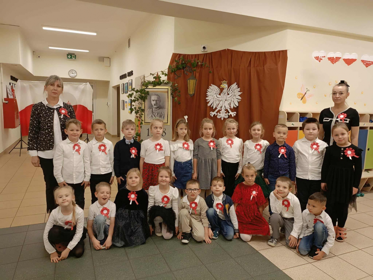 Z okazji zbliżającego się Narodowego Święta Niepodległości w naszym przedszkolu odbyły się uroczyste obchody tego wyjątkowego dnia. O godzinie 11:11 wspólnie odśpiewaliśmy hymn narodowy – „Mazurek Dąbrowskiego”, włączając się w ogólnopolską akcję „Szkoła do hymnu” Dzieci wcześniej z ogromnym zaangażowaniem przygotowały prace plastyczne przedstawiające FLAGĘ POLSKI.