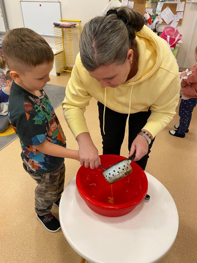 Andrzejki 29 listopada 2025 | Opublikowane w: Pszczółki 2025/2026 W naszym przedszkolu co roku podtrzymujemy tradycje związane z „Andrzejkami”.Temu wydarzeniu towarzyszyły konkursy, zabawy i wróżby andrzejkowe. Wszystko to odbywało się w rytm tańców i śpiewów.