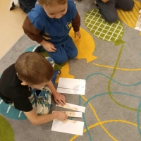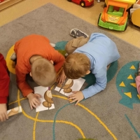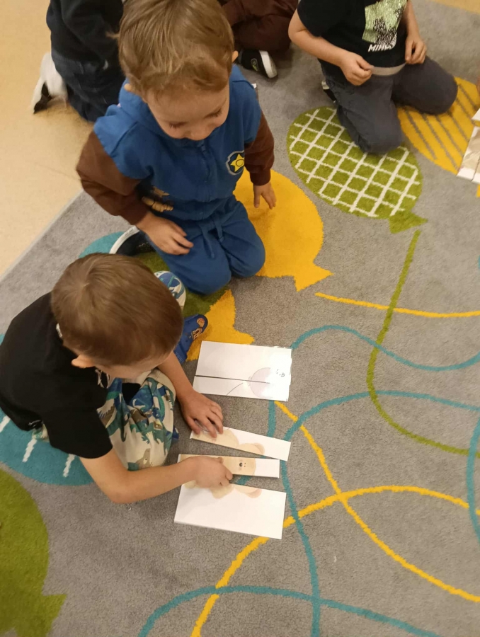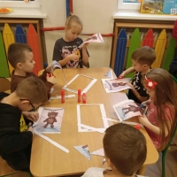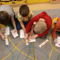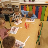 - układały misie od największego do najmniejszego, doskonaląc umiejętność porównywania wielkości,