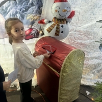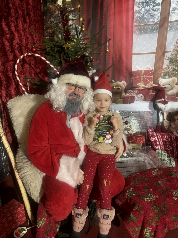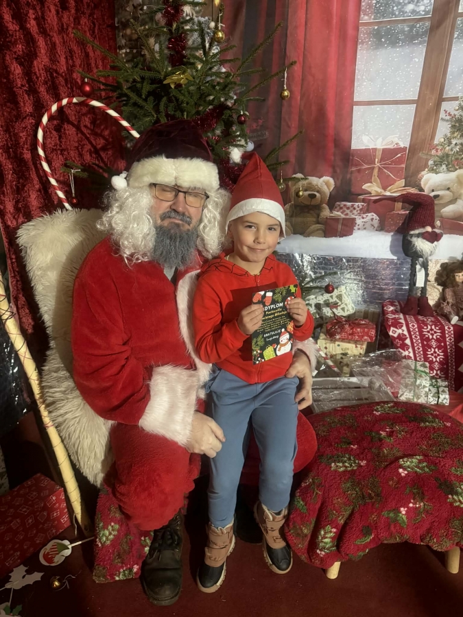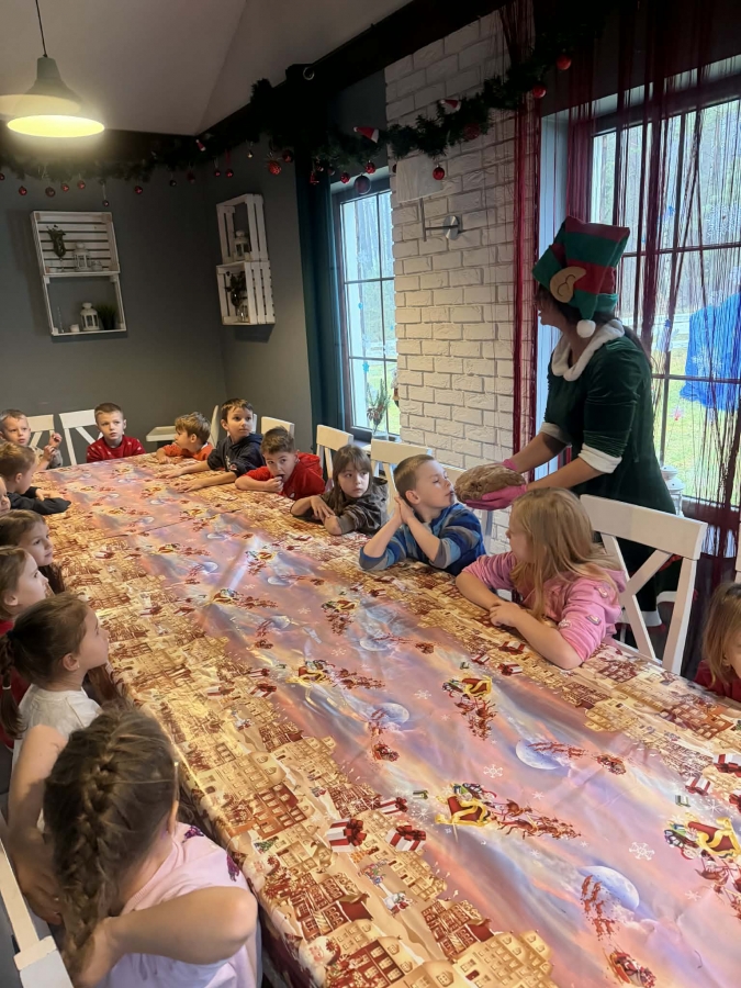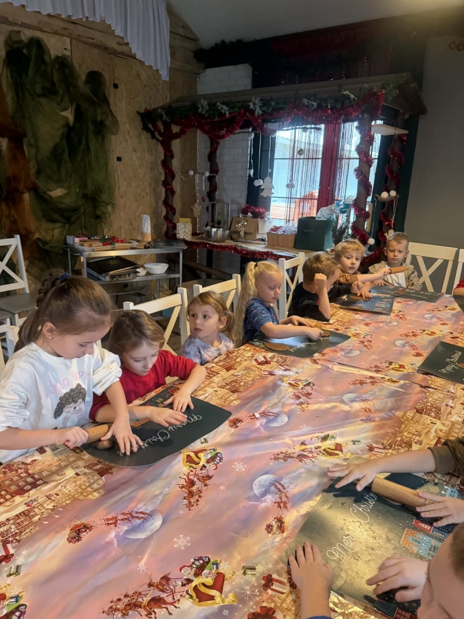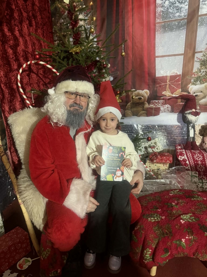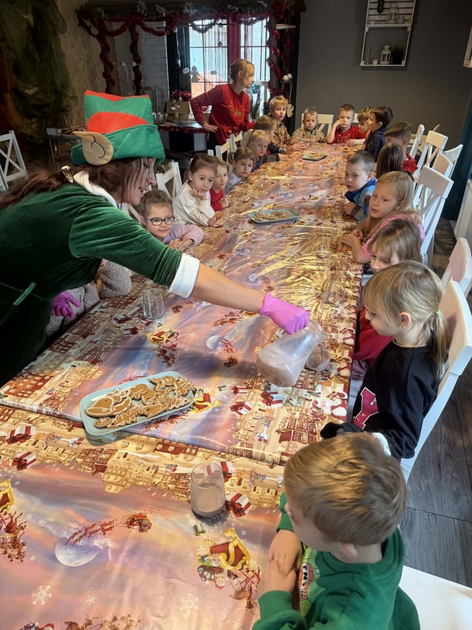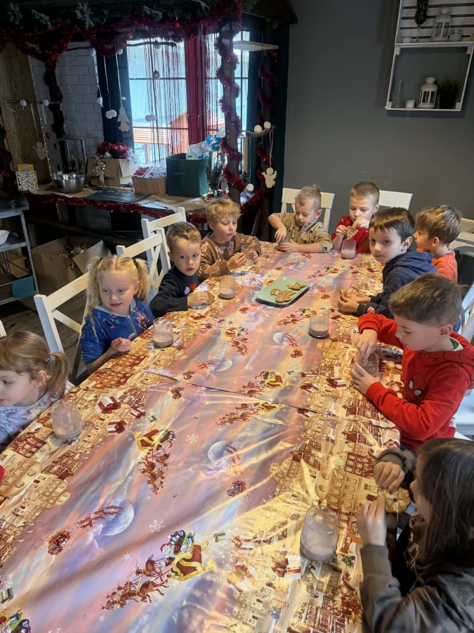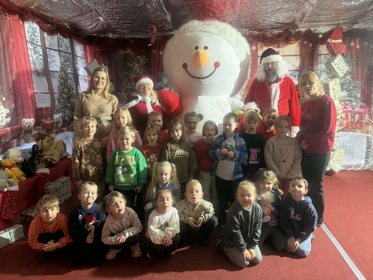 Wycieczka do Wioski Świętego Mikołaja 03 grudnia 2025 | Opublikowane w: Żabki 2025/2026 Nasze przedszkolaki wybrały się ze swoimi Paniami do Wioski Świętego Mikołaja. Ten niezwykły dzień zaczął od przygotowania własnoręcznie pierników, po czym dzieci wypiły pyszne kakao i zjadły słodkie ciasteczka. Następnie narysowały list do Świętego Mikołaja i go wysłały. Na zakończenie tego cudownego pobytu czekała na dzieci wyjątkowa niespodzianka - spotkanie ze Świętym Mikołajem, panią Mikołajową oraz ogrooomnym, wesołym bałwankiem, z którym wspólnie tańczyły. To był dzień pełen radości i świątecznej magii!