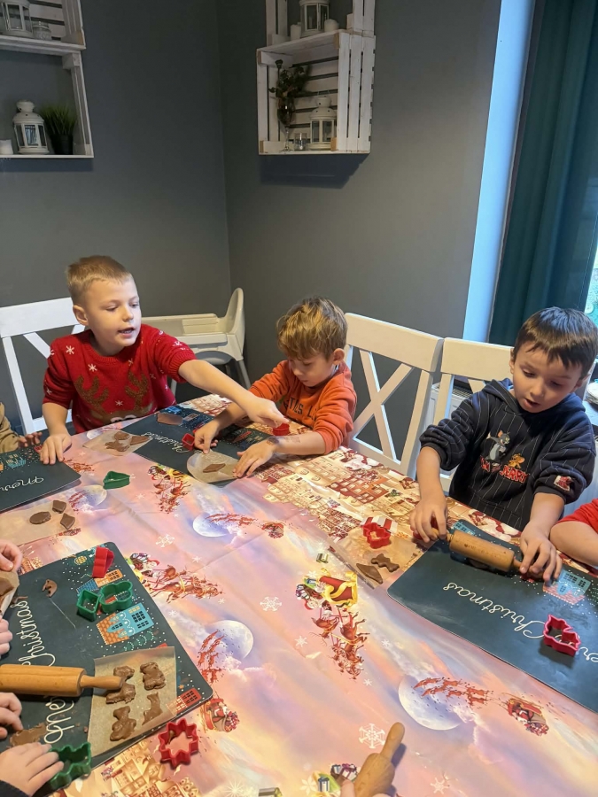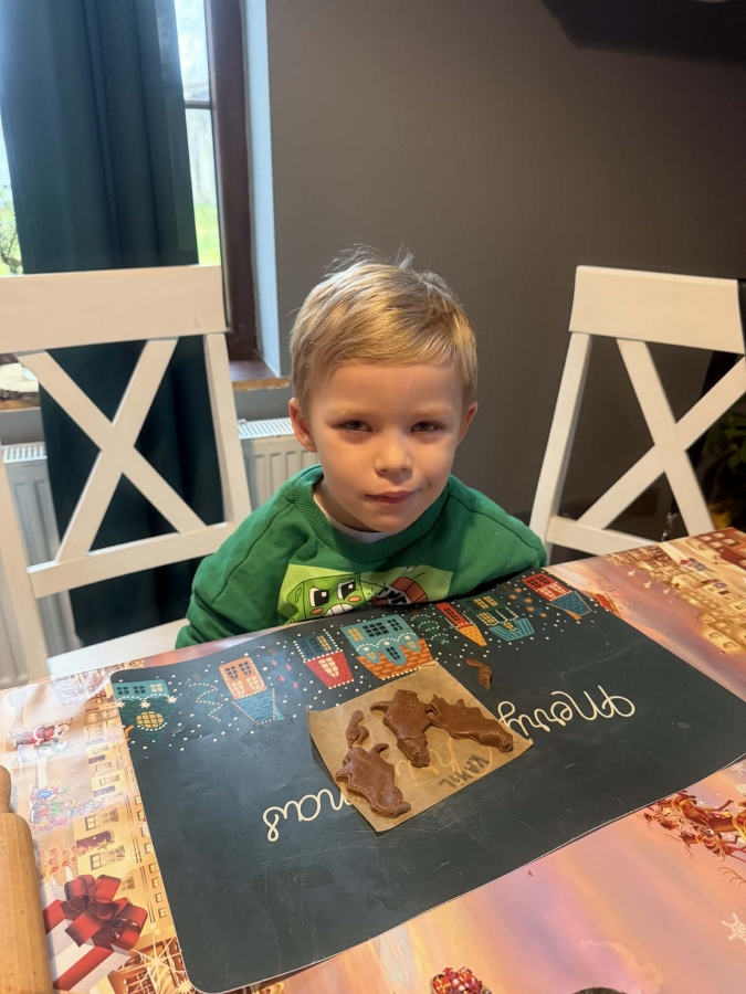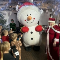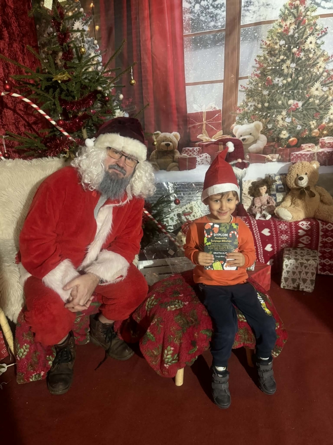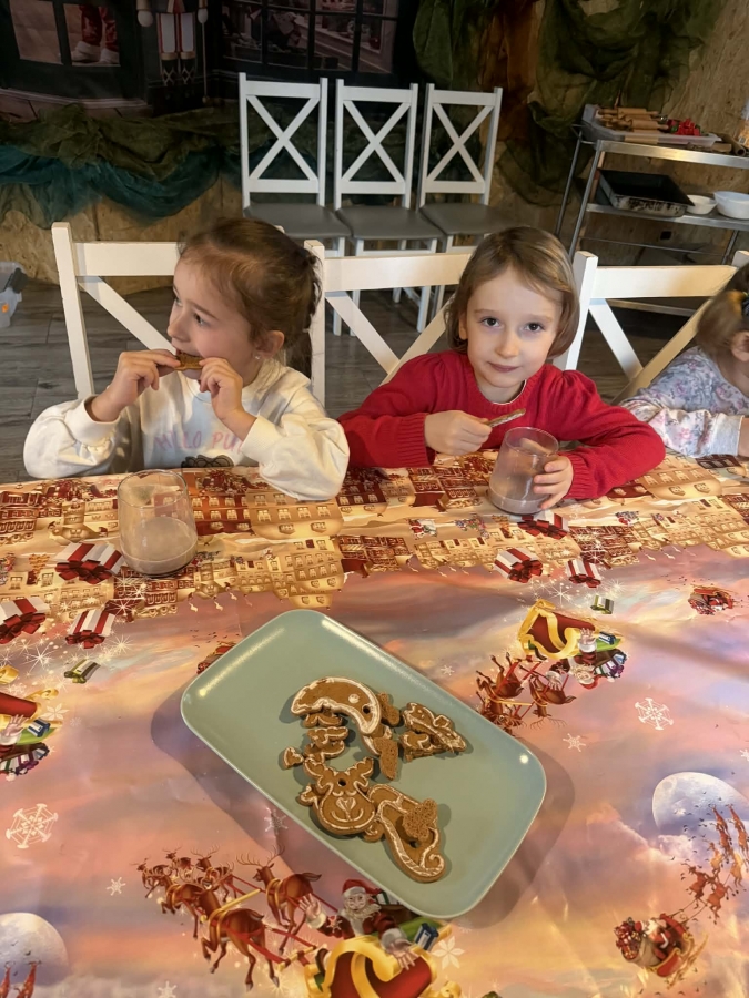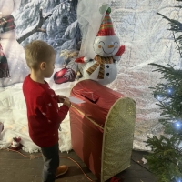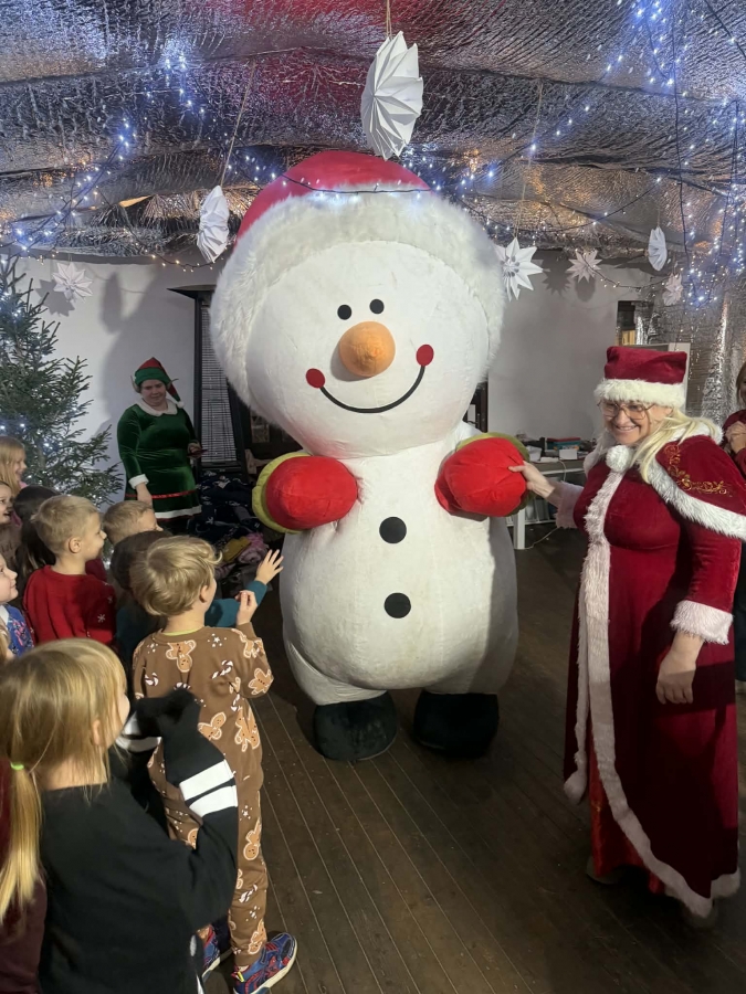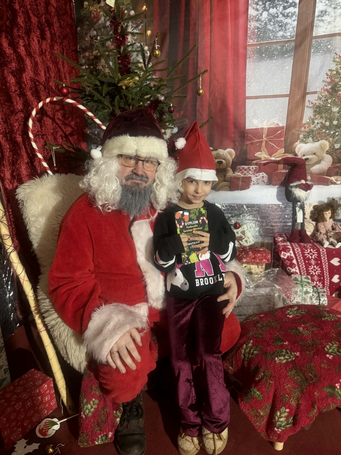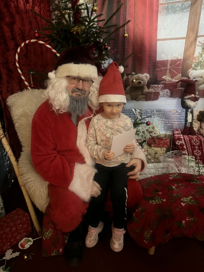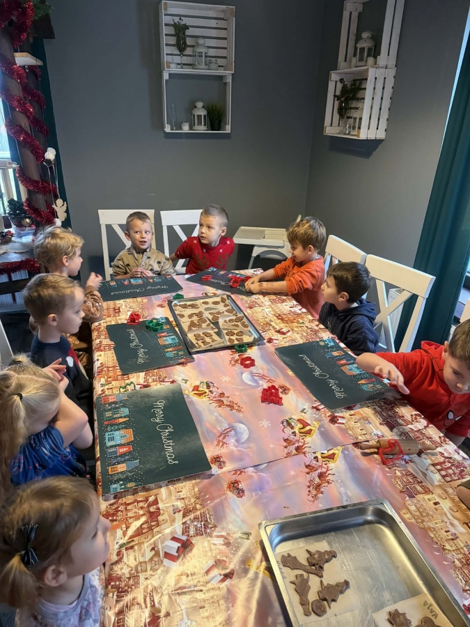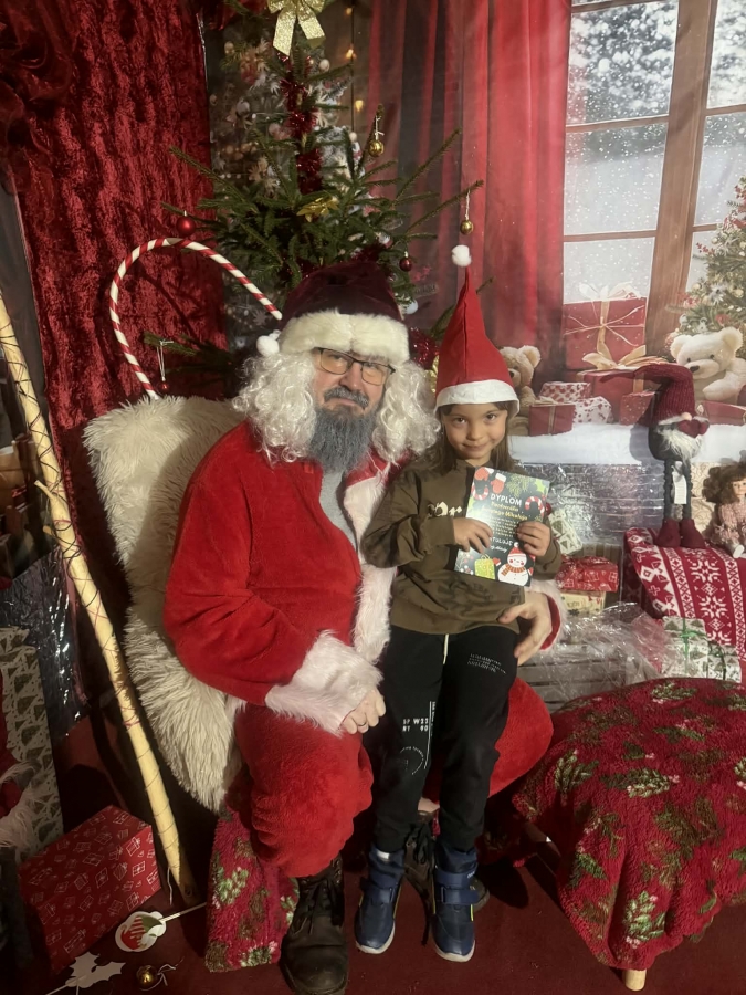 Wycieczka do Wioski Świętego Mikołaja 03 grudnia 2025 | Opublikowane w: Żabki 2025/2026 Nasze przedszkolaki wybrały się ze swoimi Paniami do Wioski Świętego Mikołaja. Ten niezwykły dzień zaczął od przygotowania własnoręcznie pierników, po czym dzieci wypiły pyszne kakao i zjadły słodkie ciasteczka. Następnie narysowały list do Świętego Mikołaja i go wysłały. Na zakończenie tego cudownego pobytu czekała na dzieci wyjątkowa niespodzianka - spotkanie ze Świętym Mikołajem, panią Mikołajową oraz ogrooomnym, wesołym bałwankiem, z którym wspólnie tańczyły. To był dzień pełen radości i świątecznej magii!