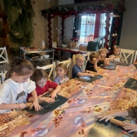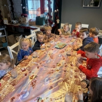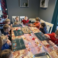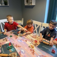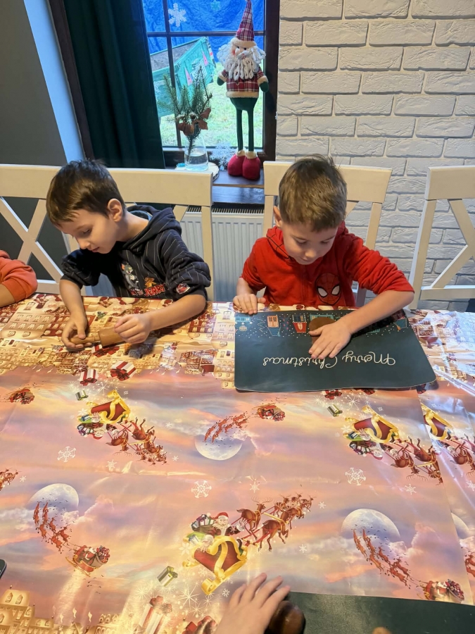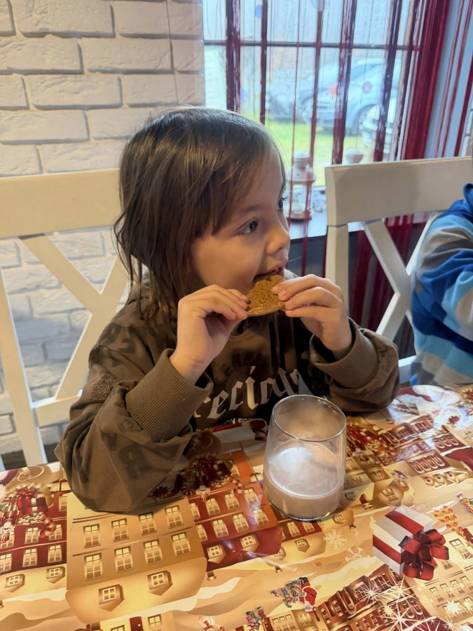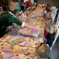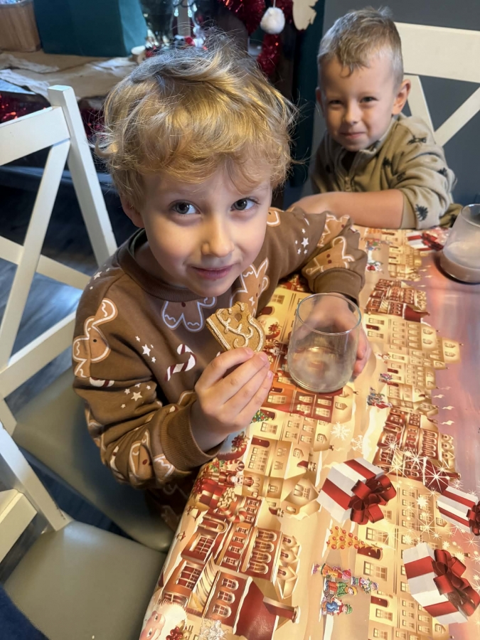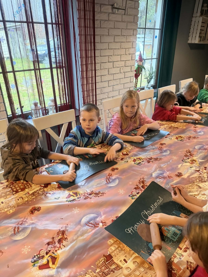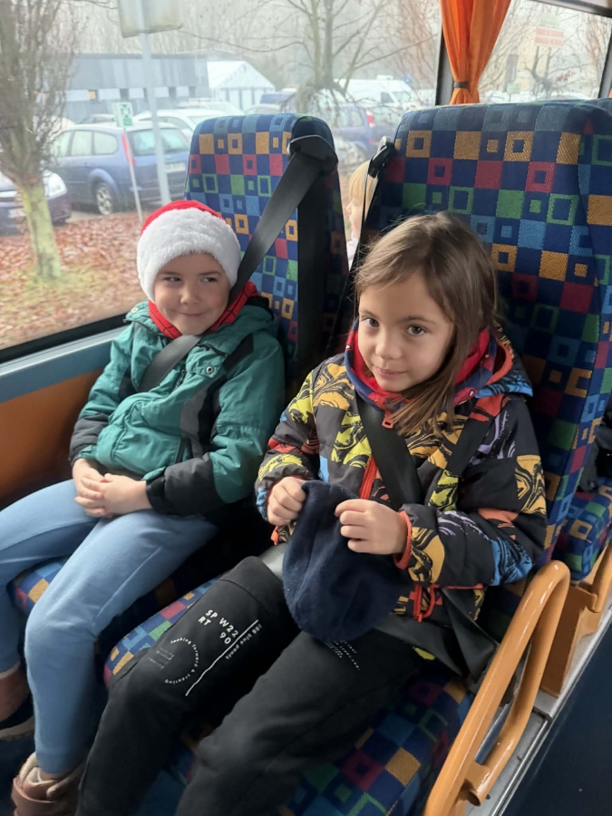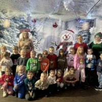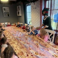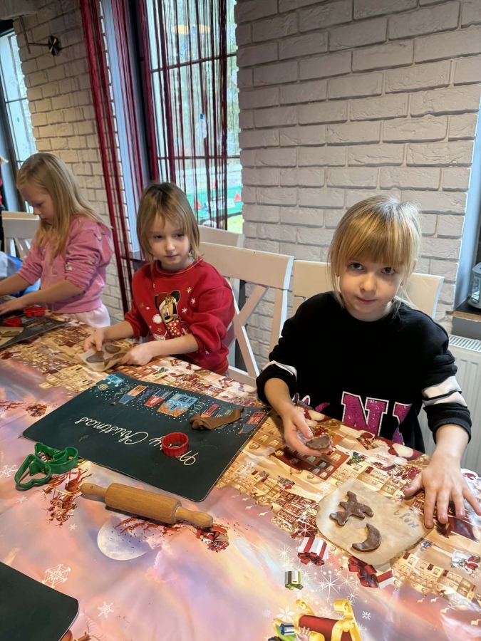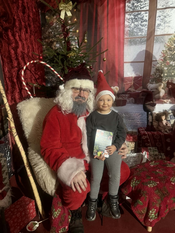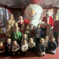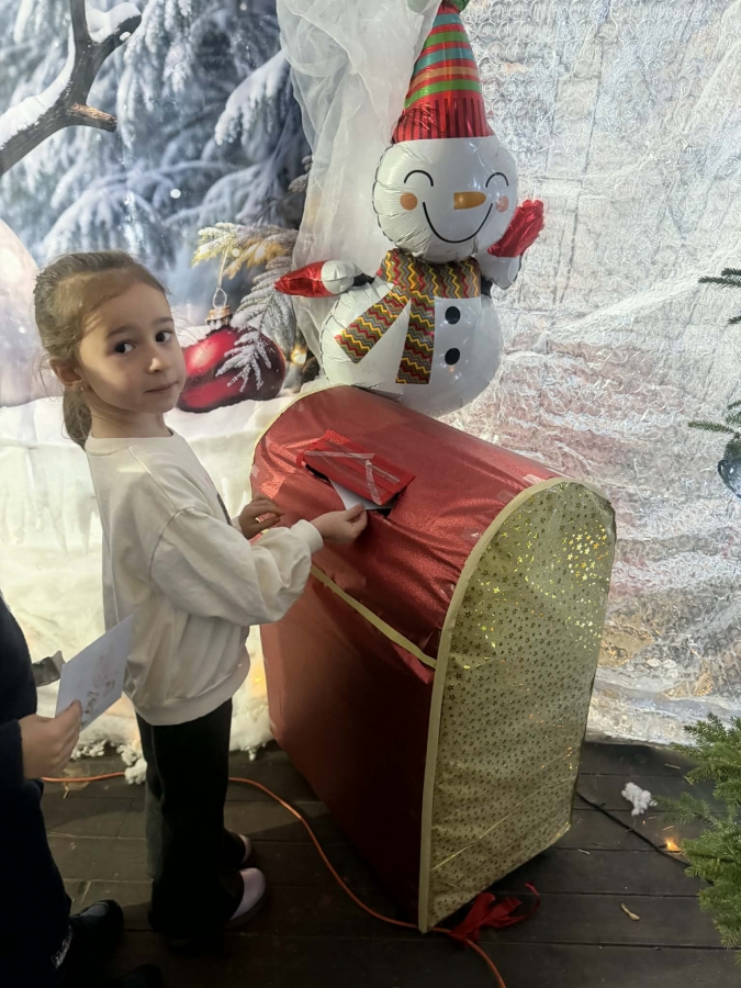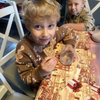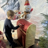 Wycieczka do Wioski Świętego Mikołaja 03 grudnia 2025 | Opublikowane w: Żabki 2025/2026 Nasze przedszkolaki wybrały się ze swoimi Paniami do Wioski Świętego Mikołaja. Ten niezwykły dzień zaczął od przygotowania własnoręcznie pierników, po czym dzieci wypiły pyszne kakao i zjadły słodkie ciasteczka. Następnie narysowały list do Świętego Mikołaja i go wysłały. Na zakończenie tego cudownego pobytu czekała na dzieci wyjątkowa niespodzianka - spotkanie ze Świętym Mikołajem, panią Mikołajową oraz ogrooomnym, wesołym bałwankiem, z którym wspólnie tańczyły. To był dzień pełen radości i świątecznej magii!