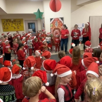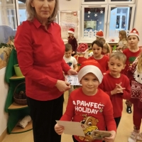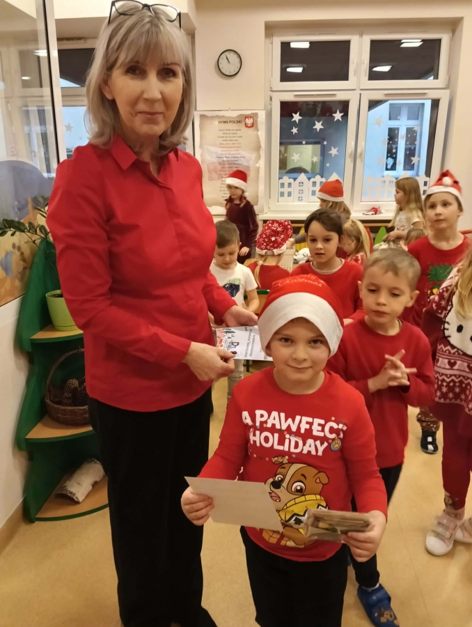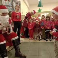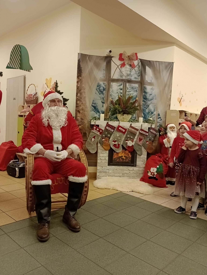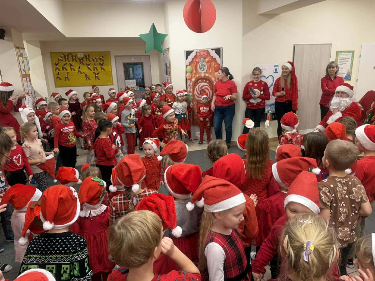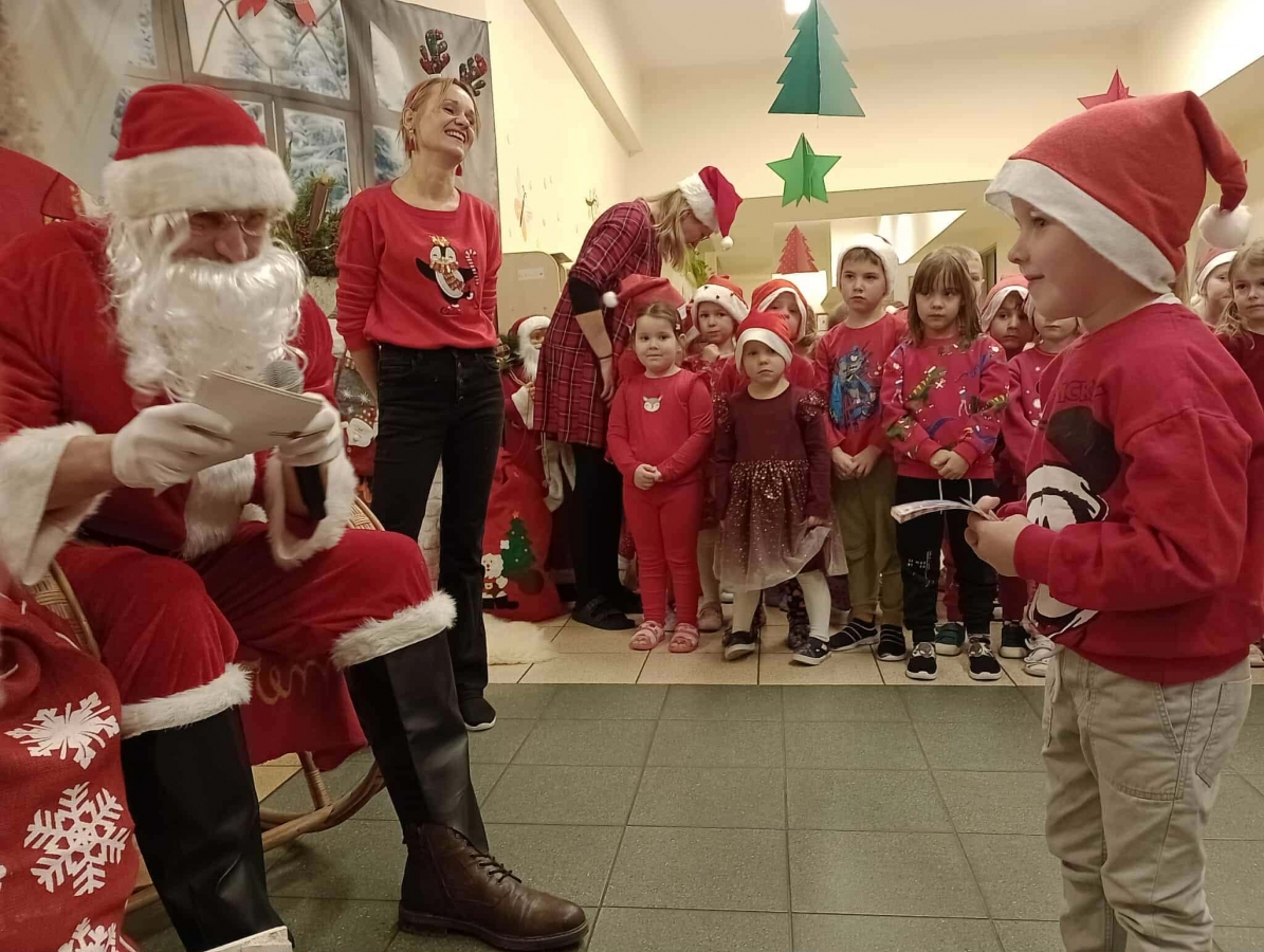 Mikołaj, jak co roku, nie zawiódł oczekiwań i szybko pojawił się wśród dzieci. Przedszkolaki były pełne emocji, zwłaszcza te, które po raz pierwszy witały Mikołaja w przedszkolu. Jego przybycie wywołało na twarzach dzieci szerokie uśmiechy, a wspólna piosenka sprawiła im ogromną radość.