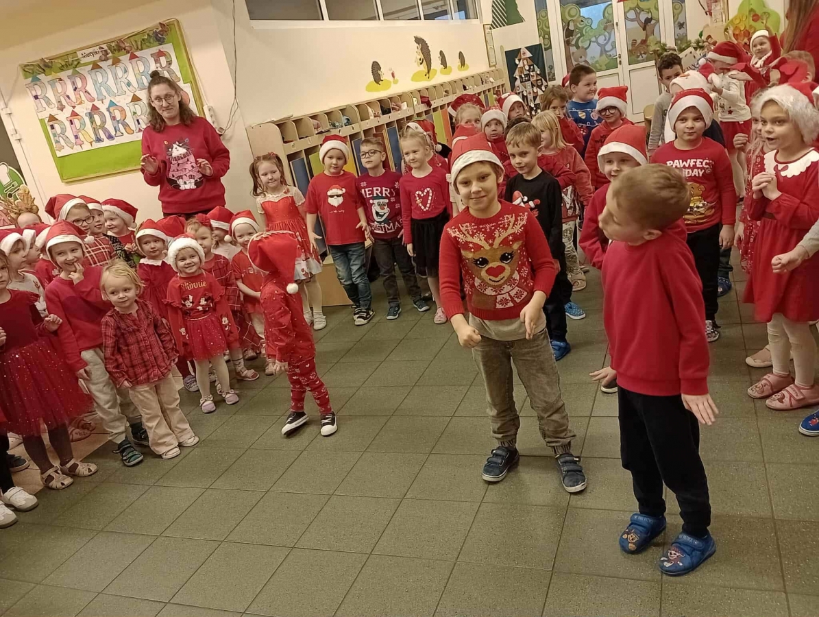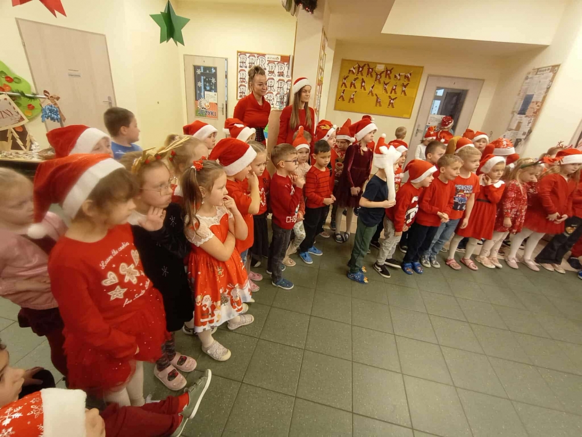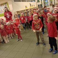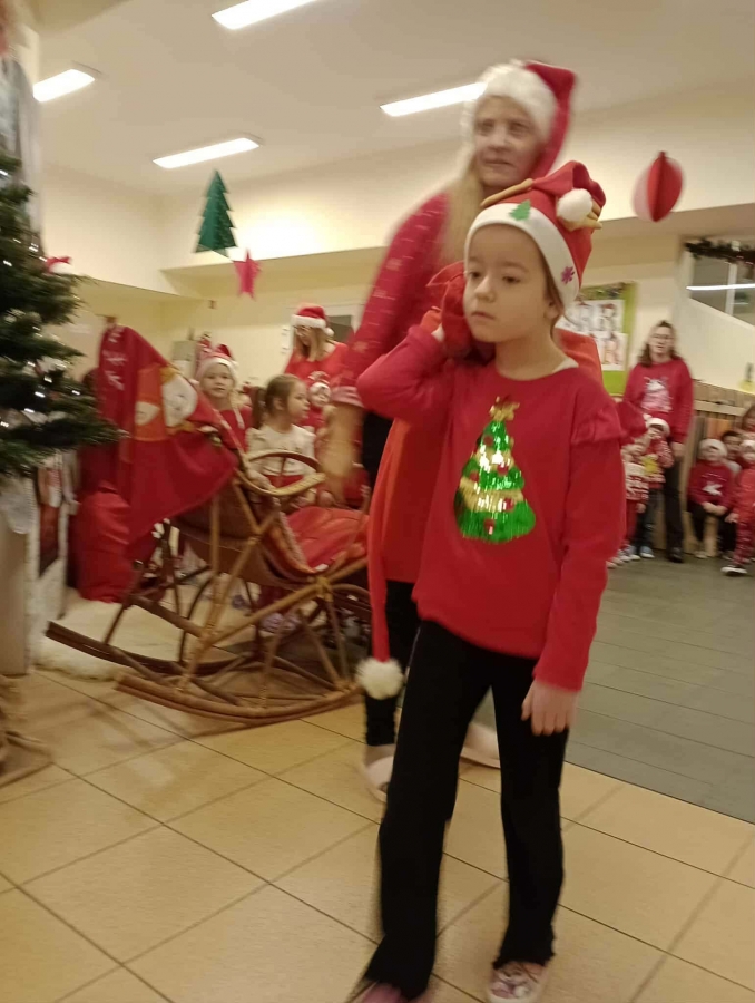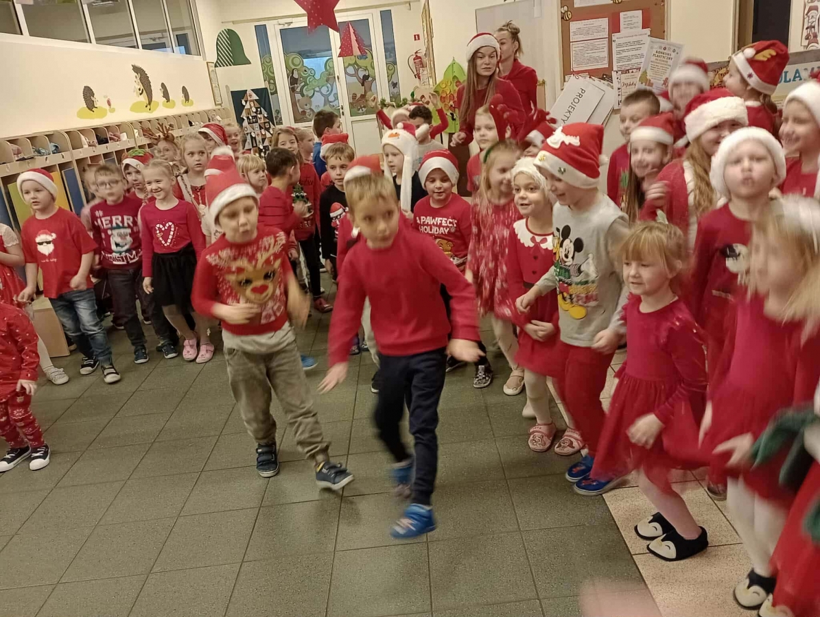 Dzisiejsze świętowanie rozpoczęliśmy w holu wspólną zabawą, konkursami oraz świątecznymi piosenkami.