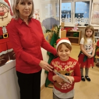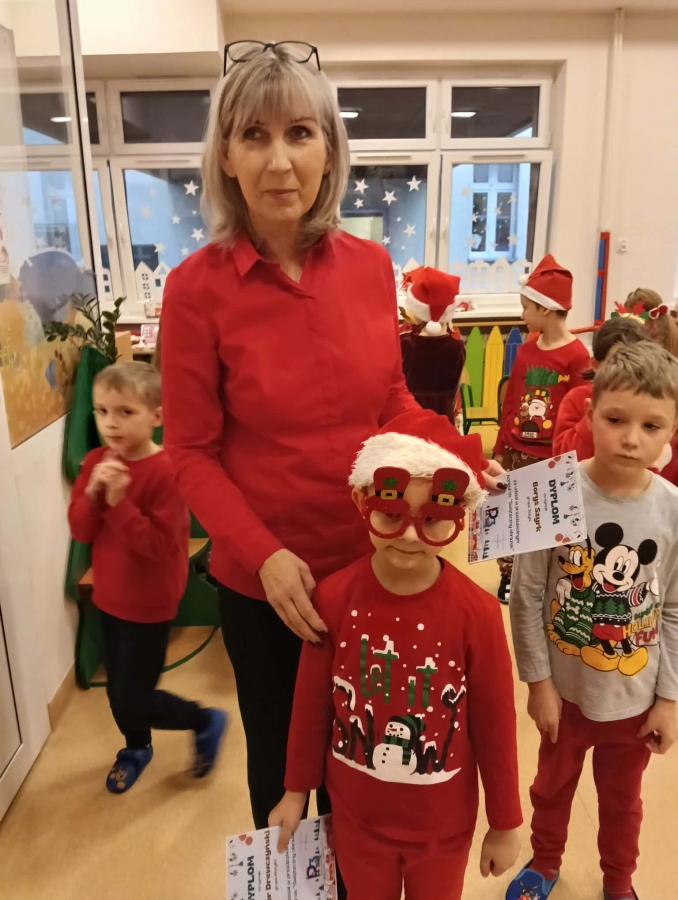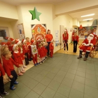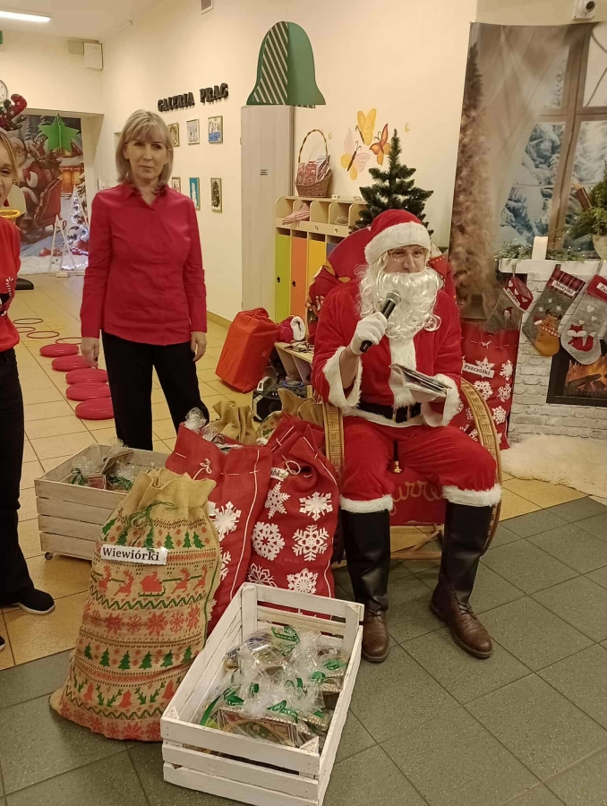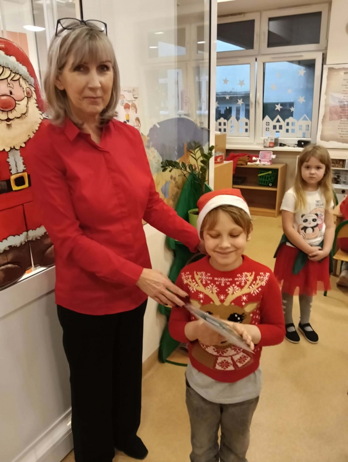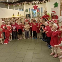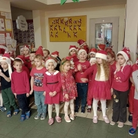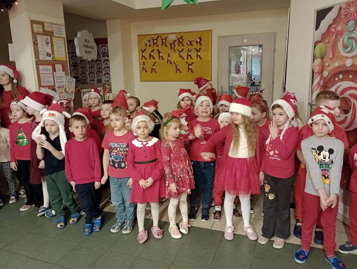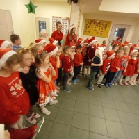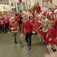 Dzisiejsze świętowanie rozpoczęliśmy w holu wspólną zabawą, konkursami oraz świątecznymi piosenkami.