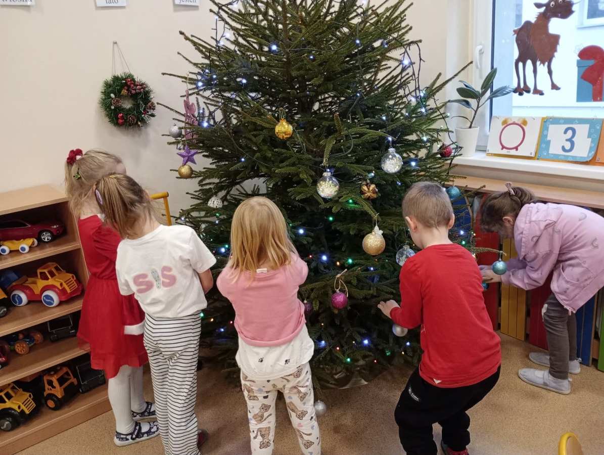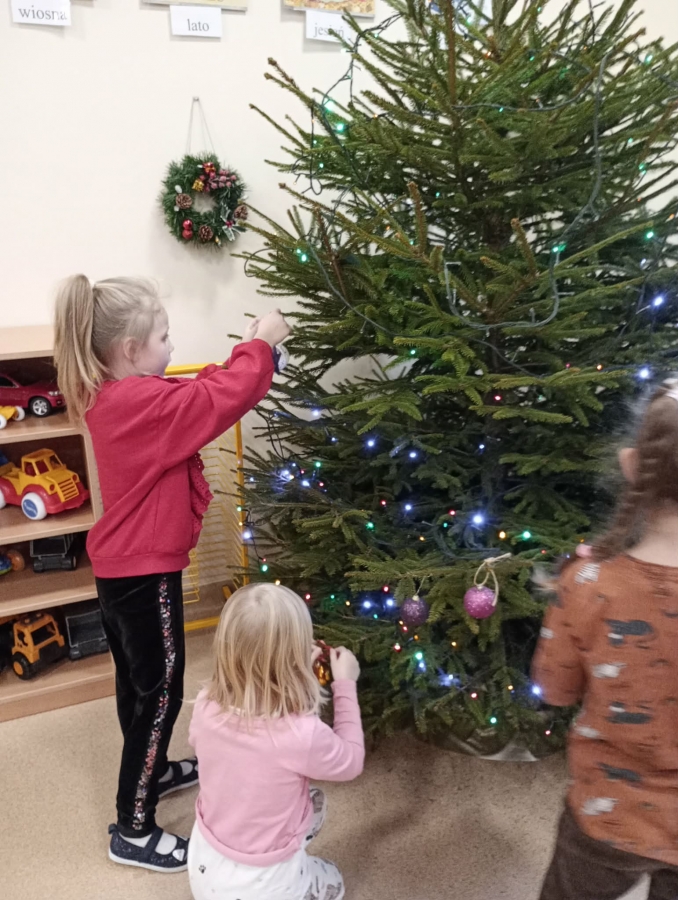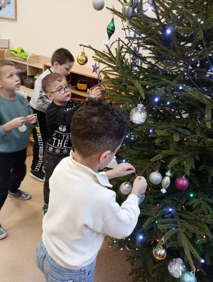 Ubieramy choinkę 01 grudnia 2025 | Opublikowane w: Jeżyki 2025/2026 Dziś przed naszą grupą było fajne zadanie – ubieraliśmy choinkę. Było kolorowo, świątecznie i magicznie.
