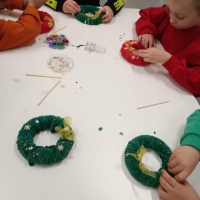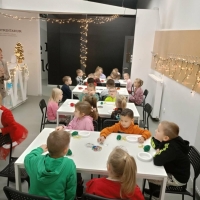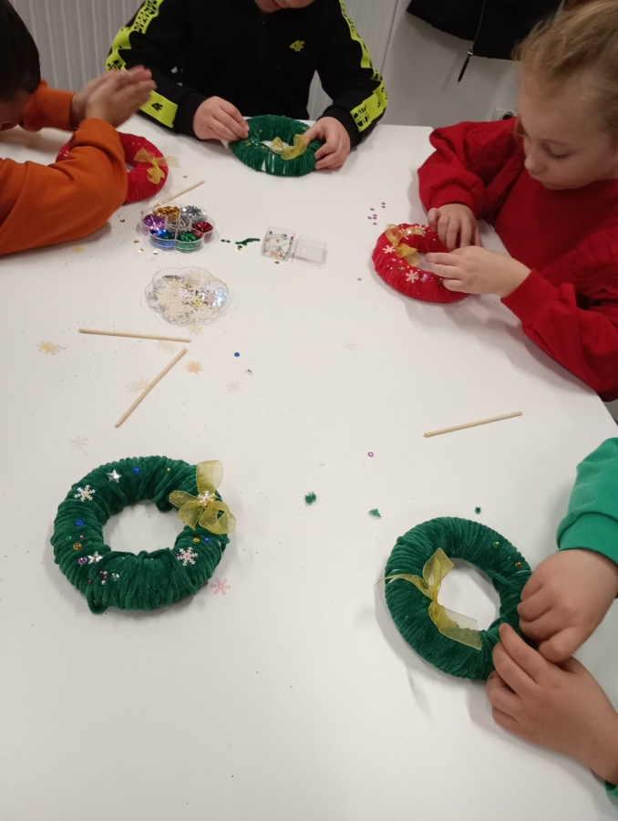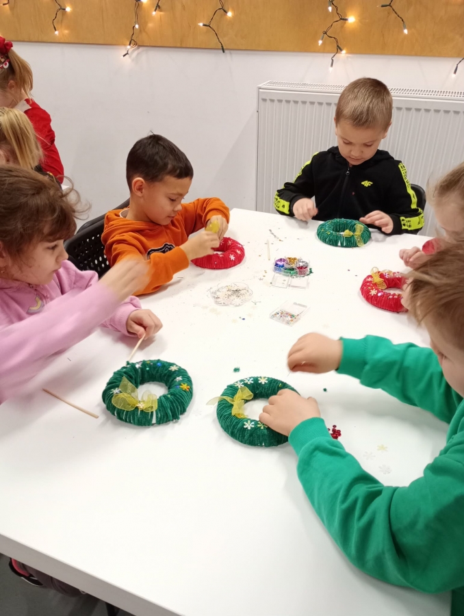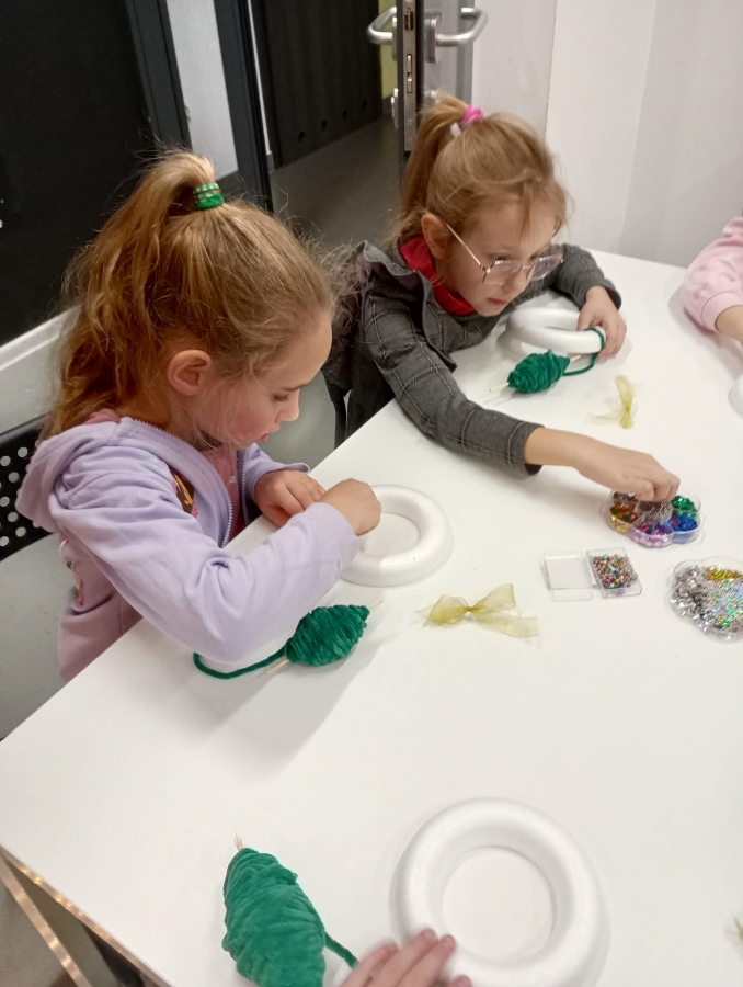 W czwartek 4 grudnia braliśmy udział w Bożonarodzeniowych warsztatach w Eksperymentarium. Podczas zajęć wykonywaliśmy piękne, kreatywne stroiki, korzystając z różnorodnych materiałów – cekinów, gwiazdek oraz brokatu. Na zakończenie czekała na nas słodka niespodzianka od Mikołaja – przepyszne pierniki. To był naprawdę cudowny i pełen magii dzień!