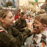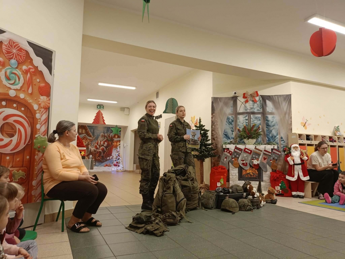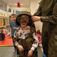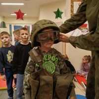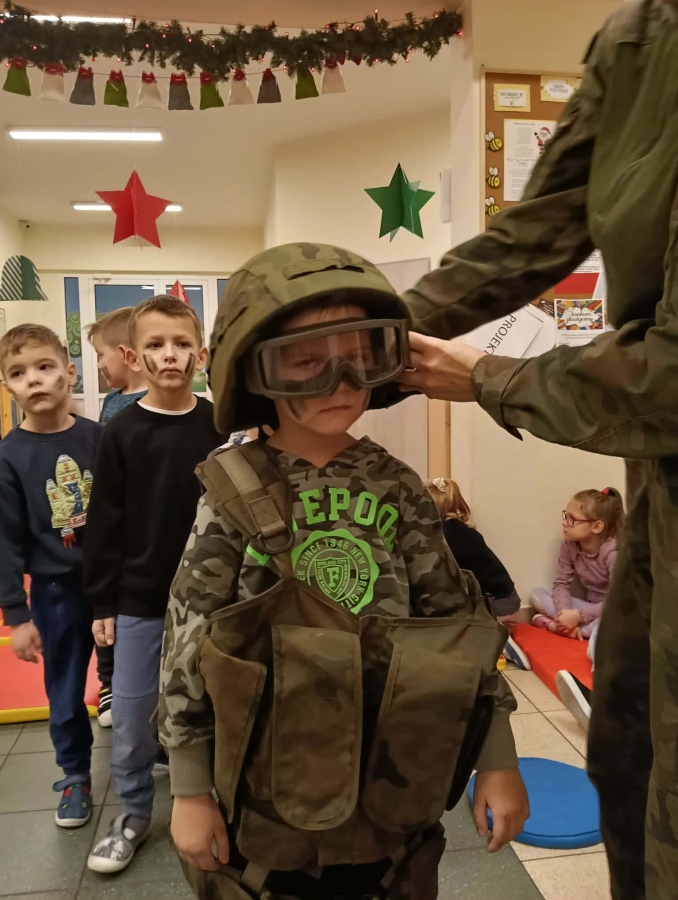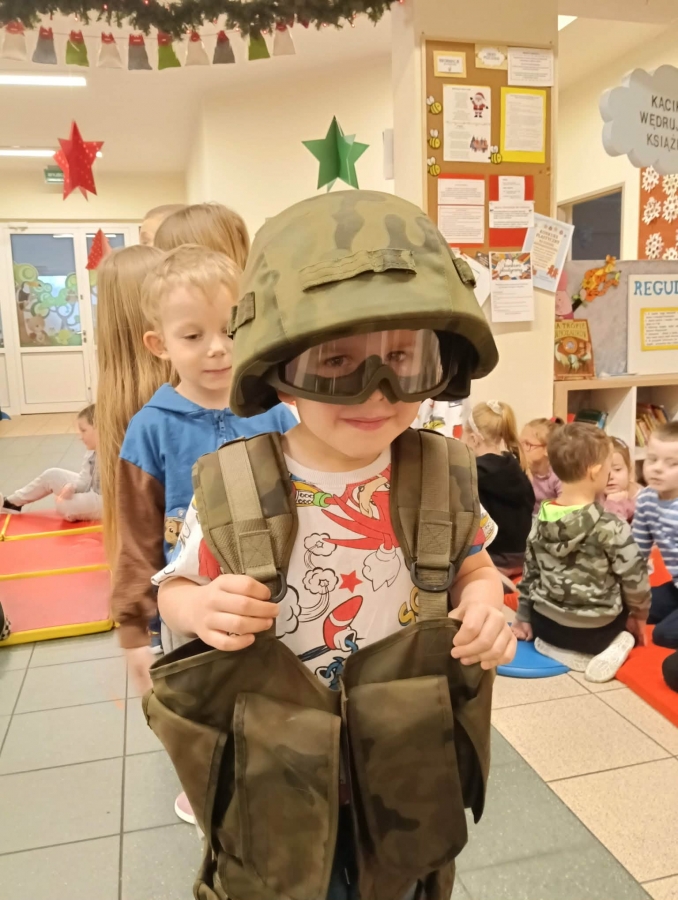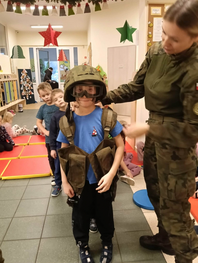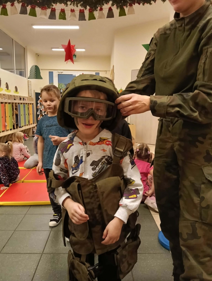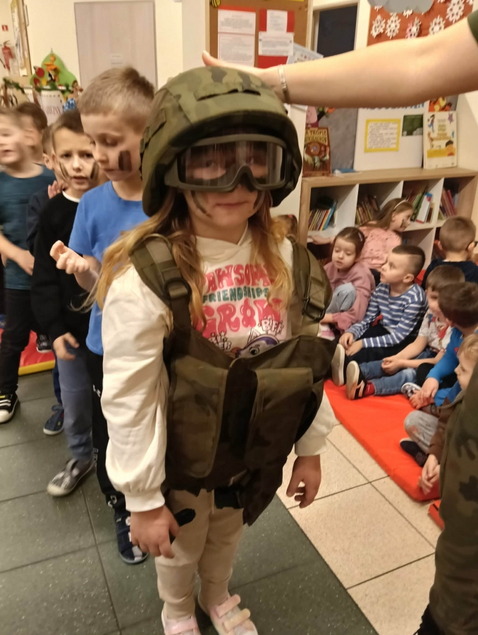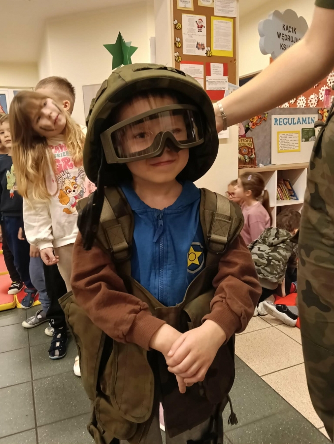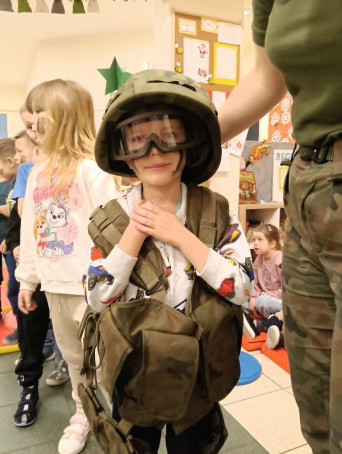 W naszym przedszkolu odbyło się wyjątkowe wydarzenie – odwiedzili nas żołnierze z 34. Batalionu Radiotechnicznego z Nieżychowic. Duże zainteresowanie wśród dzieci wzbudził pokaz wyposażenia. Przedszkolaki mogły przymierzyć hełm, kamizelkę i plecak oraz obejrzeć inne elementy sprzętu wykorzystywanego podczas misji i ćwiczeń. Z zaciekawieniem słuchały opowieści o tym, na czym polega służba wojskowa i jak ważne jest dbanie o bezpieczeństwo.