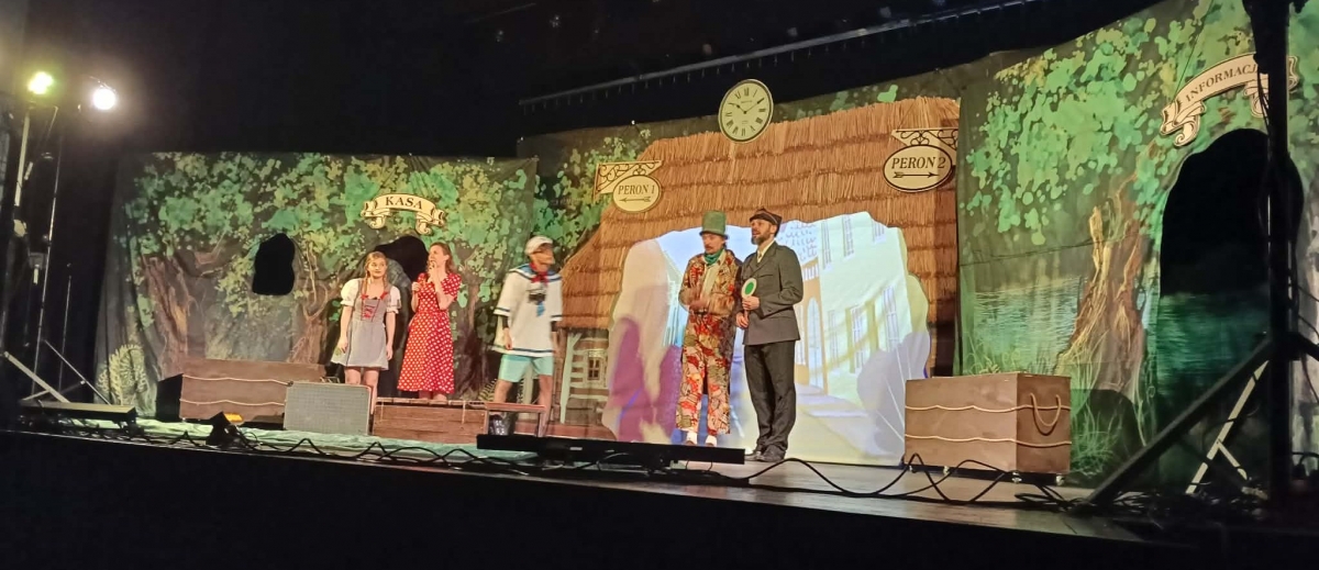 Głównymi bohaterami była rodzinka Tralalińskich, która wybierała się na wakacje lecz spóźniła się na pociąg. Pojawił się przemiły pan konduktor, który zapewnił o kolejnym przyjeździe pociągu, jednocześnie był narratorem całego przedstawienia. „LOKOMOTYWA” zabrała wszystkich w podróż do wierszy Juliana Tuwima takich jak: „O Panu Tralalińskim”, „Dyzio Marzyciel”, „Okulary”, „Słoń Trąbalski”, „Abecadło’’. Wiele śmiechu wśród wszystkich widzów przyniosła „Rzepka”. To była pełna humoru i wiedzy o świecie i ludziach lekcja poezji Juliana Tuwima.