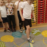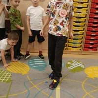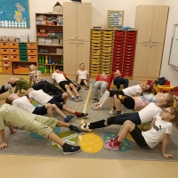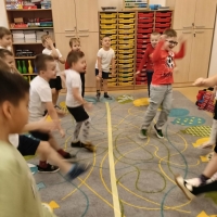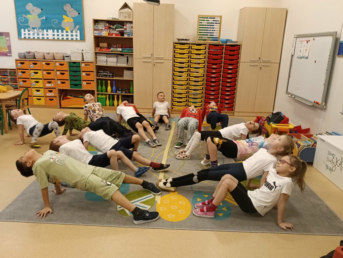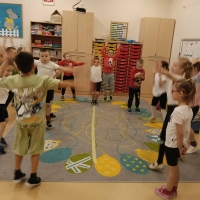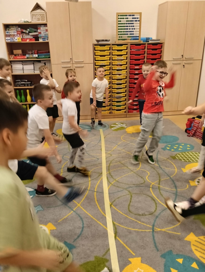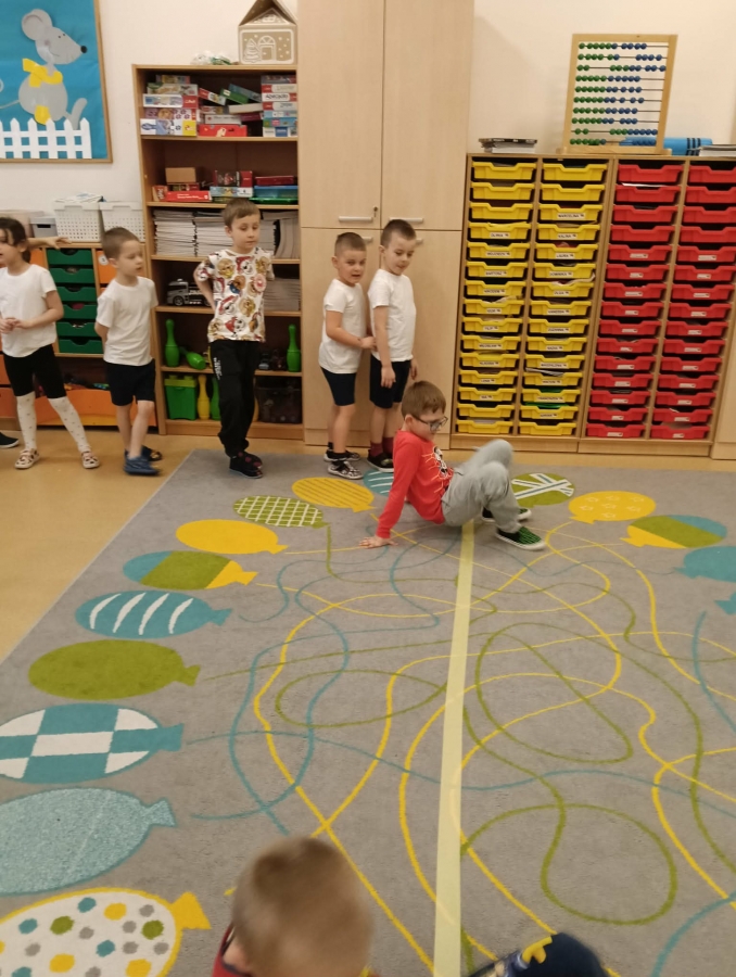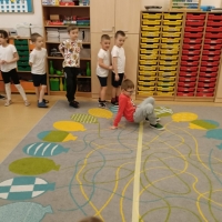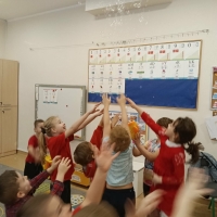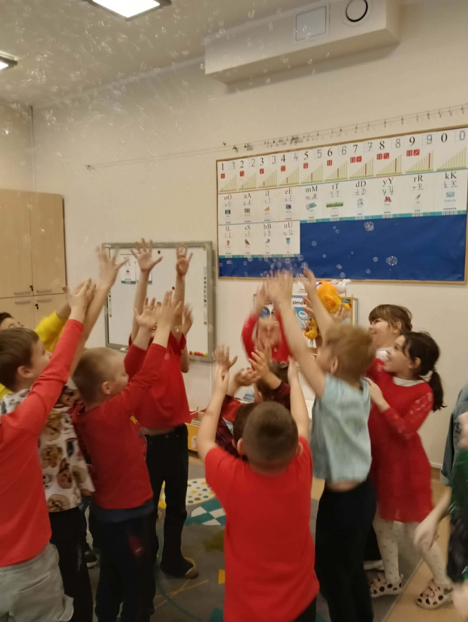Dzieci brały udział w wspólnych zabawach ruchowych oraz zabawie w łapanie baniek mydlanych, która dostarczyła wszystkim wiele śmiechu.