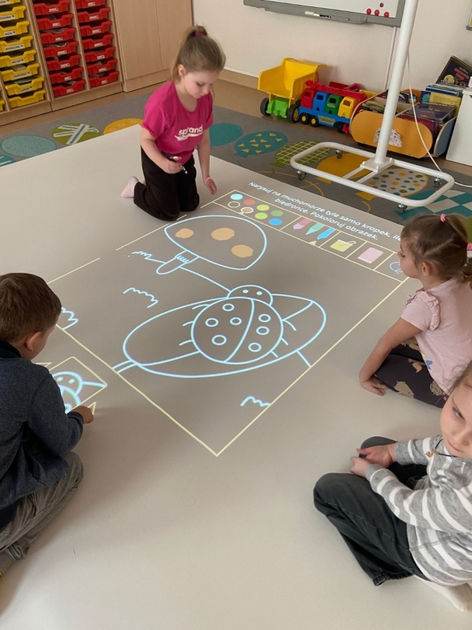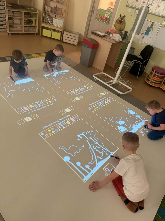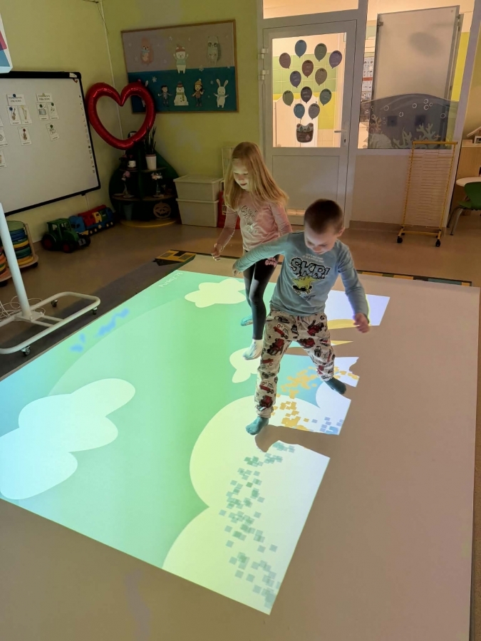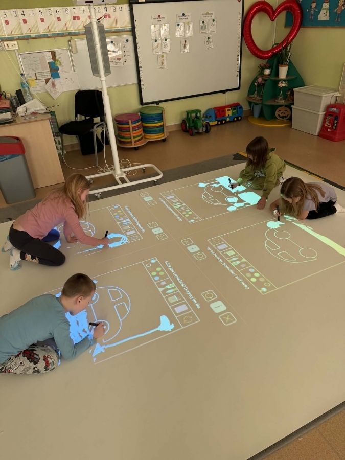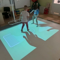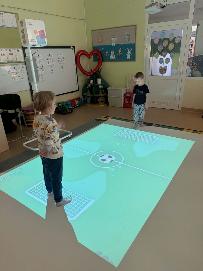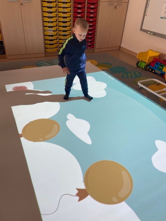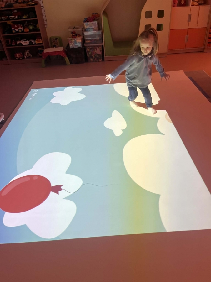 Jest to nowoczesne narzędzie edukacyjne, które angażuje dzieci do ruchu, nauki i zabawy poprzez projekcje reagujące na dotyk (ruch, piłki, pisaki).