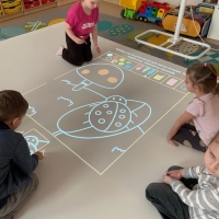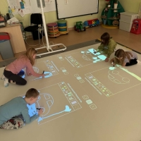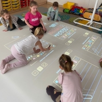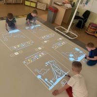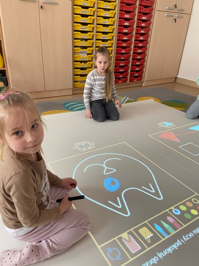 W ostatnim czasie rozpoczęliśmy w przedszkolu przygodę z podłogą interaktywną SmartFloor, którą udało nam się zakupic dzięki Rządowemu Programowi "Cyfrowy Uczeń".
