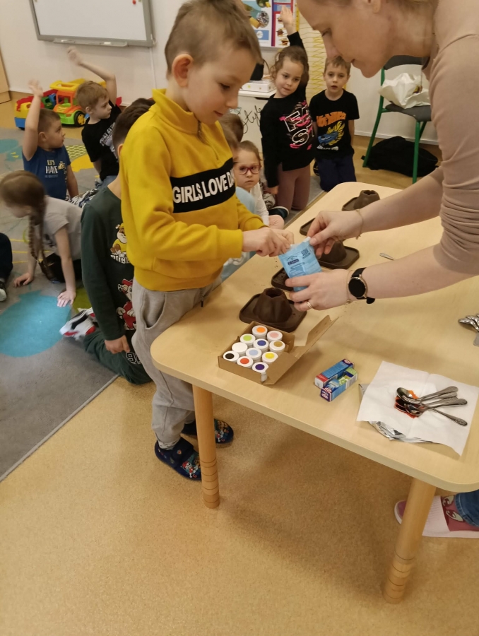 Dzisiejsze zajęcia w przedszkolu były pełne radości, odkrywania i małych naukowych eksperymentów. Dzieci miały okazję wcielić się w rolę prawdziwych małych naukowców