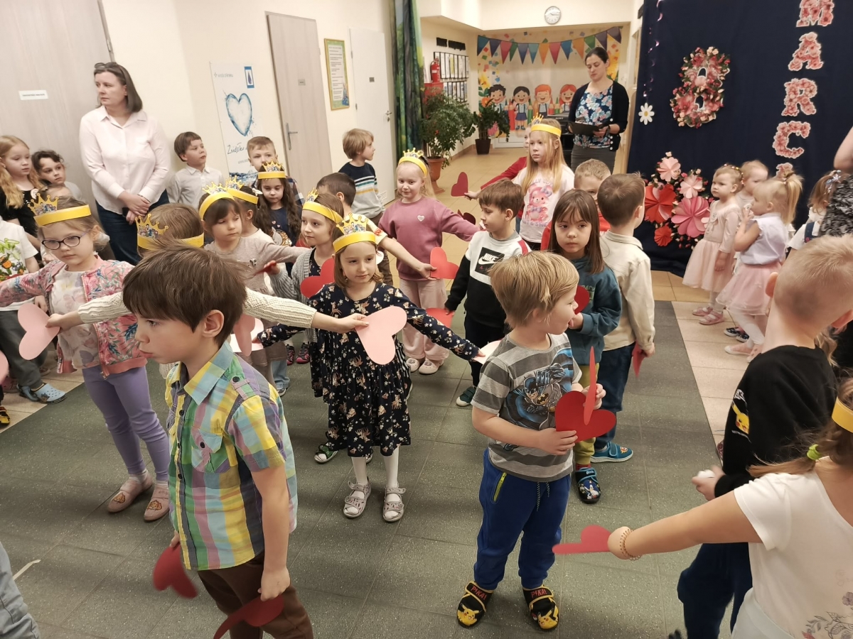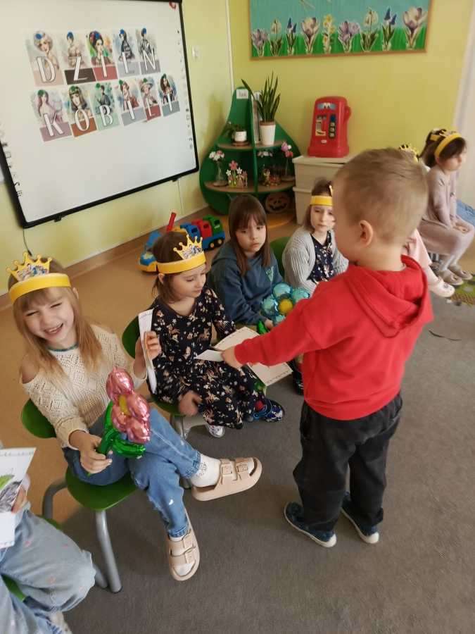 W poniedziałek w naszym przedszkolu obchodzilismy Dzień Kobiet. Był to wyjątkowy i radosny dzień dla wszystkich dziewczynek oraz pań. Chłopcy złożyli koleżankom i paniom serdeczne życzenia oraz wręczyli drobne upominki i kwiatki. Dzieci przygotowały również taniec z sercami. Ten dzień był okazją ,aby dzieci uczyły się życzliwości, uprzejmości, szacunku oraz okazywania miłych gestów.
