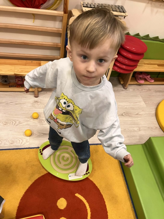 Zabawy wspierające sprawność ruchową 15 marca 2026 | Opublikowane w: Biedronki 2025/2026 Dzieci chętnie uczestniczyły w zabawach i ćwiczeniach w sali terapeutycznej. Podczas aktywności rozwijały swoją sprawność ruchową, koordynację oraz motorykę małą. Zajęcia były pełne zaangażowania, radości i dobrej zabawy.