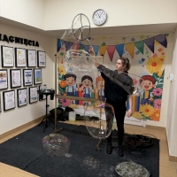 W poniedziałek w naszym przedszkolu gościliśmy firmę "Fotonova" z pokazem Baniek Mydlanych.