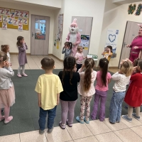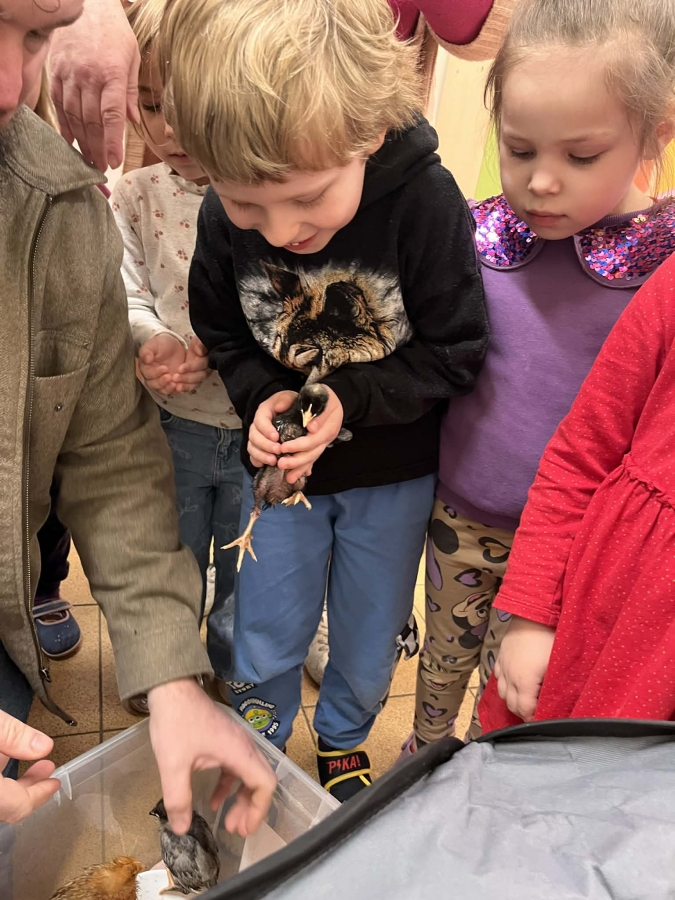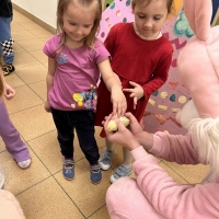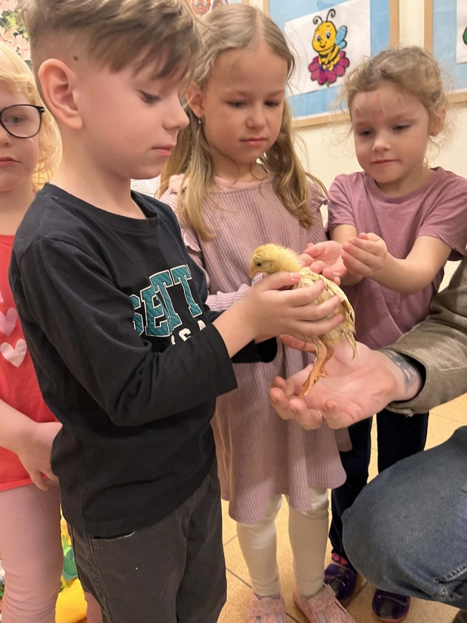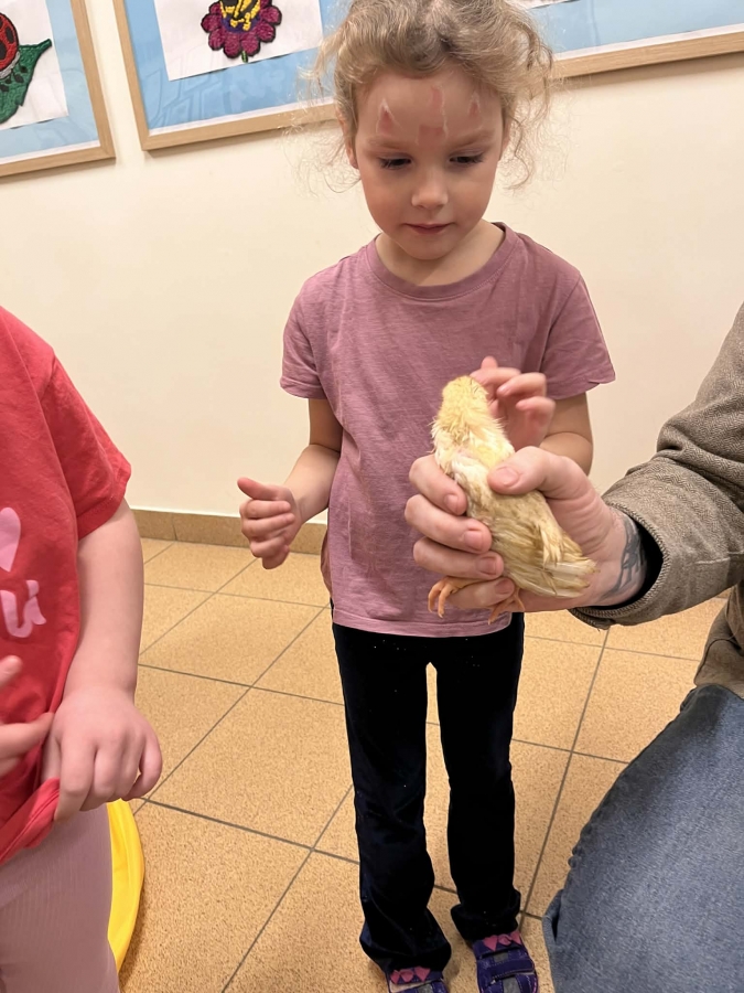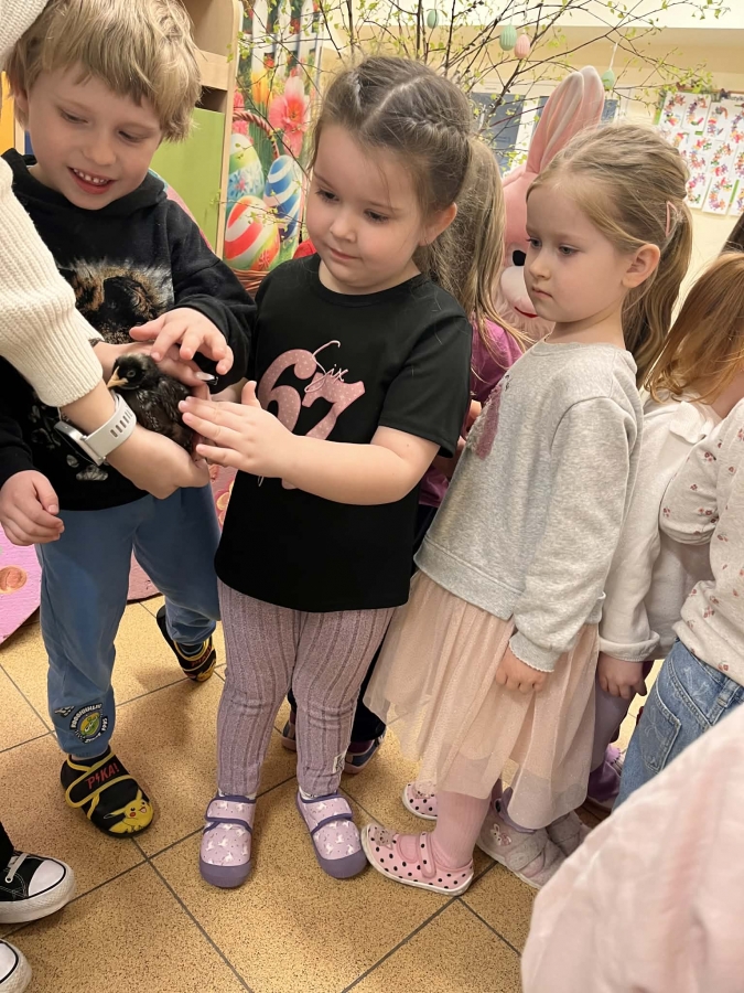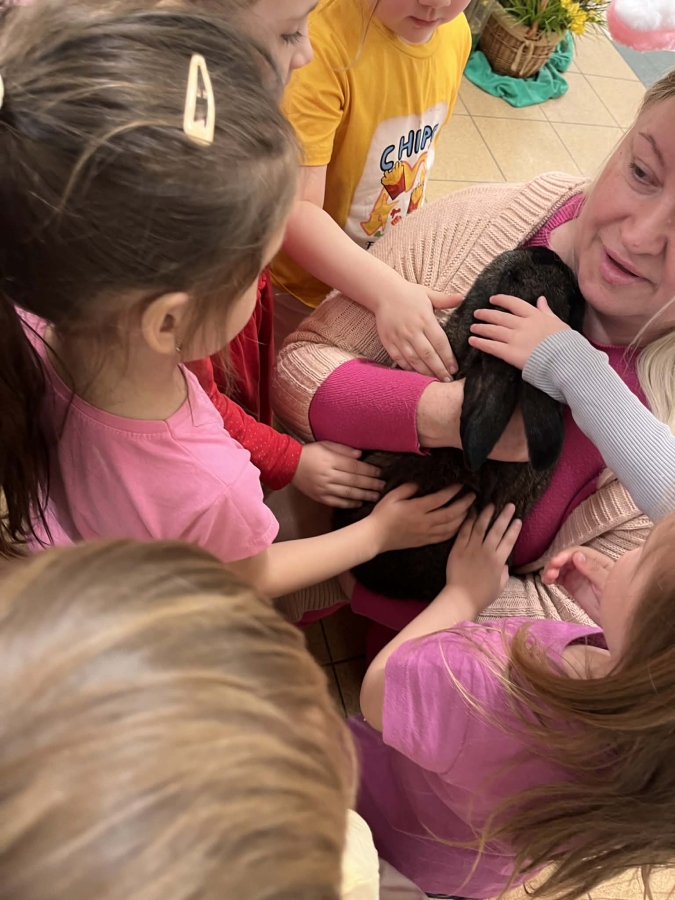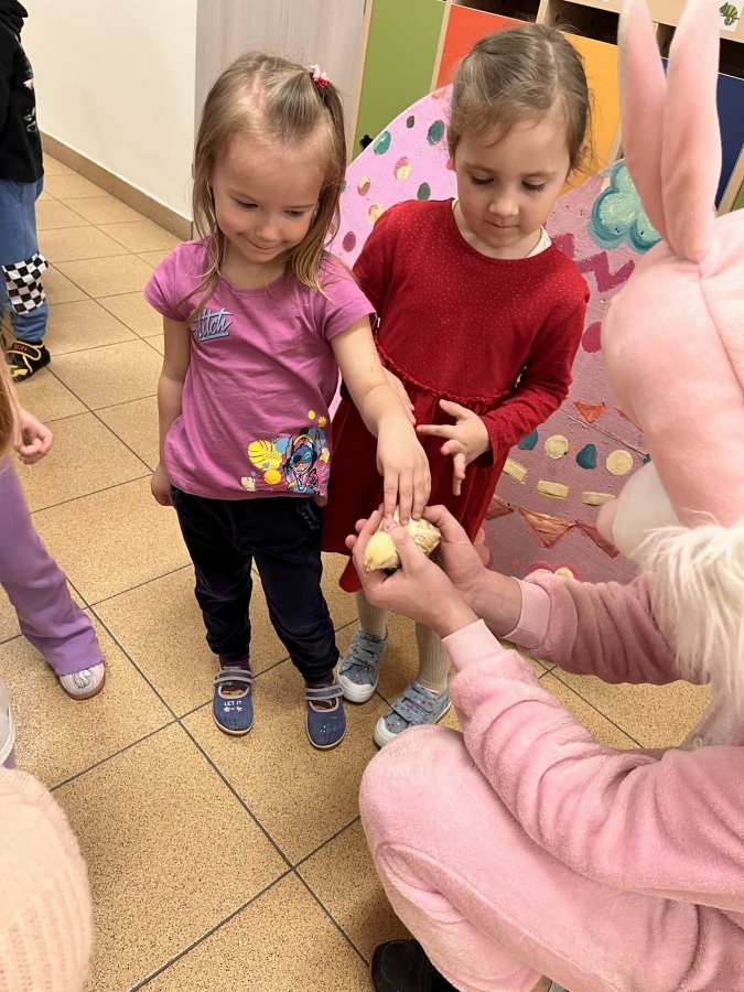 Dzieci brały udział w aktywnościach ruchowych, tworzyły wielkanocne koszyczki oraz miały okazję zobaczyć i pogłaskać kurczaczki oraz króliki. Spotkanie z żywymi zwierzętami wzbudziło wiele emocji i uśmiechów.