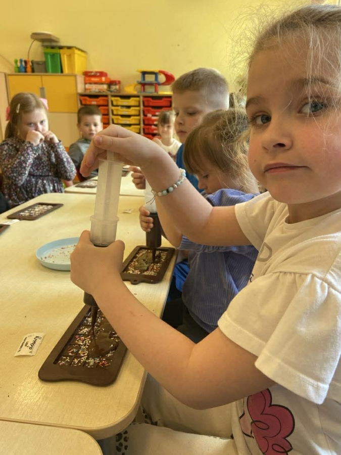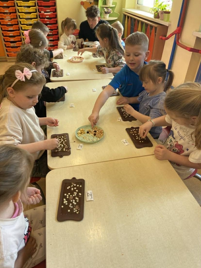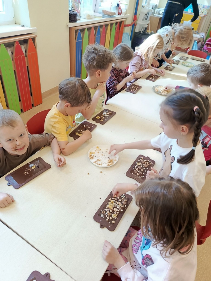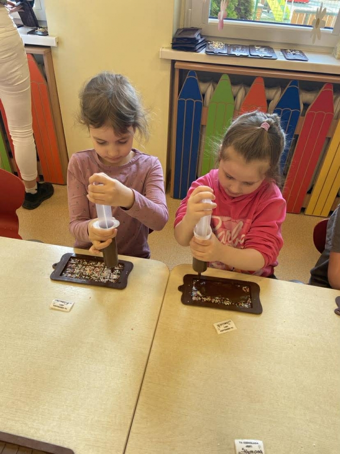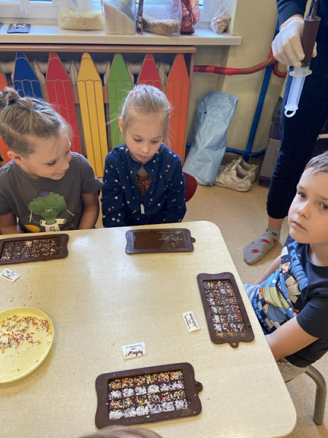 Było nie tylko pysznie, ale i edukacyjnie. Dzieci poszerzyły swoją wiedzę o czekoladzie, a także miały okazję wziąć udział w warsztatach czekoladowych, podczas których sami mogli stworzyć tabliczkę czekolady.