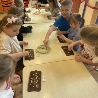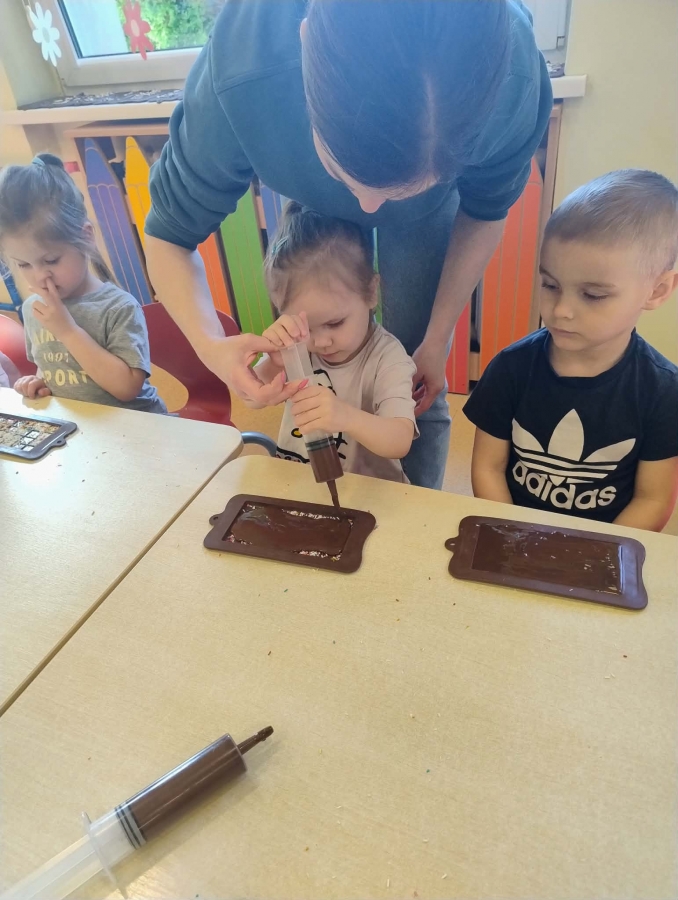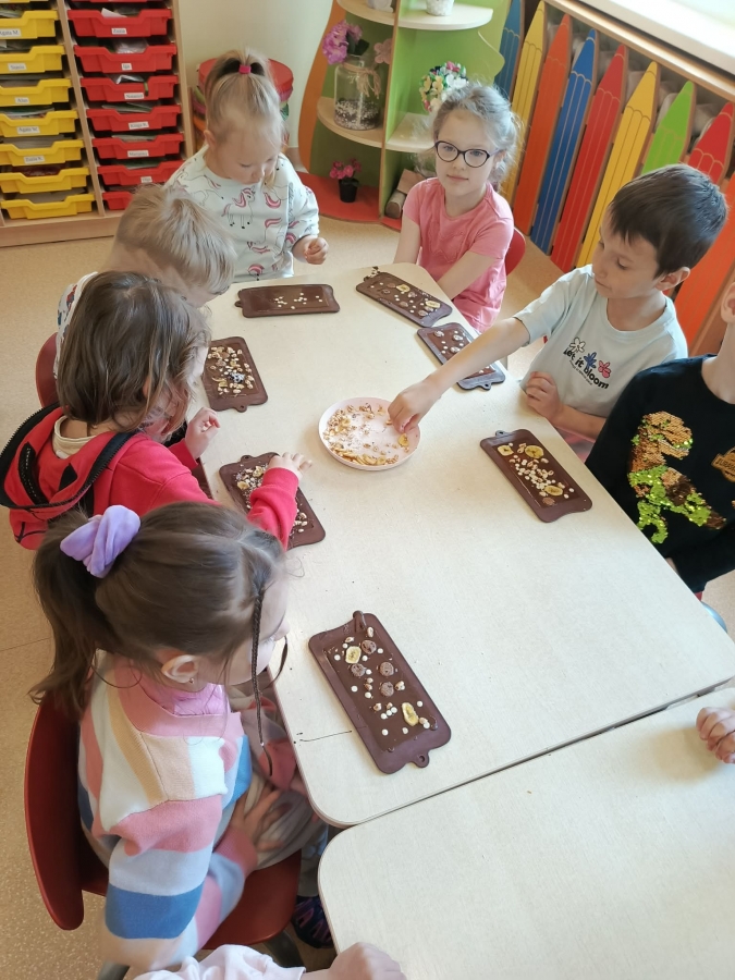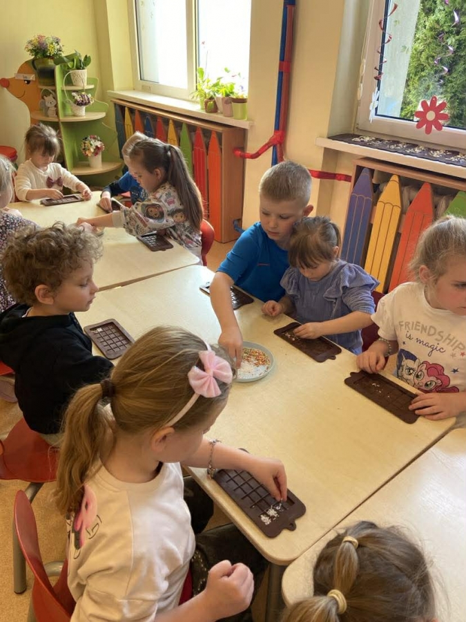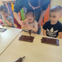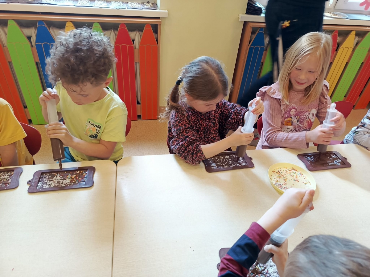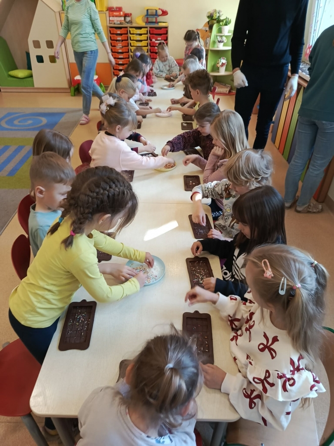 Było nie tylko pysznie, ale i edukacyjnie. Dzieci poszerzyły swoją wiedzę o czekoladzie, a także miały okazję wziąć udział w warsztatach czekoladowych, podczas których sami mogli stworzyć tabliczkę czekolady.