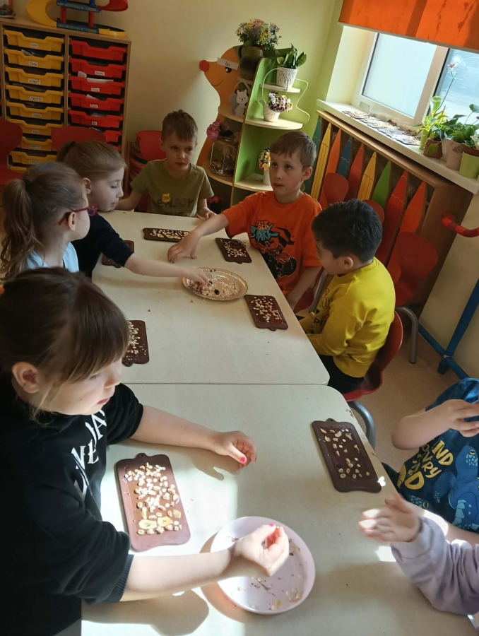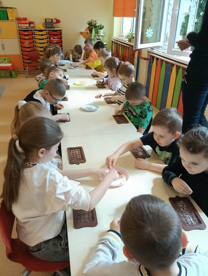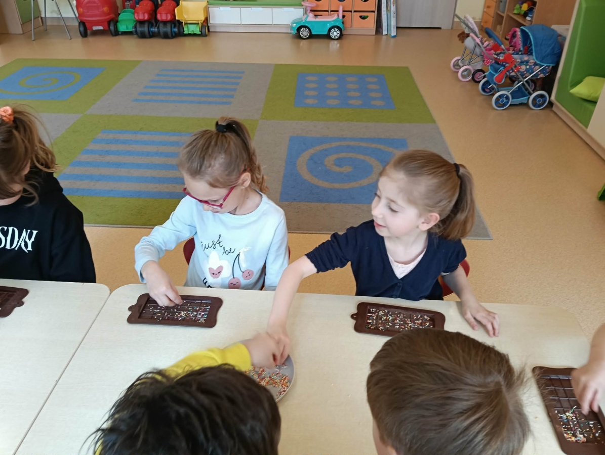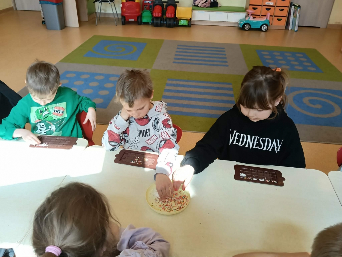 W naszym przedszkolu obchodziliśmy wyjątkowy Dzień Czekolady, który dostarczył dzieciom wielu radosnych i smakowitych wrażeń. Tego dnia przedszkolaki nie tylko kosztowały czekoladowych przysmaków, ale również zdobywały nową wiedzę.