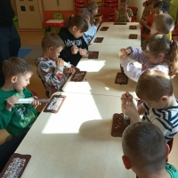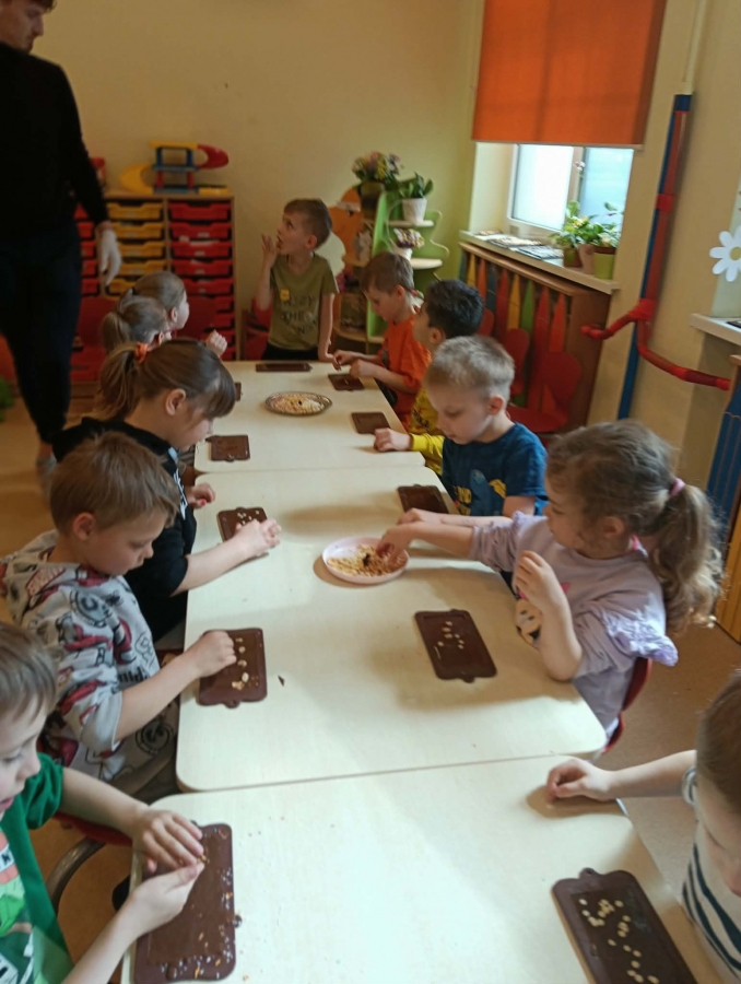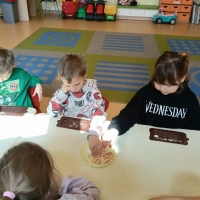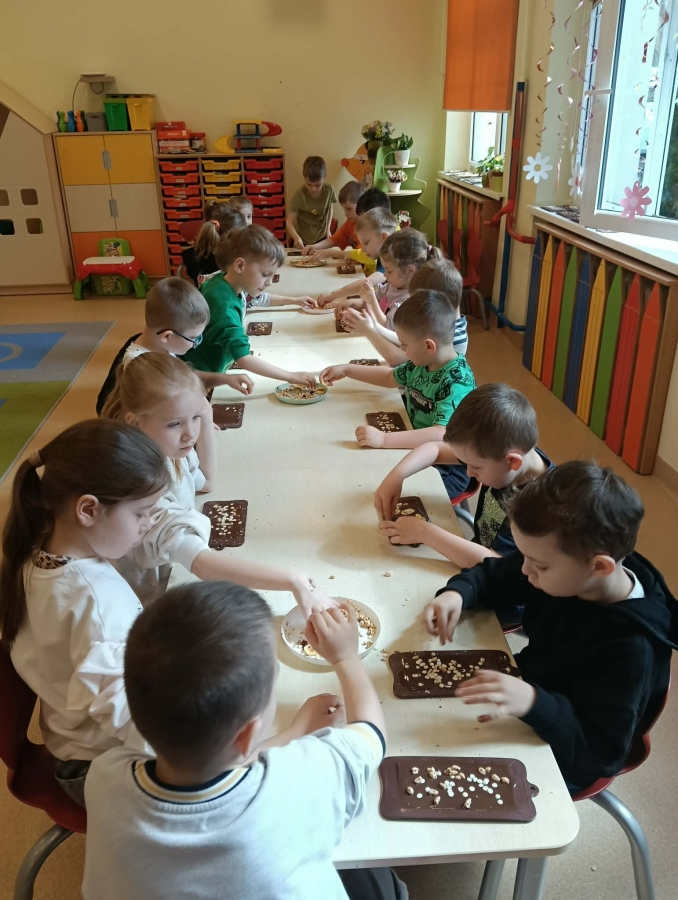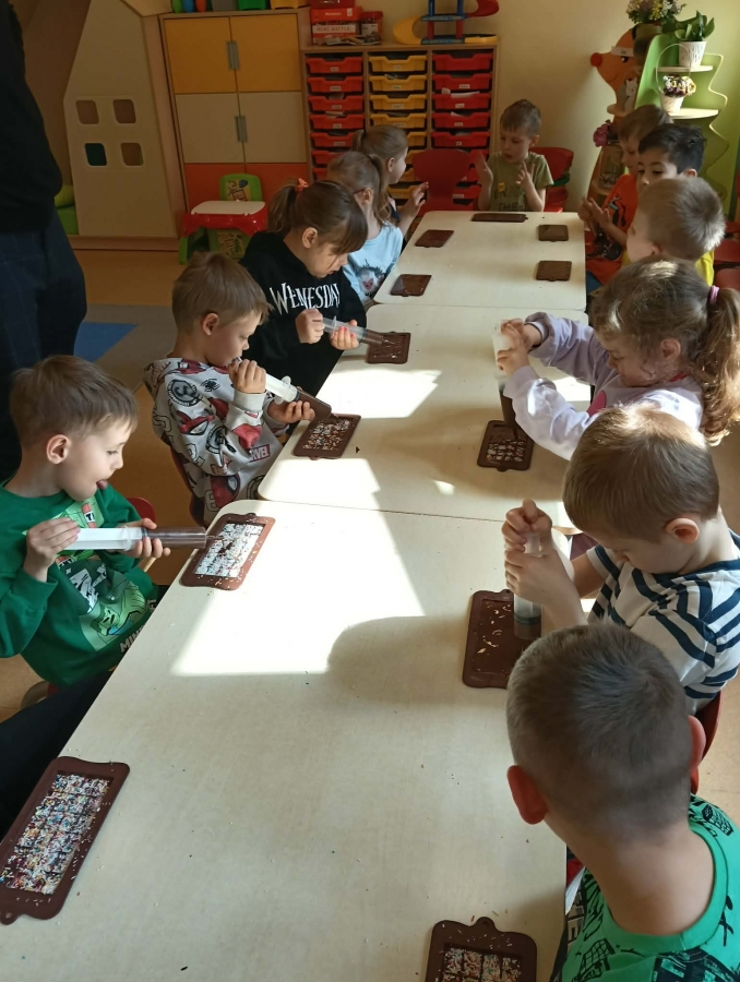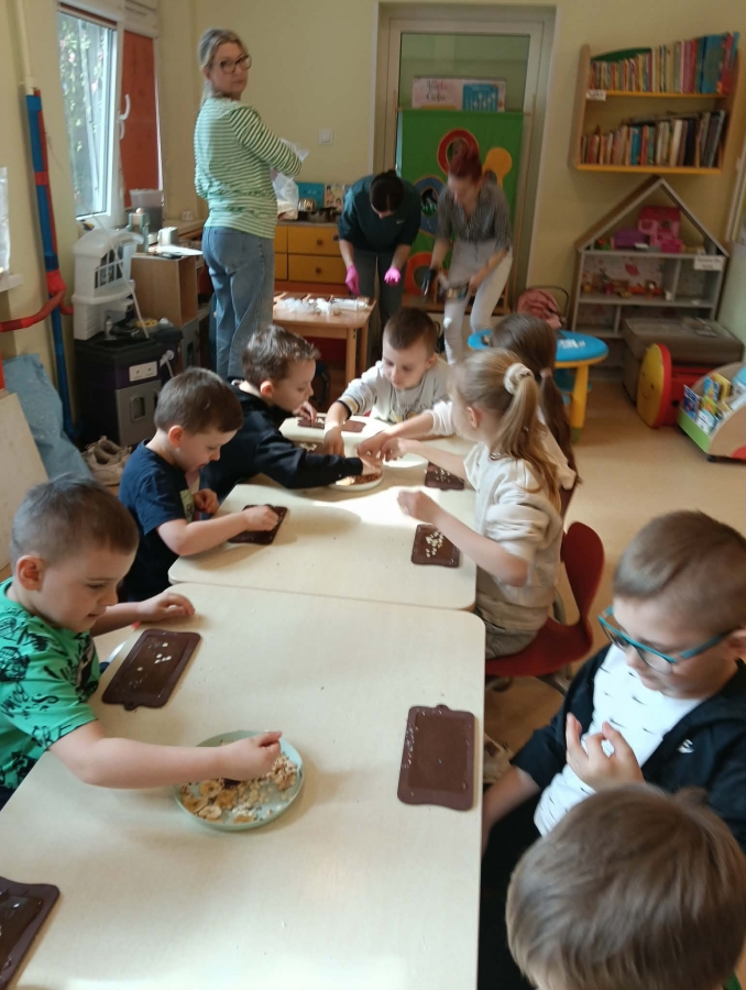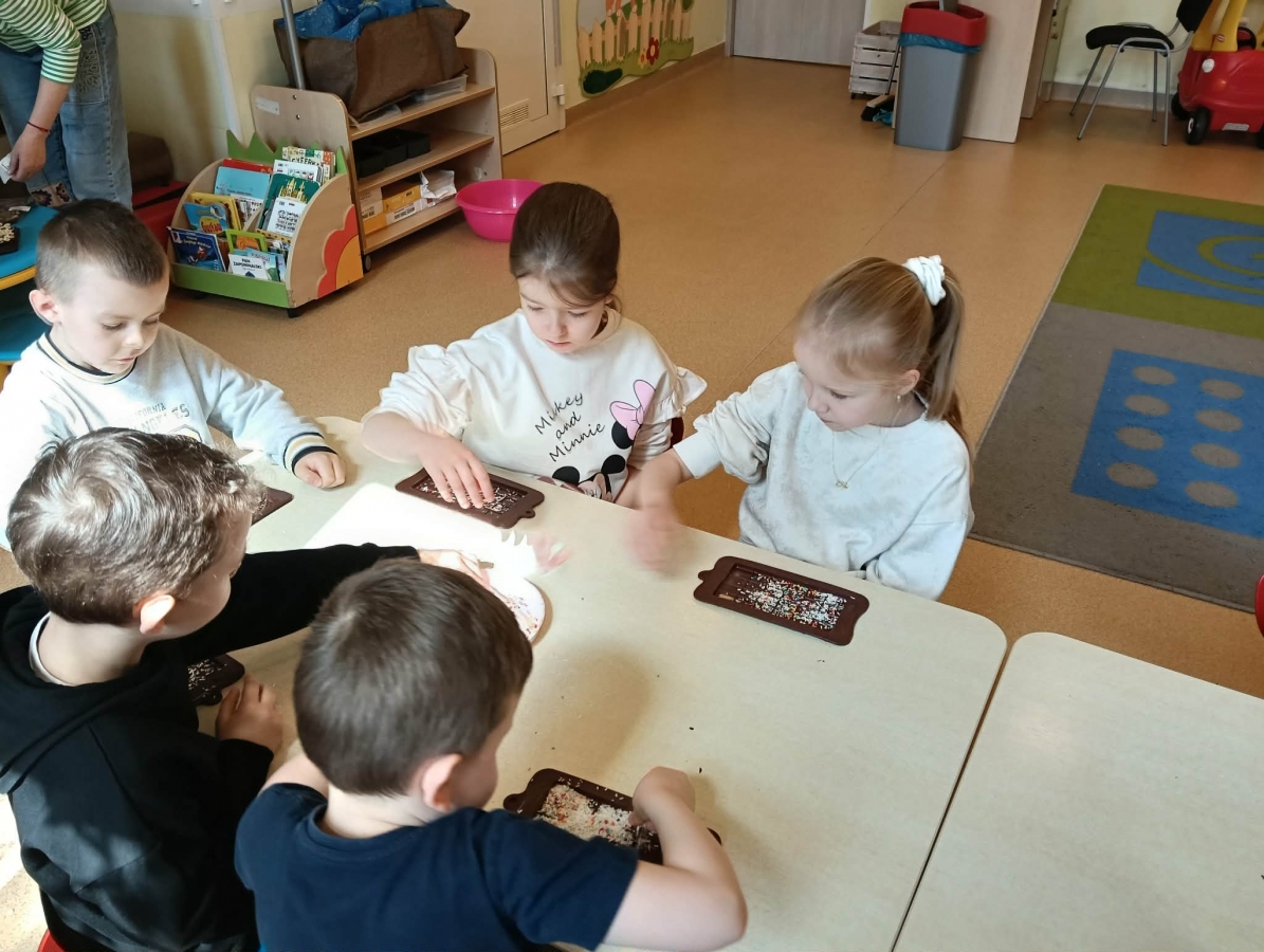 W naszym przedszkolu obchodziliśmy wyjątkowy Dzień Czekolady, który dostarczył dzieciom wielu radosnych i smakowitych wrażeń. Tego dnia przedszkolaki nie tylko kosztowały czekoladowych przysmaków, ale również zdobywały nową wiedzę.