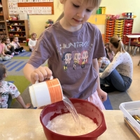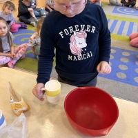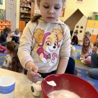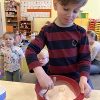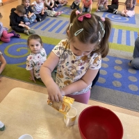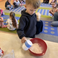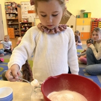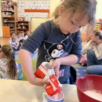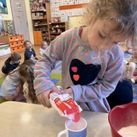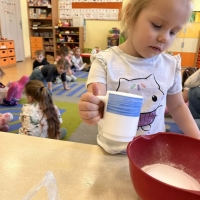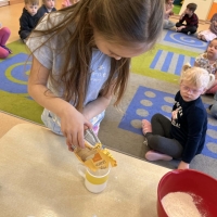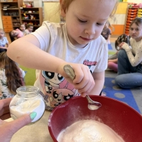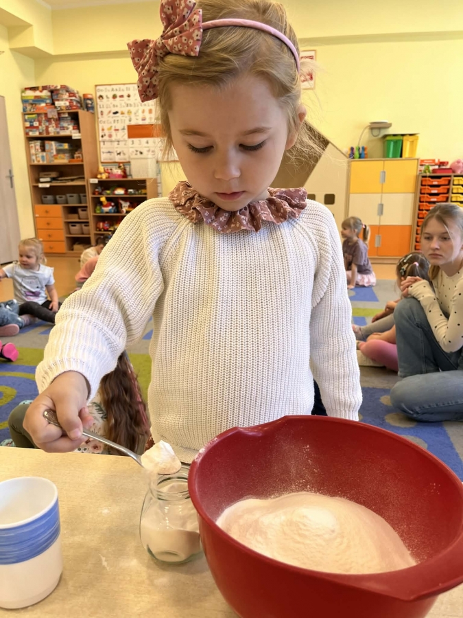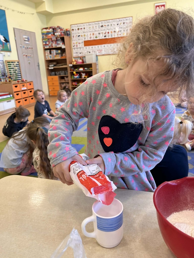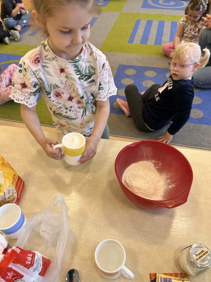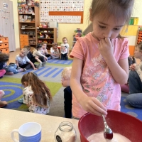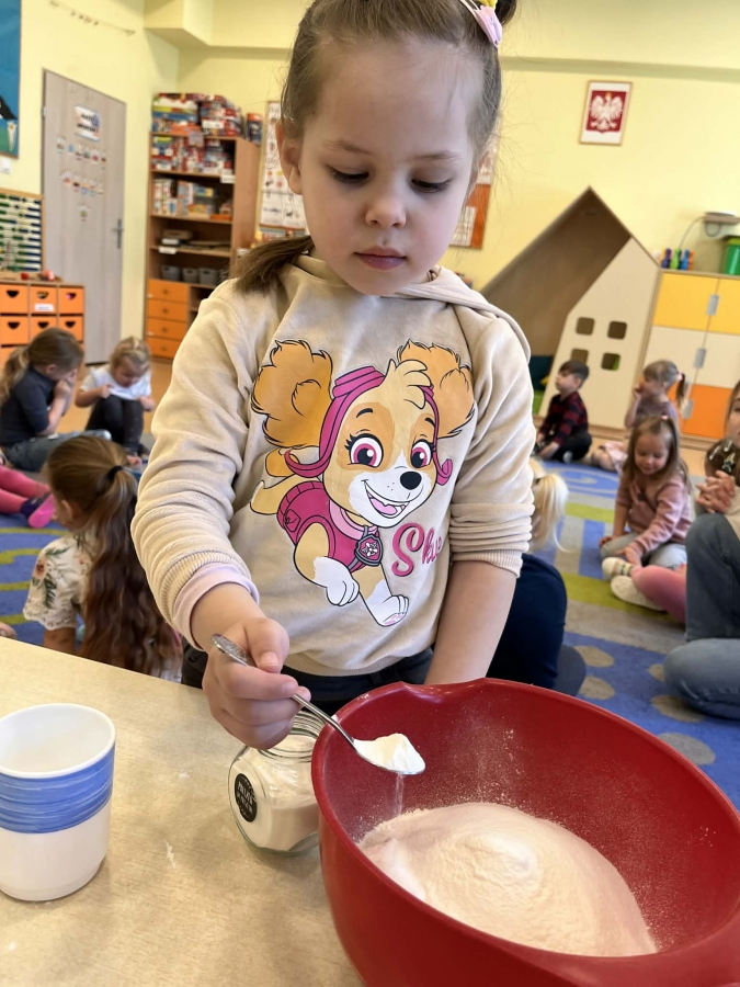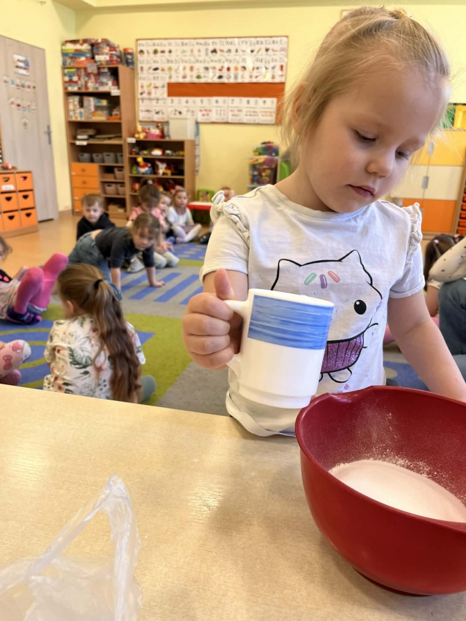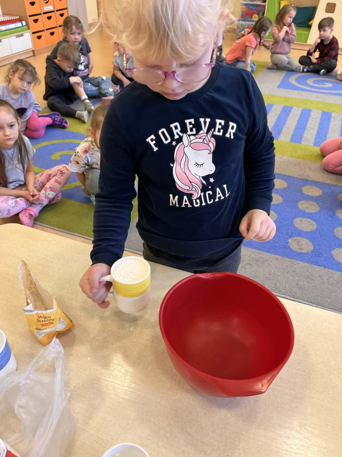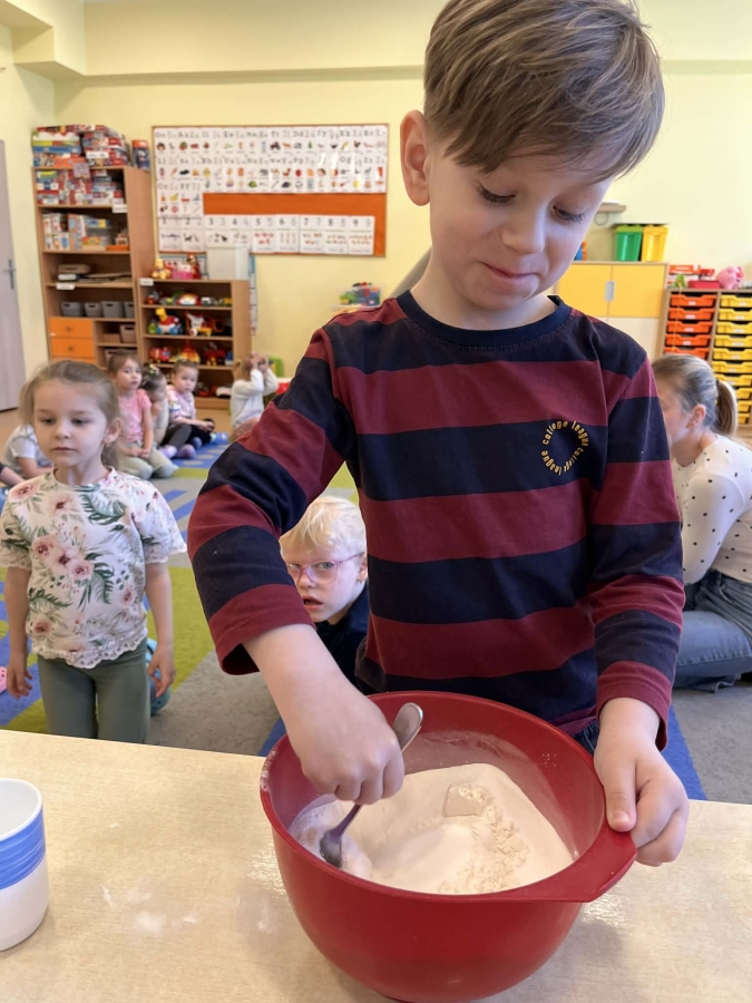 Podczas zajęć nie zabrakło również eksperymentów – wspólnie stworzyliśmy „rosnącą farbę”, co było dla dzieci nie tylko świetną zabawą, ale także okazją do nauki poprzez działanie. Każde dziecko miało swoje zadanie, dzięki czemu wszyscy aktywnie uczestniczyli w zajęciach i mogli poczuć się częścią zespołu.